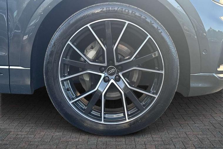 10.1" and 8.6" Dual colour touchscreens, Audi connect safety and service (e-call), Audi connect with Amazon Alexa Integration, Audi drive select, Audi parking system plus includes 360 degree display with front and rear sensors, Audi phone box light with wireless charging, Audi virtual cockpit - 12.3" high resolution LCD display with fully customisable instrument cluster, Automatic start/stop system, Electro-mechanical PAS, Low washer fluid indicator, MMI - Multi Media Interface control system, MMI navigation plus with MMI touch, Natural voice recognition, On board computer, Operating buttons in black, glass look with haptic feedback, Power operated tailgate, Rear view camera, Service interval indicator, Smartphone interface includes wireless Apple carplay/Android Auto, 48V Mild hybrid technology, Adaptive sport air suspension, Diesel particulate filter, Quattro all wheel drive with self locking centre differential, Audi music interface with 2 USB ports with charge and data functions, Audi sound system with 6 channel amplifier, 180 watt amplifying capacity and 10 loudspeakers including subwoofer, Aux-in socket, DAB Digital radio, 3rd brake light, Acoustic windscreen, Aluminium window trim, Audi beam, Audi HD Matrix LED headlights with dynamic front and rear indicators, Auto dimming frameless rear view mirror, Black Audi rings and black badging, Coming/leaving home lighting function, Electric front+rear windows, Electrically folding auto dimming/adjustable/heated door mirrors with memory function, LED side indicators and kerb view function for passenger side, Headlight washers, Heat insulating glass in windshield, LED signature daytime running lights, Platinum grey front spoiler lip and diffuser insert with honeycomb grille in black, Privacy glass - dark tinted rear and rear side windows from B-pillar backwards, Rain and light sensors, Rear side wing doors, Rear wiper, 2 zone automatic climate control, 3 bench rear seats in 2nd row, 4-way lumbar support for front seats, 40:20:40 split folding rear bench seat, Audi phone box light, Black cloth headlining, Comfort front centre armrest, Driver seat memory function, Electrically adjustable front seats, Front head restraints, Front/rear floor mats, Heated front seats, ISOFIX child seat mounting for front passenger seat and 2 outer rear seats with top tether child seat mounting for all 3 rear seats, LED interior ambient lighting, Luggage compartment sill protection in stainless steel, Rear centre armrest with 2 cupholders, Rear headrests, Seat cushion displaceable by 100mm in the ratio 60:40, Single front passenger seat, Stainless steel pedals, Sunvisors with illuminated vanity mirrors, 3 point seatbelts on all seats, Audi pre sense front, Child locks on rear doors, Driver and front passenger, front side and curtain airbags, Electromechanical parking brake, Electronic Stability Control (ESC) including ABS, ASR and EDL, Front passenger airbag deactivation, Hill descent control, Hill hold assist, Predictive pedestrian protection, Seatbelt monitoring, Traction control, Tyre pressure loss indicator, Warning triangle and first aid kit, Anti theft alarm with tow away protection, Anti-theft wheel bolts and wheel loosening detection, Immobiliser, Keyless go with remote central locking, Polished oak trim with grey finish inlay, Tool kit, Tyre repair kit,