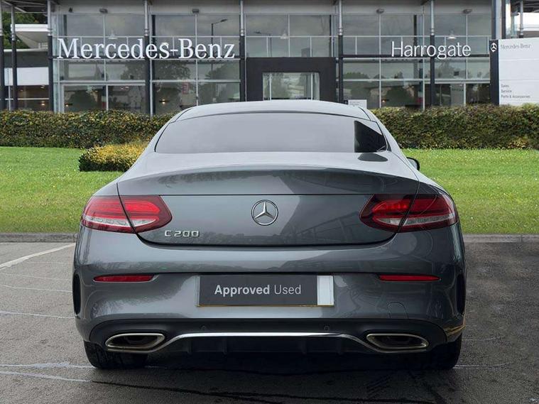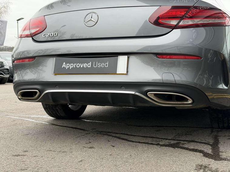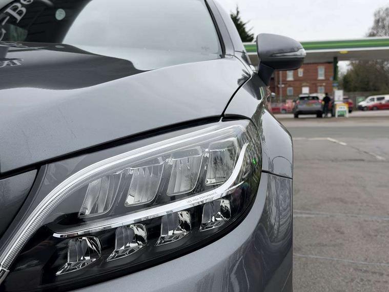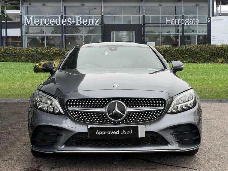 Active park assist with parktronic system, Attention assist, Bluetooth interface for hands free telephone, Collision prevention assist plus, Cruise control with speedtronic variable speed limiter, DYNAMIC SELECT with a choice of driving modes (ECO, Comfort, Sport, Sport+ and Individual), ECO start/stop function, High resolution 10.25" multimedia colour display, Instrument cluster two tube design round dials and 5.5-inch TFT multi-function display, Mercedes me connect including emergency call system, accident recovery, breakdown and maintenance management, Multi function trip computer, Outside temperature display, Pre-wiring for SD navigation system, Remote boot release, Reversing camera, SD card based satellite navigation system, Service indicator (ASSYST), Sports direct steer speed sensitive steering, Status display for rear seat belts in instrument cluster, 66l fuel tank with increased capacity, 9G Tronic plus 9 speed automatic, Agility control sports suspension lowered by 15 mm, Petrol Particulate Filter, Sport exhaust system, Audio 20 with integrated media interface and bluetooth handsfree function, DAB digital radio tuner, Frontbass loudspeakers, SD card slot, Two USB ports and one SD Card slot in centre console, Adaptive brake lights, AMG bodystyling front and rear aprons, side skirts, Automatic headlights, Body coloured bumpers, Chrome pins diamond radiator grille with integrated stars, Door sill panels with Mercedes Benz lettering, Electric windows with one touch opening/closing and obstruction sensors, Exterior mirrors heated and electronically adjustable, Full LED tail lamps, Green tinted glass, LED High Performance headlamps including integral LED daytime running lamps, LED Indicators, LED third brake light, Privacy glass rear side windows B pillars and rear windscreen, Radio aerial integrated into rear window, Rain sensor windscreen wipers, Rear boot, Side windows surround in polished aluminium, Visible twin pipe exhaust trim integrated into rear bumper, 2 cupholders in front centre console, 2 rear head restraints, 2 seat bench in 2nd row, 3-spoke leather multi function AMG steering wheel with flattened bottom section and chrome inserts with perforated leather in grip area, 40:20:40 split folding rear seats, AMG sports seats, Auto Mercedes-Benz child seat recognition sensor, Black floor mats with AMG lettering, Electrical height and back adjustment front seat, Front centre armrest with storage compartment, Front head restraints, Front LED reading lights, Heated front seats, Height/reach adjustable steering column, Illuminated glove compartment stowage, Leather upholstery, Single front passenger seat, Sports pedals with stainless steel surfaces and rubber studs, Sports seats with integrated head restraints, Steering wheel gearshift paddles, Steering wheel touch control buttons for audio and onboard settings, Sunvisors with illuminated vanity mirrors, THERMATIC 2 zone automatic climate control, Interior lighting package - C Class, Mirror package - C Class, Seat comfort pack - C Class, Stowage space pack - C Class, 2 rear seatbelts, 3 point automatic seatbelts, Active bonnet, Adaptive brake system with hold function and brake drying function, Anti-lock braking system (ABS), Automatic seatbelt pretensioner for driver and front passenger, Black seat belts, Brake calipers with Mercedes-Benz lettering + perforated brake discs, Dual stage airbags - driver and front passenger, front sidebags, driver kneebag, pelvis bag and windowbags for driver, front and rear passengers, Electronic parking brake, Electronic Stability Programme (ESP), ISOFIX child seat attachment points with top tether in rear, Tyre pressure monitoring system, Warning triangle and first aid kit, Anti-theft alarm system/interior protection with tow-away protection and interior monitoring systems, Central locking with interior switch, automatic locking and crash sensor with emergency opening function, Chrome surround in electric key, Immobiliser, KEYLESS-GO starting function, Artico man-made leather dashboard with contrast stitching, Black ash wood with brushed aluminium trim, 18" 5 spoke aero alloy wheels painted in silver, TIREFIT with tyre inflation compressor,