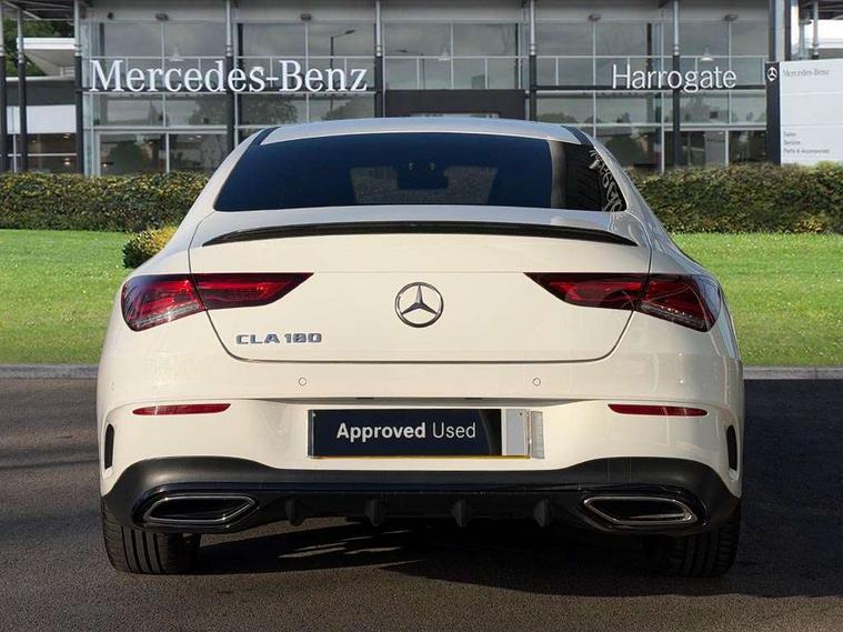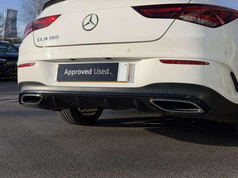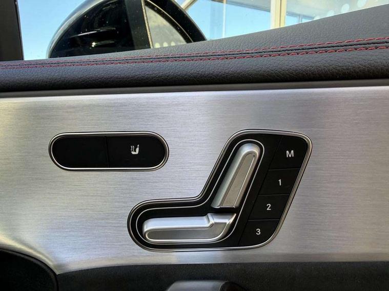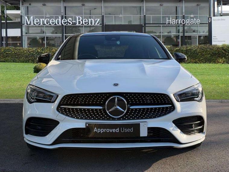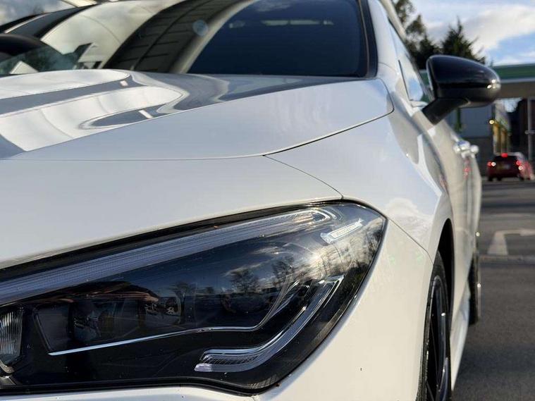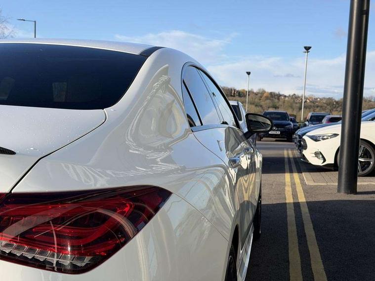 10.25 inch Instrument display with digital cockpit, 10.25 inch touchscreen central media display, Active lane keeping assist, Attention assist - Monitors steering behaviour and long journey fatigue, Blind spot assist, Bluetooth connection, Car wash mode, Cruise control with limiter, Direct steer system with speed sensitive power steering, DYNAMIC SELECT with a choice of driving modes (ECO, Comfort, Sport and Individual), ECO start/stop function, Fluid level warning indicator for fuel, oil, coolant and washer fluid, Hard-disk navigation, Hey Mercedes Voice activation, Lamp failure indicator, Mercedes me connect including emergency call system, accident recovery, breakdown and maintenance management, Mercedes me remote services, Outside temperature gauge, Owners manual and service booklet in English, Pre-installation of private car share, Preinstallation for Mercedes Benz link, Radio aerial integrated into front and rear windshields, Service indicator (ASSYST), Smartphone integration with Apple CarPlay and Android auto, Speed limit assist, Traffic sign assist, Trip computer in multifunction display with current consumption indicator, Lowered comfort suspension, Rear axle multi-link, DAB digital radio tuner, MBUX multimedia system, Mid-range sound system, USB (type C) ports (2) in stowage compartment and 1 in front of centre console, Adaptive brake lights, AMG body styling with AMG front apron and rear apron and visible exhaust tailpipe in chrome trim elements, AMG bodystyling side skirts, Body colour bumpers, Body colour door handles, Chrome beltline strips, Diamond radiator grille pins in chrome, Electric panoramic sunroof with automatic tilt and convenience closing fuinctions, rain sensor auto closing and electronic roller sunblind, Electric windows, Electrically adjustable and heated door mirrors with integrated LED indicators, Exhaust system with 2 Visible tailpipe trim elements and rear apron with trim in chrome, Headlamp assist automatic headlamp activation, Heated glass rear windscreen + timer control, High level LED third brake light, Integrated LED daytime running lights, Interior mirror with black reading lamps and frameless, LED tail lamp, Multibeam LED headlamps with adaptive highbeam assist plus, Privacy glass with dark tinting on rear side windows and rear window, Rain sensing windscreen wipers with two sensitivity settings, Rear boot, Rear fog lamp, Rear side wing doors, Variable front intermittent wipers, Window line trim strip in chrome, 3 seat bench in 2nd row, 3 spoke flattened bottom nappa leather multifunction steering wheel with perforated leather in grip area, 40:20:40 split folding rear seat backrests, Air conditioning - Two zone thermotronic luxury automatic climate control with display, Air vents with surround in silver chrome, Artico man-made leather upholstery, Automatic child seat recognition sensor, Black roof lining, Brushed stainless steel sports pedals with rubber studs, Electrically adjustable front memory seats including lumbar support, Floor mats with stitched AMG lettering, Front centre armrest with stowage, Galvanished gear shift paddles on steering wheel, Heated front seats, Illuminated front door sills with changeable cover, Illuminated glove compartment stowage, Interior lighting - 64 colour Ambient lighting, Luggage net on driver/front passenger seat backrest, Manually adjustable front seats, Manually height and reach adjustable steering column, Rear armrest with two integral cup holders for drinks, Rear head restraints, Single front passenger seat, Sport seats with fixed head restraints, Stowage compartment in centre console with retractable cover, Sunvisors with illuminated vanity mirrors, Touchpad on center console, Twin front cupholders, Two outer rear seat isofix and top tether child seat fixing points, Keyless go comfort pack - CLA, Light and sight pack - CLA, Mirror pack - CLA, Night package - CLA, Parking package - CLA, Active bonnet pedestrain safety measure which detects an impact and raises bonnet by 65mm, Active brake assist includes forward collision warning system with autonomous braking, Adaptive brake assist with hold function and hill start assist, Anti lock braking system (ABS) with brake assist, Black seat belts, Bonnet with power domes, Brake pad wear warning indicator, Childproof locks manually operated for rear doors and electrically operated for rear power windows, Crash responsive emergency lighting, Driver and front passenger head and sidebags, Driver and front passenger windowbags, Drivers knee airbag, Dual stage driver and front passenger airbags, Electric parking brake, Electronic stability programme with acceleration skid control, ESP curve dynamic assist, Exit warning, Front and rear seatbelt reminder, Front passenger seat occupancy sensor, Three point rear seat belts, Tyre pressure monitoring system, Warning triangle and first aid kit, Guard 360 degree guard vehicle protection system with immobiliser and interior protection, Remote central locking and crash sensor with emergency opening function, Light aluminium with longitudinal grain interior trim, 19" AMG multi-spoke black painted light alloy wheels with high sheen rim finish, Summer tyres, Tirefit tyre sealant kit,
