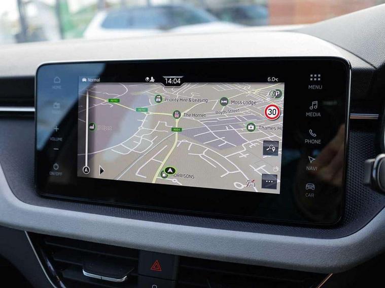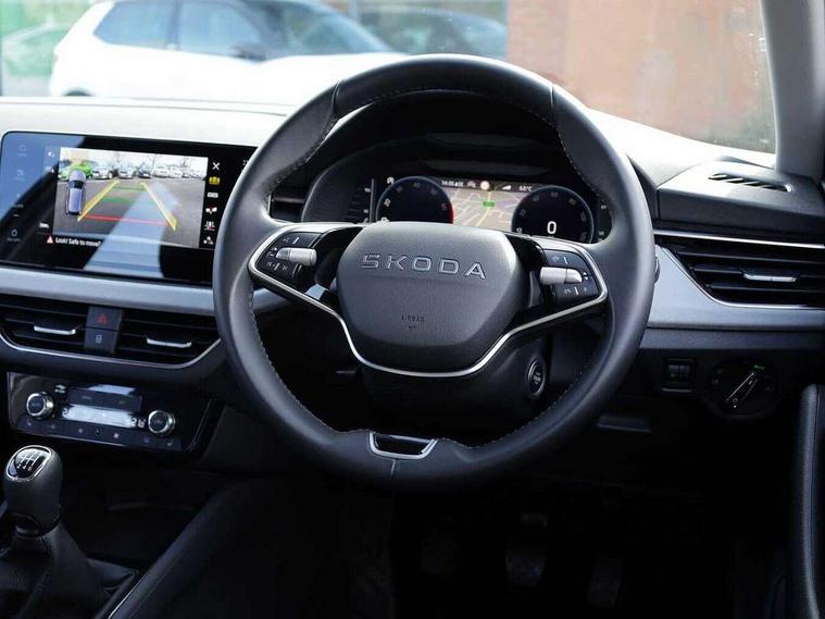 Advanced driver attention and drowsiness monitor, Bluetooth, e-Call (emergency call), Front assist system, PAS, Rear parking sensors, Rear view camera, Speed limiter, Tailgate, Traffic sign recognition, Virtual Cockpit - 10.25" digital display, Voice control system, Wireless smartlink, 4 USB C ports, 8 Speakers, 9.2" Skoda navigation display, DAB radio, Auto dimming rear view mirror, Automatic headlamp activation with Coming home and Leaving home feature, Automatic high/low beam, Automatic intermittent wipers, Body colour bumpers, Body colour door mirrors and handles, Chrome moulding around grille, Chrome window frames, Front and rear electric windows, Heated rear window, LED 3rd brake light, LED brake lights, LED daytime running lights, LED front turning lights, LED high beam, LED low beam, Light sensors, Privacy glass, Rear LED fog light, Rear side wing doors, Rear wiper, Tinted windows, Unique dark chrome design logo on alloy wheels, 12V socket in luggage compartment, 3 seat bench in 2nd row, Ambient lighting in white/red, Black / Copper armrest stitching, Cargo elements, Chrome inner door handles, Copper hotstamping, Door inserts in accent black, Driver and passenger sun visors with vanity mirror, Dual zone climate control, Front and rear roof lights, Front centre armrest, Front head restraints, Glasses storage in roof liner, Height adjustable driver seat, Height adjustable passenger seat, Ice scraper, Illuminated glove compartment, Inner circulation control with pollen filter, ISOFIX for front passenger seat, Isofix preparation for back seats, Leather gearknob and handbrake lever, Lodge cloth upholstery, Luggage net under rear parcel shelf, Manual lumbar support for front seats, Net package and top tether hooks in boot space, Pearl grey ceiling, Pocket on the back of both front seats, incl. mobile phone pockets, Rear centre armrest, Single front passenger seat, Skoda lettering on steering wheel, Textile floor mats, Third rear headrest, Ticket holder, Top tether for front passenger seat, Umbrella in driver's door, Convenience pack without rear camera - Scala, 3x3 point rear seatbelts, ABS, Child locks, Curtain airbags and front side airbags, Disc brakes, Driver and front passenger airbags, ESP, Hill hold control, Manual leather parking brake, One tone horn, Passenger airbag switch off function, Seatbelt reminder for driver and front passenger, Tyre pressure monitoring system, Anti theft alarm system with interior monitoring, backup horn and towing protection, Anti-theft wheel bolts, Remote central locking with 2 remote folding keys, SAFE function for remote central locking, Decorative inserts,
