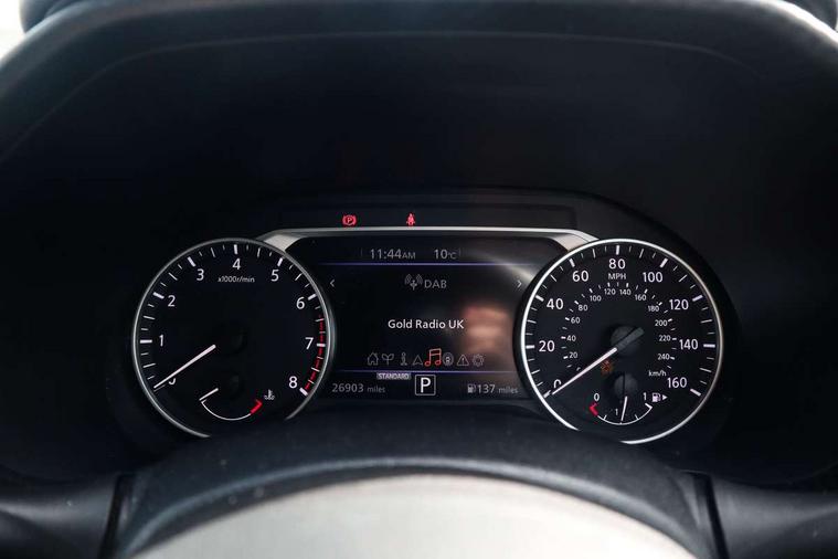 7" full colour TFT screen combimeter, Apple CarPlay and Google Android auto, Drive modes select (Eco, normal and sport), Emergency and breakdown call, Front parking sensor, Idle start/stop system, Intelligent lane intervention, Lane departure warning system, Nissan connect 8" touch screen entertainment system, Nissan connect nav with TomTom traffic, Nissan connect services and Wifi connection, Outside temperature sensor, Power Steering, Rear parking sensor, Traffic sign recognition, Trip computer, Voice recognition, Gasoline particulate filter, 10 Bose speakers 6 speakers and 2 headrest speakers for driver/passenger seats, Bluetooth system, USB, Aux-in and 12V socket, Bose personal sound stage control, DAB Digital radio, Rear console USB port, Auto dimming interior rear view mirror, Auto headlights, Automatic hazard signal with emergency stop signal, Body colour bumpers, Body colour door handles, Electrically adjustable door mirrors with integrated indicators, Follow me home headlights, Front and rear electric window with one touch driver window, Heated and auto folding door mirrors, High beam assist, LED daytime running lights, LED front fog lights, LED headlamps, LED rear fog lamp, LED rear lamps, Rain sensor windscreen wipers, Rear privacy glass, Rear side wing doors, Rear wiper, Thermaclear heated windscreen, Three blink turn signal, 3 height adjustable rear headrests, 3 seat bench in 2nd row, 60/40 split folding rear seat, Automatic climate control, Card holder on driver sunvisor, Door ambient lighting, Driver and passenger sliding and reclining seats, Driver seat back pocket, Driver side rear coat hanger, Driver/passenger sunvisors and vanity mirrors, Front and rear cabin lights, Front armrest, Front door pockets with bottle holders, Front head restraints, Front passenger isofix child seat anchorage point, Front/rear passenger grab handles, Gear console ambient circle lighting, Grey synthetic leather kneepad, Heated front seats, Height adjustable driver's seat, Height adjustable passenger seat, Internal chrome door handles, Leather gearshift knob, Leather steering wheel, Luggage board, Luggage space lighting, Monoform sporty seats, Multifunction steering wheel, Passenger seat back pocket, Rear door bottle holders, Single front passenger seat, Steering wheel mounted gearshift paddles, Synthetic leather upholstery, Telescopic steering wheel adjustment, Two cupholders in front centre console, Two rear isofix child seat anchorage points with top tether, Welcome light and console tray ambient lighting, ProPilot pack - Juke, ABS with EBD and brake assist, Active ride control, Active Trace Control, Driver and passenger airbags, Driver and passenger side airbags, Electric handbrake with auto hold function, Electronic Stability Programme (ESP), Front and rear curtain airbags, Height adjustable seatbelts, Hill start assist, Intelligent emergency braking with pedestrian and cyclist recognition, Rear door child safety locks, Seatbelt reminder for driver/front passenger and rear seats, Single tone horn, Three 3 point rear seatbelts, Traction control, Tyre pressure monitoring system, VDC Dynamic Vehicle Control, Ventilated rear brake discs, Alarm, Immobiliser, Intelligent key and start push button with walk away lock and approach unlock functions, Remote central locking,