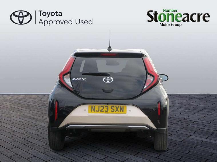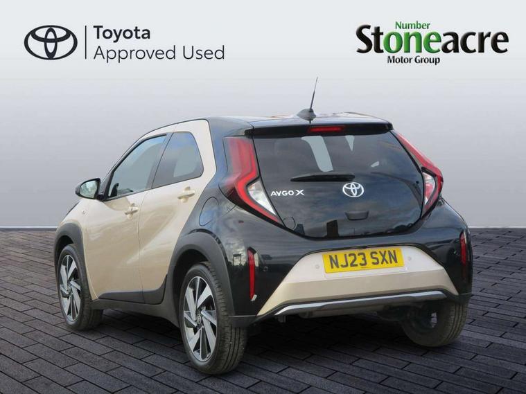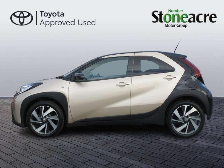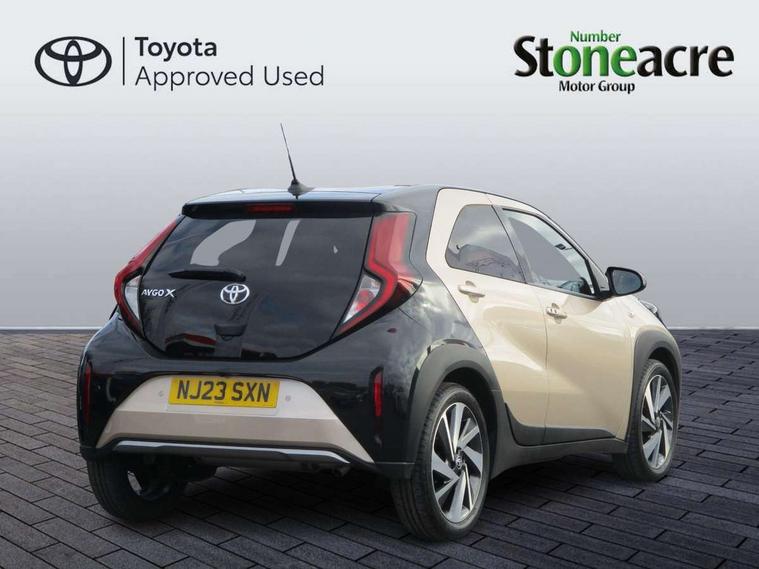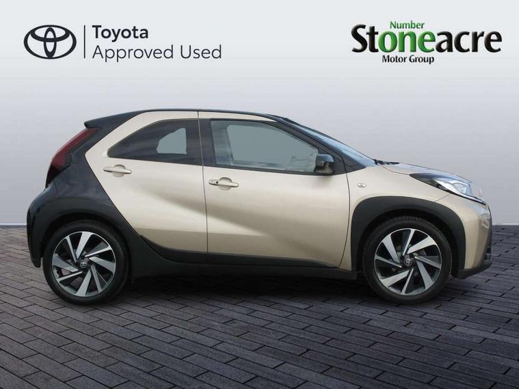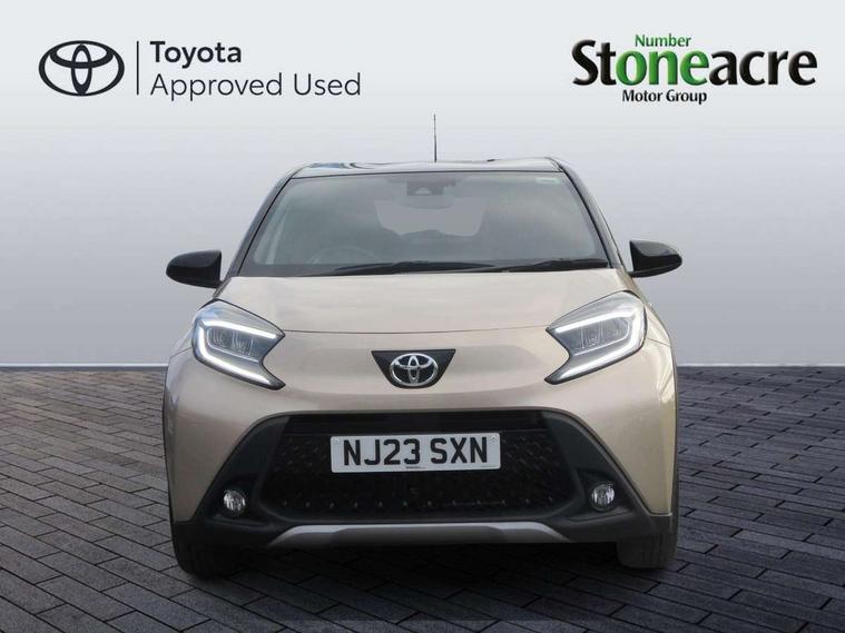 4.2" TFT colour screen, Adjustable speed limiter, Analogue speedometer, Bluetooth connectivity, Digital tachograph, Driver attention alert system, eCall emergency call system, Electric power steering, Front and rear parking sensors with auto brake, Intersection turn assist, Key reminder warning, Noise reduction kit, Pre collision system with emergency steering assist, Remote boot door release on key, Reversing camera with static guide lines, Smart entry and push button start, Speed limit display, Start and stop, Wireless charger, Wireless Smartphone Integration includes Apple CarPlay and Android auto, Vehicle Stability Control (VSC), 4 speakers, 9" HD multimedia display touch screen with Toyota smart connect, DAB digital audio broadcast, USB connector, Auto headlights, Auto wipers, Automatic headlights cut-off, Automatic high beam On/Off switch, Bicycle towing hook, Black fog light surrounds, Black side protection mouldings, Black wheel arch mouldings, Body colour door handles, Body coloured front bumper, Boot door scuff plate, Eclipse black rear bumper, Electric heated door mirrors, Follow me home headlights, Front and rear underruns in silver, Front fog lights, Front power windows, Gloss black door mirrors, Gloss black upper front grille, Headlight cut-off reminder, LED daytime running lights guide, LED front light guide, LED High mounted stop lamp, LED projector headlights, Manual day/night rear view mirror, Manual headlight levelling, Pagoda roof, Power adjustable door mirrors, Power back door, Privacy glass, Rain sensor, Rear combination lights LED bulb type, Rear side wing doors, Rear windscreen defogger, Rear windscreen wiper, Remote hazard lights system, Short antenna, Variable intermittent windscreen wipers, 12v power outlet - front, 2 seat bench in 2nd row, 3 spoke leather steering wheel, 50/50 split folding rear seat, Adhesive roof headlining, Adjustable speed limiter switch on steering wheel, Audio and telephone switches on steering wheel, Auto air conditioning, Black roof lining, Body colour satin anodised insert on steering wheel, Boot light, Centre room light, Chrome interior door handles, Chrome surround on air conditioning buttons, Clean air filter, Console box storage, Floor mats, Front and rear cup holders, Front head rest deco art, Front head restraints, Height adjustable driver seat, Intelligent adaptive cruise control switch on steering wheel, ISOFIX child restraint system on rear seats, Lane departure alert switch on steering wheel, Leather gearshift knob, Light blue ambient lighting in centre console, Manual tilt steering wheel, Manually reclining and sliding driver seat, Manually reclining and sliding front passenger seat, Multimedia switches on steering wheel, Partial synthetic leather upholstery, Pollen filter, Rear door pockets, Rear head restraints, Satin silver insert on gear shift knob, Single compartment glovebox with lights, Single front passenger seat, Soft tonneau cover, Sun visors with mirror on driver and passenger side, Voice recognition switch on steering wheel, Toyota safety sense pack - Aygo X, Anti lock braking system + Electronic brake force distribution, Child safety door lock, Emergency brake light signal (EBS), Hill start assist control (HAC), Passenger airbag on/off switch, Seat belt reminder for front and rear seats, Supplement restraints system (SRS) - 6 airbags, Traction control, Tyre pressure warning system, Immobiliser, Remote power door locks, Black wheel centre caps, Tyre repair kit,