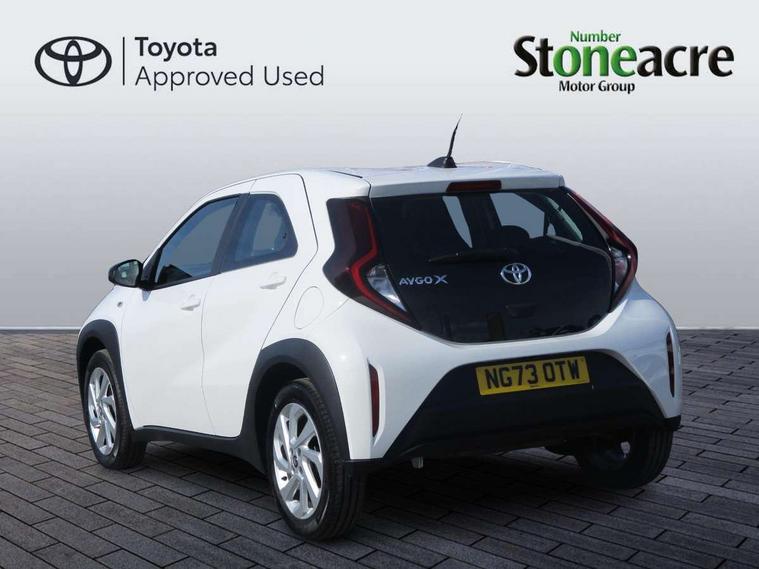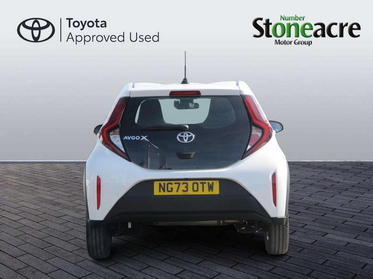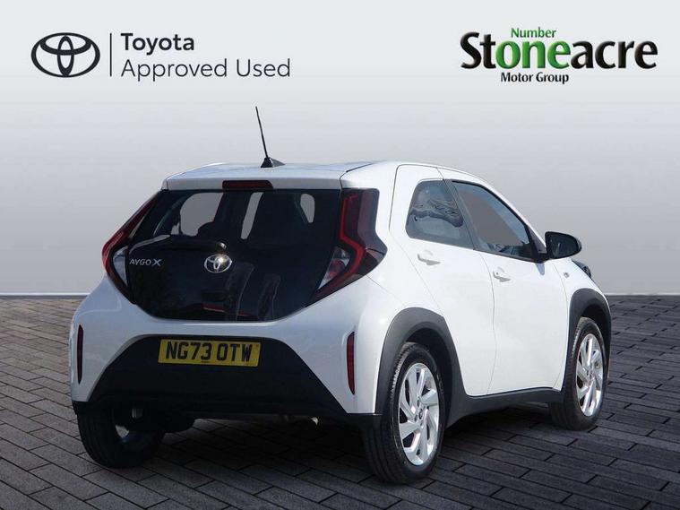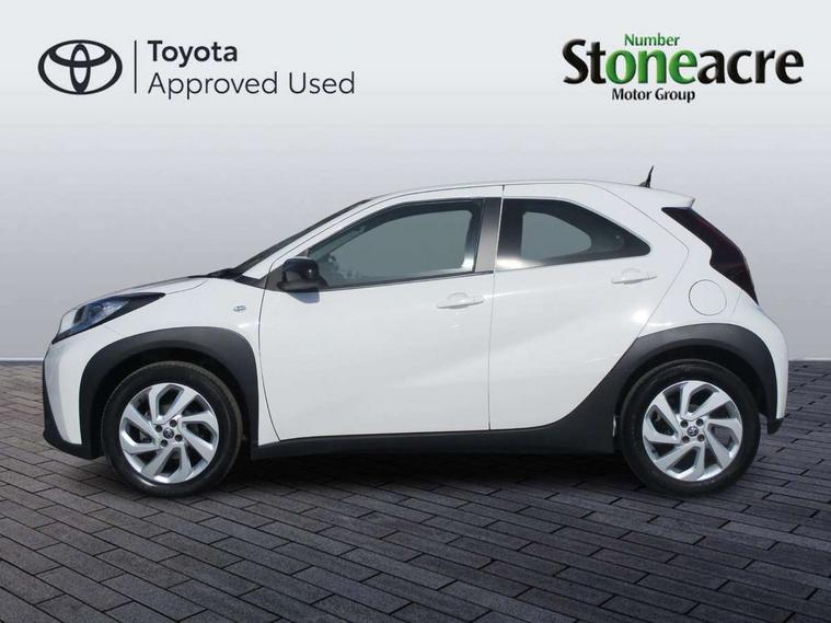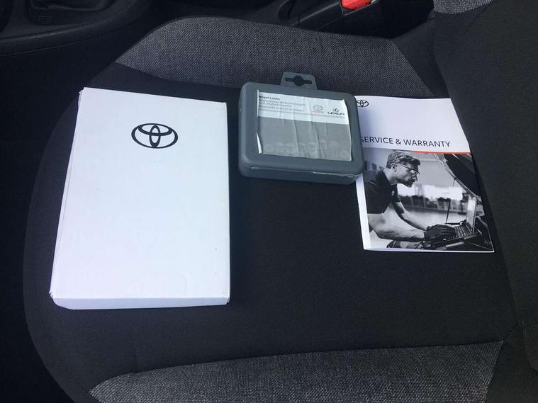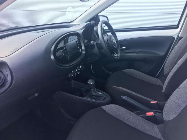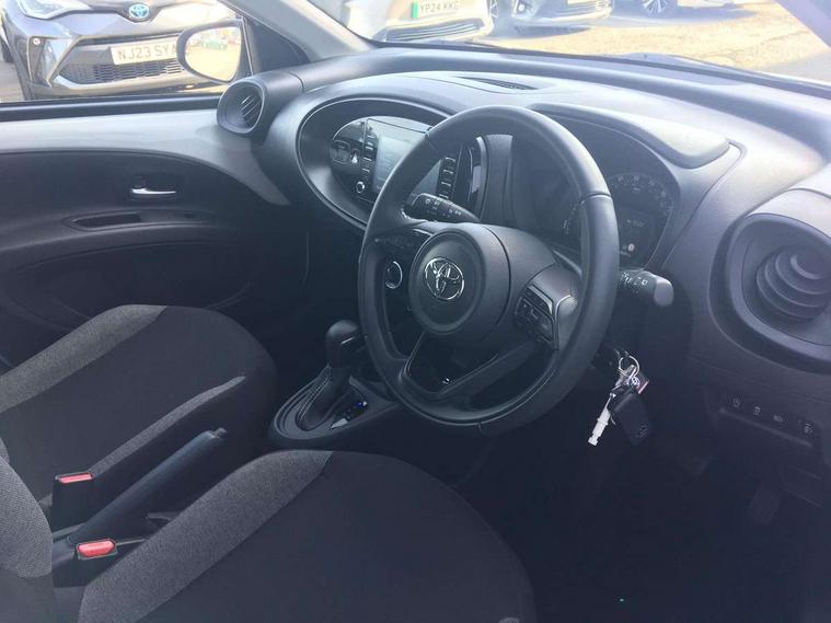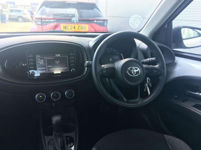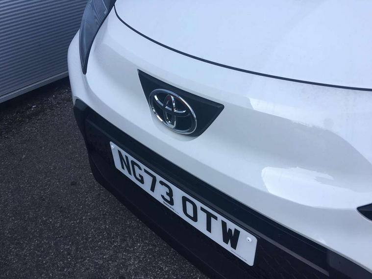4.2" TFT colour screen, Adjustable speed limiter, Analogue speedometer, Bluetooth connectivity, Digital tachograph, Driver attention alert system, eCall emergency call system, ECO-driving indicator, Electric power steering, Intersection turn assist, Key reminder warning, Noise reduction kit, Pre collision system with emergency steering assist, Reversing camera with static guide lines, Smart phone integration with Apple car play/Android Auto, Speed limit display, Start and stop, Vehicle Stability Control (VSC), 4 speakers, 9" HD multimedia display touch screen with Toyota smart connect, DAB digital audio broadcast, USB connector, Auto headlights, Automatic headlights cut-off, Bicycle towing hook, Black lower front grille, Black rear bumper, Black side protection mouldings, Black upper front grille, Black wheel arch mouldings, Body colour door handles, Body coloured front bumper, Boot door scuff plate, Electric heated door mirrors, Follow me home headlights, Front power windows, Gloss black door mirrors, Headlight cut-off reminder, LED daytime running lights, LED front light guide, LED High mounted stop lamp, Manual day/night rear view mirror, Manual headlight levelling, Pagoda roof, Power adjustable door mirrors, Power back door, Projector halogen headlights, Rain sensor, Rear combination lights LED bulb type, Rear side wing doors, Rear windscreen defogger, Rear windscreen wiper, Short antenna, Variable intermittent windscreen wipers, 12v power outlet - front, 2 seat bench in 2nd row, 3 spoke leather steering wheel, 50/50 split folding rear seat, Adhesive roof headlining, Adjustable speed limiter switch on steering wheel, Audio and telephone switches on steering wheel, Black insert on steering wheel, Boot light, Centre room light, Chrome interior door handles, Chrome surround on air conditioning buttons, Clean air filter, Fabric upholstery, Floor mats, Front and rear cup holders, Front head rest deco art, Front head restraints, Gear shift indicator, Height adjustable driver seat, Intelligent adaptive cruise control switch on steering wheel, ISOFIX child restraint system on rear seats, Lane departure alert switch on steering wheel, Leather gearshift knob, Light grey roof lining, Manual air conditioning, Manual tilt steering wheel, Manually reclining and sliding driver seat, Manually reclining and sliding front passenger seat, Multimedia switches on steering wheel, Pollen filter, Rear door pockets, Rear head restraints, Resin console box storage, Satin silver insert on gear shift knob, Silver stitching on gear shift knob, Single compartment glovebox with lights, Single front passenger seat, Soft tonneau cover, Sun visors with mirror on driver and passenger side, Voice recognition switch on steering wheel, Toyota safety sense pack - Aygo X, Anti lock braking system + Electronic brake force distribution, Child safety door lock, Emergency brake light signal (EBS), Hill start assist control (HAC), Passenger airbag on/off switch, Seat belt reminder for front and rear seats, Supplement restraints system (SRS) - 6 airbags, Traction control, Tyre pressure warning system, Immobiliser, Remote power door locks, Black air vent surround, Black wheel centre caps, Tyre repair kit,