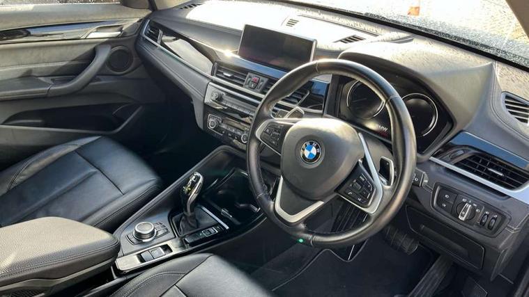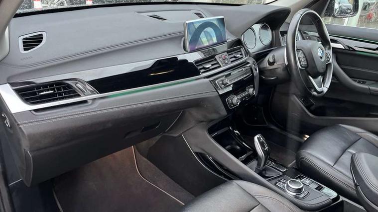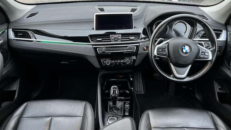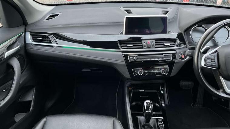 Ambient temperature display, Apple CarPlay, Arrow pointers, north up, direction of travel and perspective map displays, Attentiveness assist, Automatic tailgate opening, BMW ConnectedDrive, BMW Online services, BMW remote services, BMW Teleservices, Brake pad wear indicator in front and rear, Characteristic map controlled oil pump system, Front axle single joint with specific axle kinematics to minimise drive influences on steering + provide increased rigidity agile driving behaviour, Front/rear park distance control (PDC), Instrument cluster with Black optic display featuring superimposed dials and 5.7" colour display, Instrument cluster with speedometer with miles per hour read out, tachometer and fuel gauge, Integrated hard drive with map data updates via USB interface, Lights on warning by audio warning signal when ignition is switched off, On board computer, Operation by iDrive with direct selection buttons and 8 programmable buttons, Optimum shift indicator, Outside temperature gauge, Park assist system, Personal Profile - automatic lock when driving away selectable, Real time traffic information, Rigidly mounted rear subframe - Multi link construction with separate spring / damper configuration and excellent driving characteristics, Service interval indicator, Servotronic PAS, Tyre puncture warning system, 12V compressor with integrated sealant injection bottle and hose, 51 Litre fuel tank, Aluminium lightweight construction including crankcase, Anti-roll bars, Balancer shaft, Double VANOS, Drive performance control with ECO PRO comfort + sport mode, Electronic differential lock control (EDLC), High precision injection, Performance Control, Seven speed sport dual clutch automatic transmission (DCT), Standard suspension, Stop/start function, Turbocharger with Valvetronic, Twin tube gas filled shock absorbers with degressive characteristic curve, DAB Digital radio, Adjustable headlights, Aero curtain, Automatically dimming rear view mirror, BMW Icon design LED daytime driving lights, Body colour bumpers, Body colour door handles, Body colour door mirrors, Direction indicator side lights integrated exterior mirrors, Dynamic brake lights, Electric windows - front and rear, with open/close fingertip control, anti-trap facility and comfort closing, Electrically adjustable door mirrors with aspheric on driver side, convex on passenger side with integrated indicators, Exclusive front door sill finishers with BMW designation, Exterior mirrors - electrically folding with anti-dazzle, Follow me home headlights, Front air guide finished in black silver, Front air inlets in matt black with silver finisher matt, Front and rear bumper system, Front bumper underbody protection in silver matt, Green tinted heat protection glazing glass, Headlight beam throw control, Heated door mirrors, Heated windscreen washer jets, High level third brake light, Kidney grille with 14 chrome matt aluminium fronted with black matt sides vertical bars, LED direction indicator lights in headlight eyebrow, LED front fog lights, Lightweight engineering, Model designation, Rain sensor including auto headlights activation, Rear bumper underbody protection in black silver with silver matt insert, Rear fog lights, Rear window aerial, Rear window wash/wipe, Reversing light in rear light cluster, Roof mouldings in matt black, Shark fin antenna, Sill cover matt black with matt silver insert, Twin chrome exhaust tailpipes x2, Two eye face design on light, Visible VIN plate, Welcome lighting, 12v power point in centre console, 2 cup holders in front, 3 rear headrests, 3 spoke sport leather steering wheel, 40:20:40 split folding rear bench seat, Boot light, Centre armrest in 20 degree part rear seat backrest, Child seat ISOFIX attachment for two outer rear seats and front passenger seat with anchorage points, Conditioned based service, Dakota leather upholstery with perforation and contrast stitching, Driver and front passenger heated seats, Driver/front passenger seat backrest back with luggage net, Dual zone automatic air conditioning, Four grab handles integrated in roof linings, Front and rear side armrests integrated into door trim, Front centre armrest/sliding cover, Front centre interior light over interior mirror and rear centre automatic interior light when door is opened/ignition switched off or via remote key, Front/rear adjustable head restraints, Illuminated glovebox, Leather gearknob/gaiter/handbrake grip, LED ambient lighting in door trim, Luggage area underfloor compartment, Luggage compartment access via recessed handle below tailgate, Luggage compartment lighting, Luggage compartment loading edge with stainless steel insert, Manually adjustment steering wheel column, Multifunction steering wheel, Rear coded belt buckles, Standing free front adjustable armrest and fixed in different positions, Steering wheel gearshift paddles, Sunvisors with vanity mirrors and ticket pocket, Velour floor carpets, Extended lights pack - X1, Extended storage package - X1, ABS/EBD, Audio/visual collision warning system, Automatic Stability Control (ASC), Battery safety cut-off, BMW emergency call, Brake drying, Brake energy regeneration, Braking readiness, Cornering brake control (CBC), Crash Sensor - activates hazard/interior lighting + unlocks doors, Driver/Front Passenger airbags, Driver/front passenger side airbags, Dynamic brake control, Dynamic stability control + (DSC+), Dynamic Traction Control - DTC, Electronic parking brake, Front and rear head airbags, Front passenger airbag deactivation, Front seatbelt force limiters, Front ventilated disc brakes, Hill start assist, Pyrotechnically pre-tensioned front seatbelts, Rear disc brakes, Rear door child safety locks, Seatbelt security check for driver and front passenger, Side impact protection, Three point seat belts in all seats, Twin horns, Tyre pressure monitor, Warning triangle and first aid kit, Central locking switch for all doors, fuel filler cap and luggage compartment
