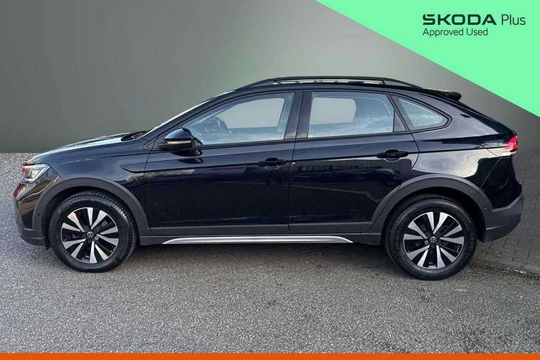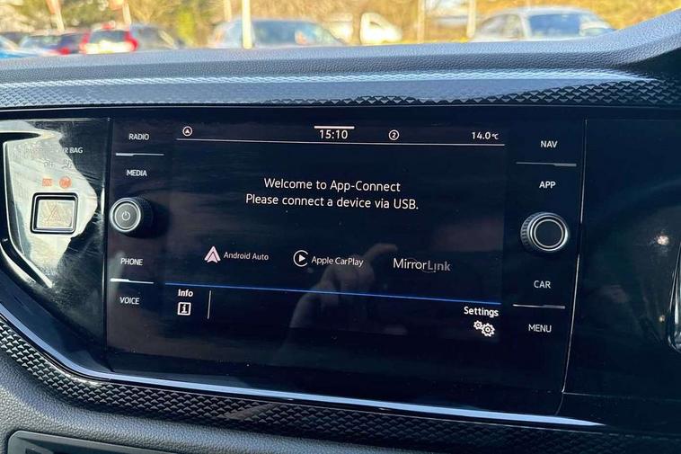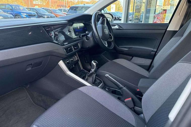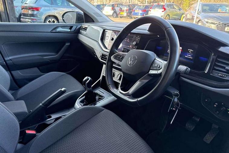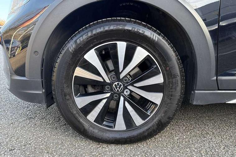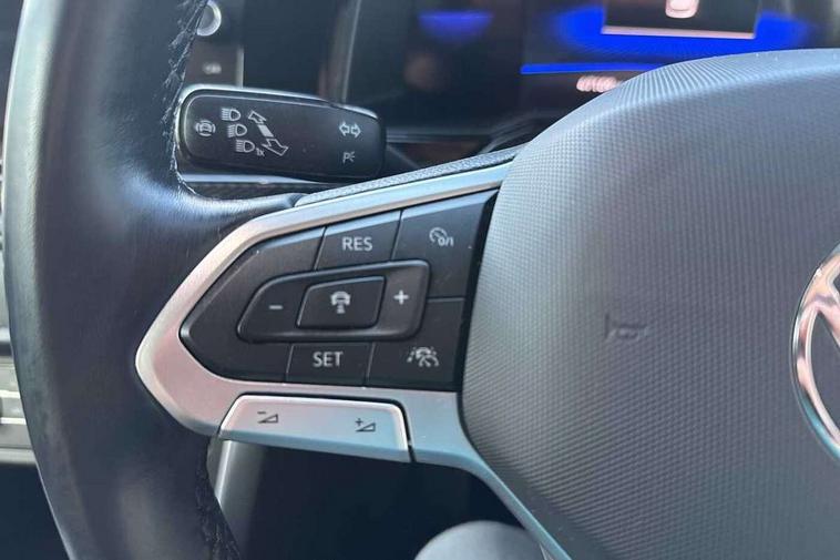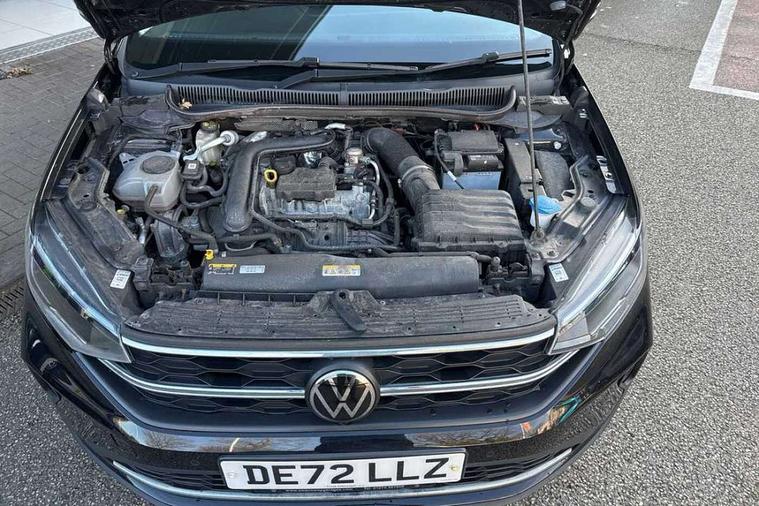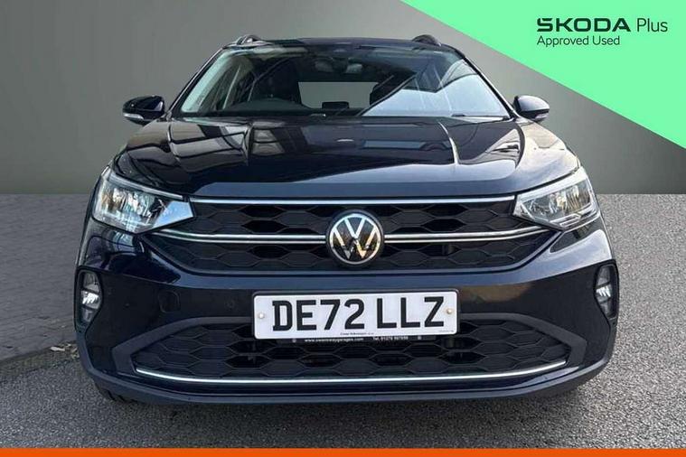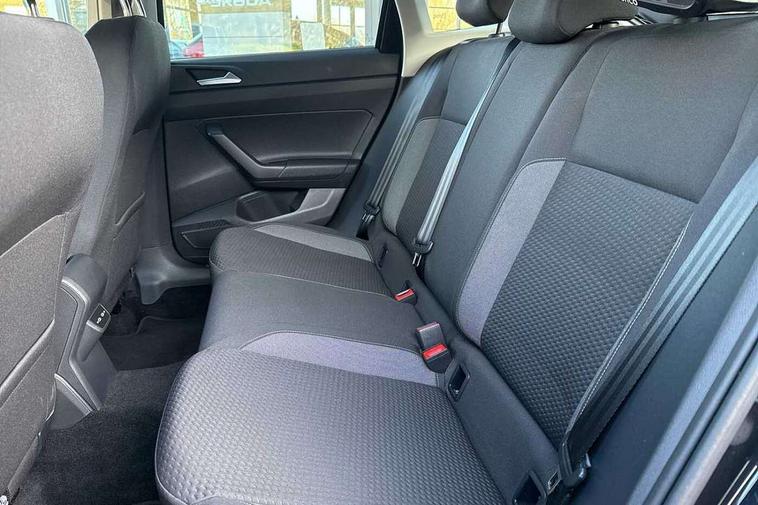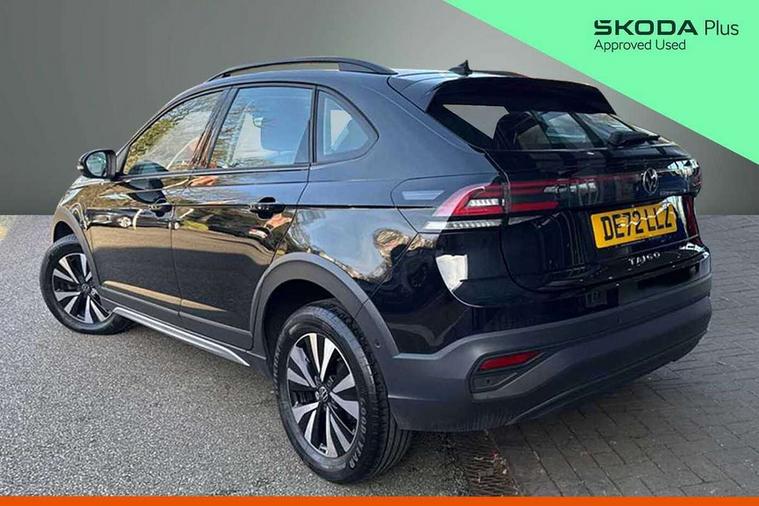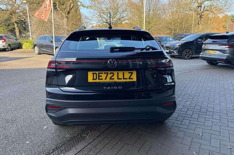 Driver alert system, e-Call (emergency call), Power Steering, Travel assist including emergency assist, Washer fluid level indicator, Wireless Charging including Bluetooth, Start-stop system with battery regeneration (recuperation - energy recovery during braking), WeConnect plus, Ambient lighting with logo projection, Aspherical driver's exterior mirror, Auto headlights, Body coloured bumpers, Body coloured exterior mirror housings and door handles, Electric windows, External USB type C socket and charging sockets, Front fog lamps with cornering function, Headlight range control, Heat insulating glass windscreen, LED headlamps, LED rear combination lamp, LED third brake light, Left convex exterior mirror, Power folding adjustable/heated exterior mirrors and front passenger exterior mirror lowering function, Rear fog light on one side, reversing light on both sides, Rear side wing doors, Rear wash/wipe with intermittent wipe setting, 'Slash/ Austin' Cloth upholstery, 12V socket in centre console, 2 front reading lights, 3 rear head restraints, 3 seat bench in 2nd row, Black carpets, Child seat anchor for child seat system i-Size, 2x top tether and child seat anchor in front on front passenger side, Door and side trim panels in titan black, Driver and front passenger seat height adjustment, Front centre armrest, Handbrake lever handle in leather, Height and reach adjustable steering wheel, Leather trimmed gear knob, Leather wrapped multifunction steering wheel, Luggage compartment floor, Luggage compartment light, Lumbar support for driver's and front passengers seat, Seat covers in titanium black, Single front passenger seat, Split folding backrest with centre armrest and unsplit rear seat bench, Storage compartment under front seats, Sun visors with illuminated vanity mirrors, Chrome Package - Taigo, Drivers assistance pack - Taigo, Light and Sight pack including High beam assist - Taigo, 2 x 3-point seatbelts/outer rear seats with ECE label, 3-point seat belts in front with pretensioner and height adjustment, 3-point seatbelt for centre rear seat, Driver and front passenger airbags with front passenger airbag de-activation, front side and curtain airbags, Driver and front passenger safety-optimised head restraints, Electronic stability control, Extended and predictive pedestrian/ cyclist protection, Front and rear disc brakes, Front curtain and side airbags with center airbag, Hill start assist, Manual rear child locks, Single tone horn, Tyre pressure loss indicator, Anti-theft alarm system with interior monitoring, backup horn, and towing protection, Anti-theft wheel bolts, Lava stone black gloss/matt decorative inserts in dash and front door panels, Low rolling resistance tyres,