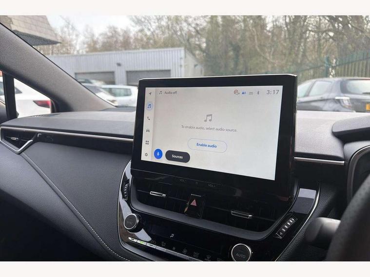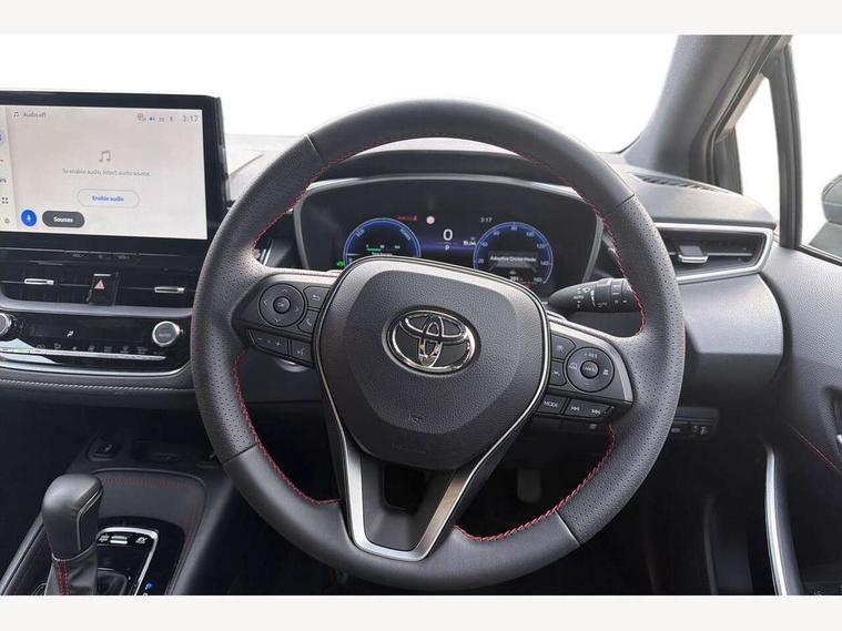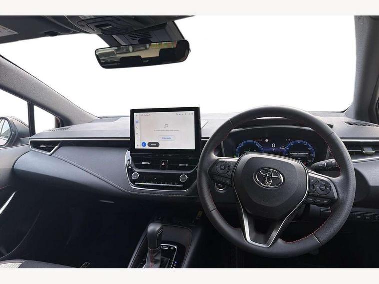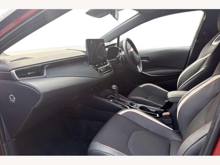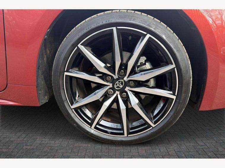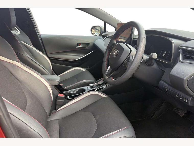 10.5" Multimedia display screen, Bluetooth telephone connectivity, Connected car functionality upgrade, tracker, remote status and e-care, Drive mode select (Eco, Normal), E-call, Electrically assisted power steering, EV drive indicator, Front and rear parking sensors, Full Digital 12.3" TFT Digital Combimeter, Intelligent clearance sonar, Key reminder warning, Lane Departure Alert (LDA) switch on steering wheel, Memory on adjustable speed limiter, MyT connected services, Proactive driving assist (PDA), Reversing camera, Smart entry and push button start with GR Logo, Smartphone integration with Apple CarPlay and wired android auto, Tailgate, Toyota remote services, Toyota smart connect navigation, Wireless charger, Gasoline particulate filter, Vehicle Stability Control (VSC), 6 speakers, AM/FM radio, DAB Digital radio, Front USB-C in centre console, Front USB-C in dashboard, Smart voice assist/ Voice recognition, USB and Aux in connectors + 12V front outlet, Anti-jam protection on power windows, Auto up and down function on all power windows, Automatic folding mirrors, Automatic headlights with high beam assist, Black centre and side air vents, Black toyota logo in front, Body coloured bumpers, Body coloured door mirrors, Body coloured outside door handles, Dark chrome lower grille, Electrochromatic mirror, Follow me home headlights, GR Sport dark chrome front mesh grille and black rear grille, GR Sport exclusive under guard, GR sport scuff plates, LED daytime running lights, LED dual beam projector headlights, LED front fog lights, LED High mounted stop light, LED rear combi lights with LED lightguide, Manual headlight levelling system, New grille pattern, Noise reduction layer on windscreen, Piano black diffuser, Power adjustable heated door mirrors, Power front windows, Power rear windows, Privacy glass with UV filter, Rain sensing wipers, Rear side wing doors, Rear window defogger, Rear window wiper, Reverse tilting door mirrors, Rocker and door lower moulding, Roof spoiler, Satin chrome insert on front air vents, Satin chrome insert on front door assist grips, Satin silver front spoiler, Shark fin antenna, Tailgate release with push button, Time adjustment on intermittent wiper, Turning signal integrated indicators in door mirrors, Unique lower skirt, Unique side rocker with black insert, UV-filter on driver and passenger windows, 2 Shopping bag hooks in luggage compartment, 3 rear headrests, 3 seat bench in 2nd row, 3 spoke steering wheel with satin insert and red stitching, 4 tie down hooks in luggage compartment, 60/40 split folding rear seat, Adaptive cruise control (ACC) switch on steering wheel, Adjustable speed limiter switch on steering wheel, Audio, multimedia and telephone switches on steering wheel, Black armrest on centre console box, Black gear shift console, Boot light, Boot underfloor storage, Centre room light, Driver and front passenger personal light, Driver and passenger assist grip, Driver and passenger seatback pockets, Driver and passenger sun visor with mirror and light, Dual zone automatic air conditioning with ECO mode switch, Electric lumbar support for passenger, Fabric/synthetic leather upholstery, Front and rear cup and bottle holders, Front door pockets, Front head restraints, Front passenger seat, Front sliding synthetic leather armrest, Gear knob, GR Sports seats with partial leather bolsters, Heated front seats, Illuminated entry system in room lamp, ISOFIX seat fixing (2 fixings on rear outer seats), Manual height adjustable for driver and front passenger seat, Manually tilt with sliding driver and front passenger seat, Nanoe-X air purifier, Paddle shifts, Parcel shelf, Pollen filter, Power adjustable lumbar support on driver seat, Power window switches with satin chrome inserts, Rear armrest with 2 cupholders, Rear passenger coat hooks (2), Red stitching on gear shift, Remote air conditioning, Satin chrome inside door handles, Satin chrome surround on speedometer, Sliding armrest on centre console box, Slow opening glovebox with lights, Textile floor mats, Tilt/telescopic steering column, Voice recognition switch on steering wheel, Whiplash Injury Lessening (WIL) feature (active headrest) for seats, White ambient lighting on open tray and front cup holder, Toyota safety sense 3 pack - Corolla, 3x3 point rear seatbelts, Adjustable driver and front passenger seat belt extender to top anchor point, Anti lock braking system + Electronic brake force distribution, Brake assist function, Child locks on rear doors, Downhill Assist Control (DAC), Electronic parking brake, Emergency brake light signal (EBS), Front passenger airbag on/off switch, Front seatbelt reminder, HAC - Hill start assist control, Rear seat belt reminder, Seatbelt pretensioners and force limiters, Supplemental restraint system (SRS) 7 airbags - dual driver, dual side curtain, side impact and driver knee airbags, Traction control, Tyre pressure warning system, Acoustic vehicle alert system (AVAS), Alarm with motion sensor and immobilizer, Power passenger window lock, Remote central locking + deadlocks, GR Sport interior and exterior styling, Satin chrome dash trim, Soft touch texture on upper dashboard, Stitching on lower dashboard, 18" 10 spoke black machined face alloy wheels, Tyre repair kit, Unique wheel finish with red wheel cap,