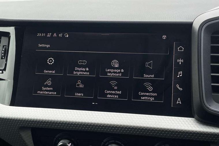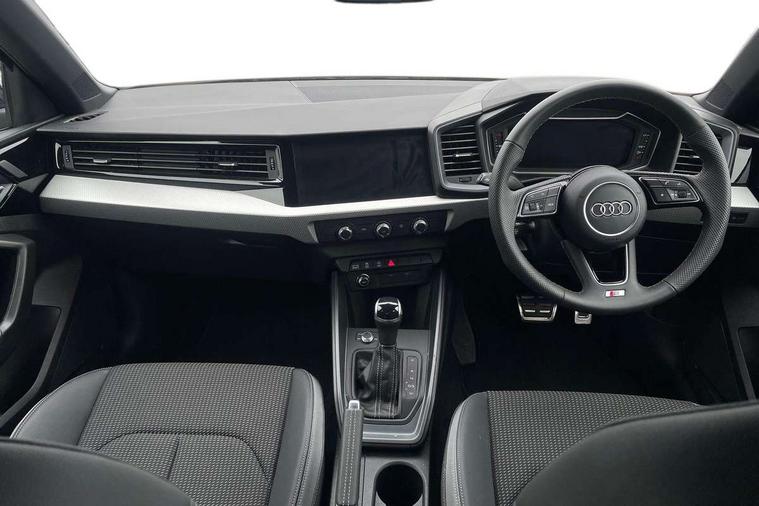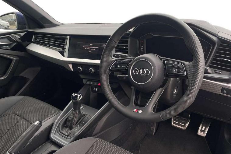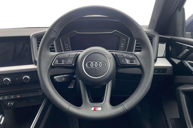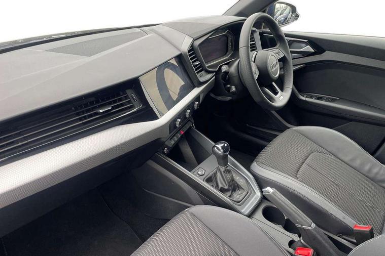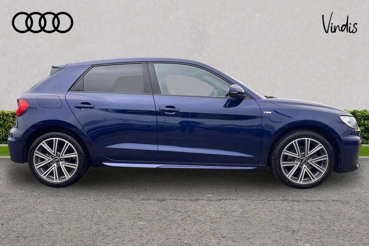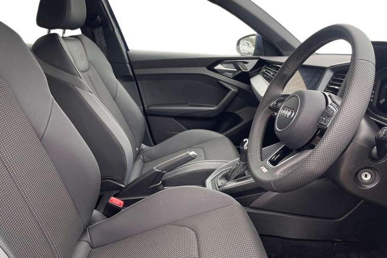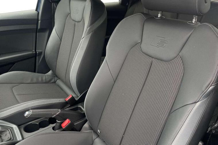 10.25" Digital instrument cluster display classis style instrument dials + speed, odometer, time, outside temperature, telephone menu + fuel level warning, Advanced driver attention and drowsiness monitor, Audi connect emergency call and service, Audi drive select, Audi remote connect and control, Audi smartphone interface, Bluetooth interface, Camera based traffic sign recognition, Cruise control, Driver's information system, Electromechanical power steering, Lane departure warning system, Rear parking sensor, Service interval indicator, Speed limiter, Start stop system with recuperation, Voice control system, Washer fluid level indicator, Sports suspension, 2 x USB type C connection points, 6 loudspeakers, DAB Digital radio, MMI radio plus with 10.1" colour MMI display screen and MMI touch, Auto dimming rear view mirror, Body coloured door mirrors, Door sill trims with aluminium inlays and S line logo in front, Electric front and rear windows, Electrically adjustable, heated, folding door mirrors with integrated LED side indicator, Front side air inlets in grained matt black and C frame in anthracite black, Headlight cleaning system, Heat insulating glass windscreen and side windows, Heated rear windscreen, High level LED brake light, LED daytime running lights, LED headlights with range control LED rear lights + dynamic rear indicators, Light and rain sensors, Privacy glass, Radiator grille and rear diffuser in matt anthracite black, Radiator protective grille frame in matt aluminium silver, Rear fog lights, Rear side wing doors, Rear wiper, S line badges on front wings, Side front spoiler lips in grained matt black, 12V socket in centre console with two cup holders, 3 rear seats with headrests, 3 seat bench in 2nd row, 3 spoke leather multi-function plus steering wheel features S badging and grips in perforated leather with contrast stitching, 40:60 Split folding rear seat or fully collapsed, Black cloth headlining, Front and rear velour black floor mats with contrast stitching in fine silver, Front head restraints, Front passenger seat, Height and reach adjustable steering wheel, Interior lighting includes roof module, front and rear reading lights and right luggage compartment lighting, ISOFIX child seat mounting for front passenger and outer rear seats including top tether attachment point of outer rear seats, Leather gear knob with aluminium trim, Leather handbrake grip, Manual air conditioning, Manual height adjustable for driver and front passenger seat, Manually adjustable lumbar support in front seats, Stainless steel pedals, Ambient lighting package - A1, Luggage compartment pack - A1, S line exterior styling pack - A1 Sportback, 3x3 point rear seatbelts, Audi pre-sense front with pedestrain and cyclist recognition, Brake assist function, Driver and front passenger airbag with front side and head airbags, Electronic Stability Control including ABS, EBD, ASR and EDL, Front passenger airbag deactivation switch, Hill hold assist, Manual rear child locks, Seatbelt height adjustment for front seats, Seatbelt monitoring, Tyre pressure loss indicator, Warning triangle and first aid kit, Anti theft alarm, Anti theft wheel bolts, Immobiliser, Remote control key with safelock, Aluminium trim for control switches, air vents and digital instrument cluster, Black dashboard, Silver grey inlays polygon structure in diamond paint finish, Structured grey accent surfaces insert of air vents, interior door handle recesses and centre console in quartz paint finish,
