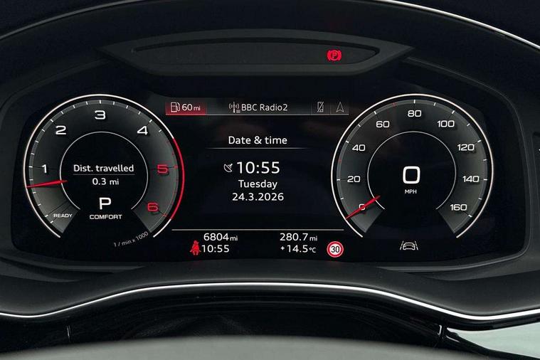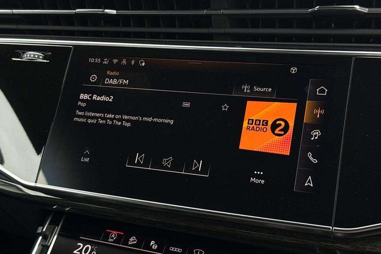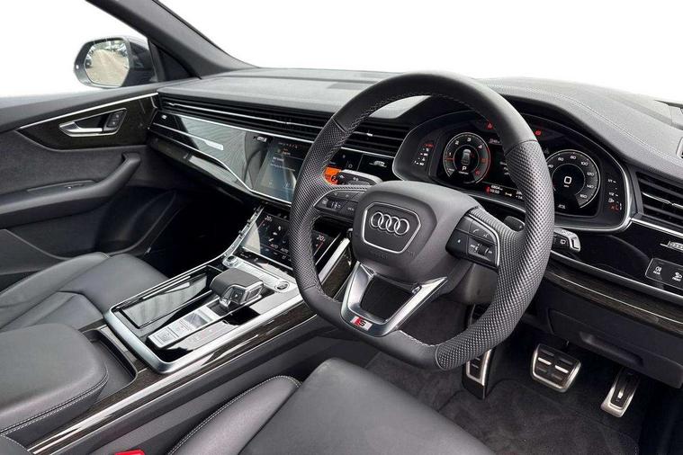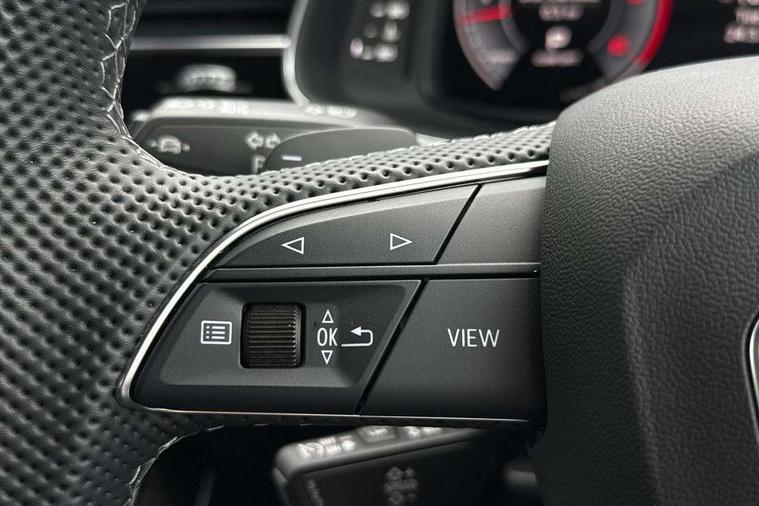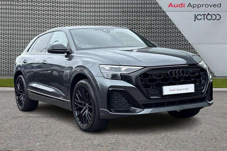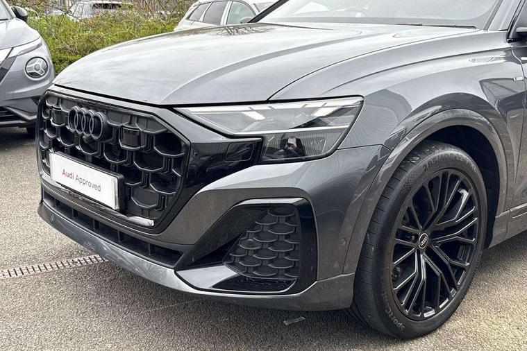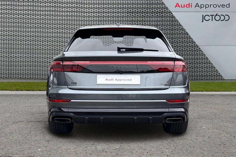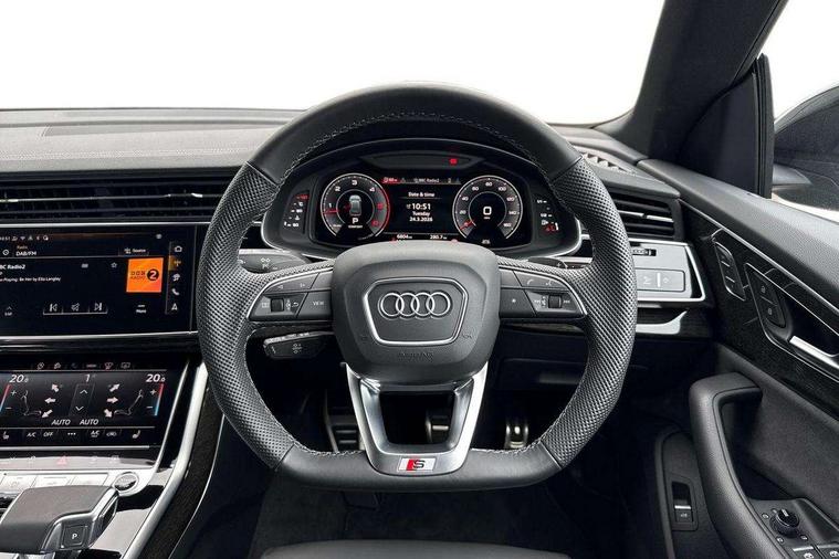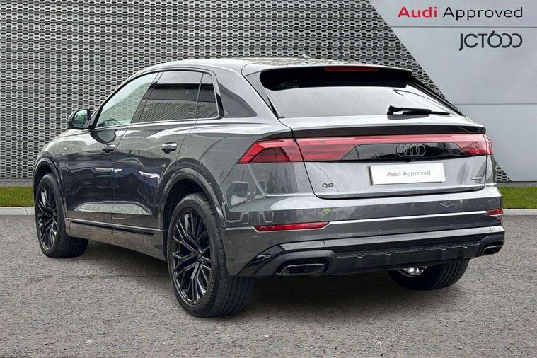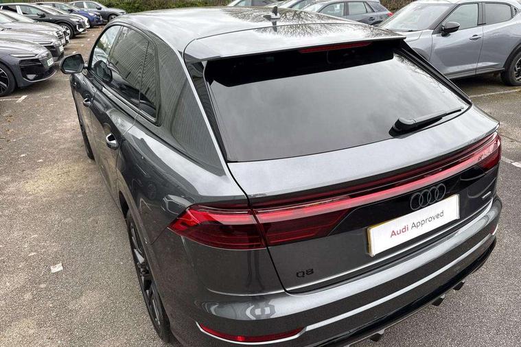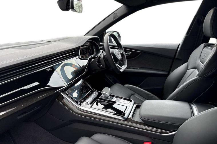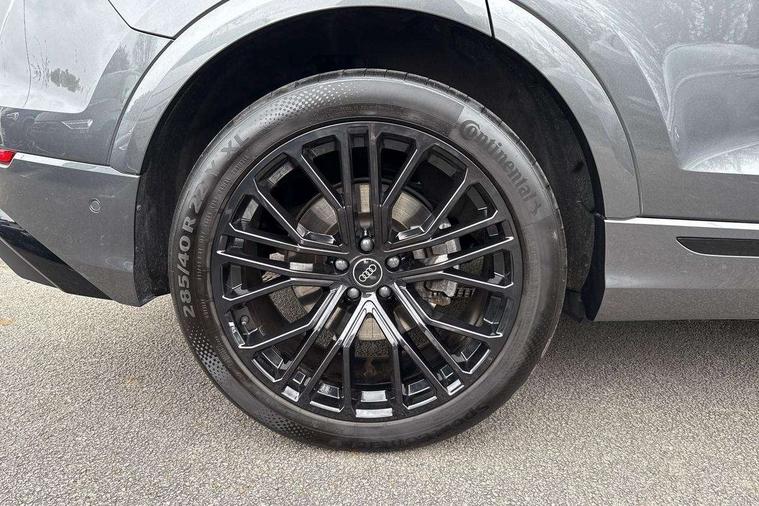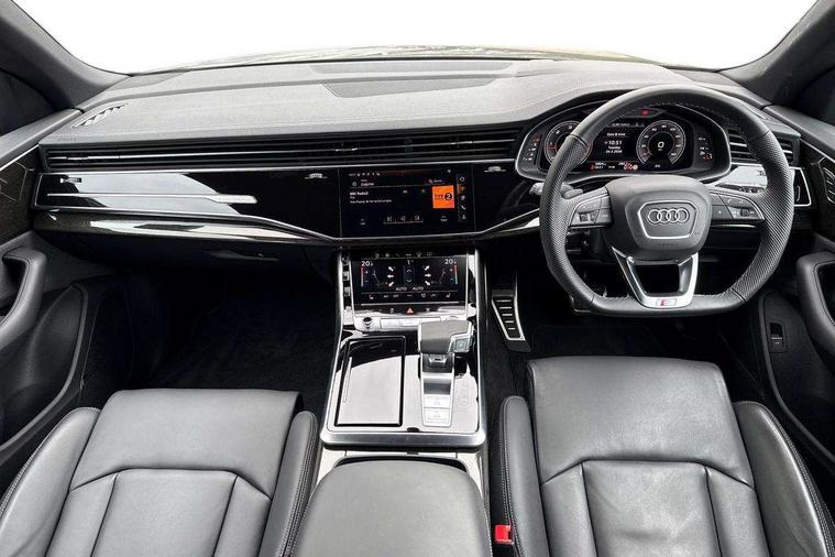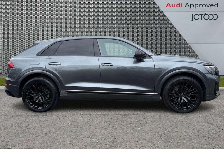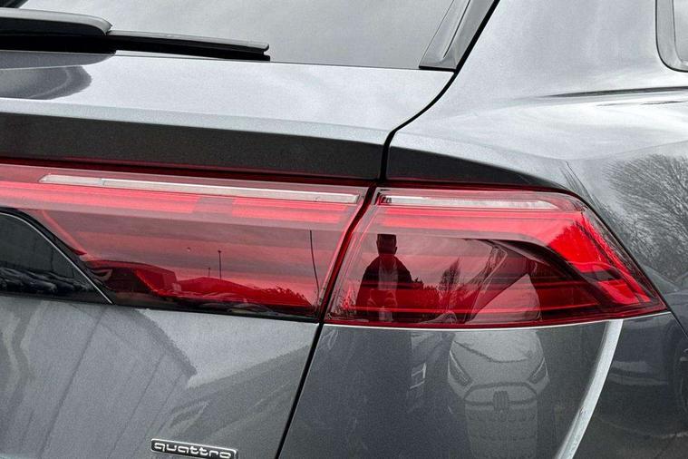 10.1" and 8.6" Dual colour touchscreens, Audi application store, Audi connect safety and service (e-call), Audi connect with Amazon Alexa Integration, Audi drive select, Audi parking system plus includes 360 degree display with front and rear sensors, Audi phone box light with wireless charging, Audi virtual cockpit - 12.3" high resolution LCD display with fully customisable instrument cluster, Automatic start/stop system, Bluetooth, Electro-mechanical PAS, Low washer fluid indicator, MMI navigation plus with MMI touch, Natural voice recognition, On board computer, Operating buttons in black, glass look with haptic feedback, Power operated tailgate, Rear view camera, Service interval indicator, Smartphone interface includes wireless Apple carplay/Android Auto, 48V Mild hybrid technology, Adaptive sport air suspension, Diesel particulate filter, Quattro all wheel drive with self locking centre differential, Audi music interface with 2 USB ports with charge and data functions, Audi sound system with 6 channel amplifier, 180 watt amplifying capacity and 10 loudspeakers including subwoofer, Aux-in socket, DAB Digital radio, 3rd brake light, Audi beam, Auto dimming frameless rear view mirror, Black exhaust tailpipes, Black single frame mask, Coming/leaving home lighting function, Electric front+rear windows, Electrically folding auto dimming/adjustable/heated door mirrors with memory function, LED side indicators and kerb view function for passenger side, Headlight washers, Heat insulating glass in windshield, LED rear light plus, LED signature daytime running lights, Loading edge protection in stainless steel, Matrix LED headlights with dynamic front and rear indicators, Platinum grey front spoiler lip and diffuser insert with honeycomb grille in black, Privacy glass - dark tinted rear and rear side windows from B-pillar backwards, Rain and light sensors, Rear side wing doors, Rear wiper, Singleframe grille surround in matte platinum grey, 2 zone automatic climate control, 3 bench rear seats in 2nd row, 4-way lumbar support for front seats, 40:20:40 split folding rear bench seat, Black cloth headlining, Comfort front centre armrest, Driver seat memory function, Electrically adjustable front seats, Front head restraints, Front/rear floor mats, Heated front seats, ISOFIX child seat mounting for front passenger seat and 2 outer rear seats with top tether child seat mounting for all 3 rear seats, LED interior ambient lighting, Luggage compartment sill protection in stainless steel, Rear centre armrest with 2 cupholders, Rear headrests, Seat cushion displaceable by 100mm in the ratio 60:40, Single front passenger seat, Stainless steel pedals, Sunvisors with illuminated vanity mirrors, Black styling pack plus - Q8, 3 point seatbelts on all seats, Audi pre sense front, Convenience key with safelock, Driver and front passenger, front side and curtain airbags, Electromechanical parking brake, Electronic Stability Control (ESC) including ABS, ASR and EDL, Front passenger airbag deactivation, Hill descent control, Hill hold assist, Predictive pedestrian protection, Seatbelt monitoring, Traction control, Tyre pressure loss indicator, Warning triangle and first aid kit, Anti theft alarm with tow away protection, Anti-theft wheel bolts and wheel loosening detection, Electronically operated child lock, Immobiliser, Keyless go with remote central locking, Polished oak trim with grey finish inlay, Tool kit, Tyre repair kit,