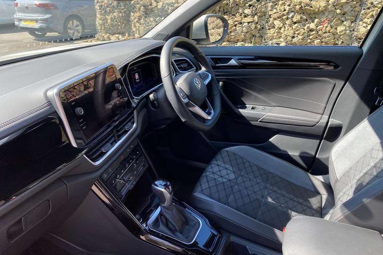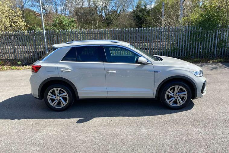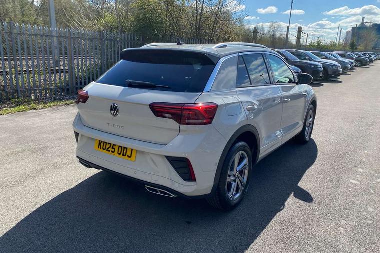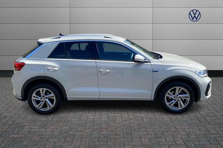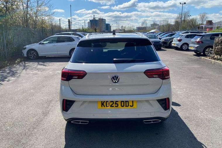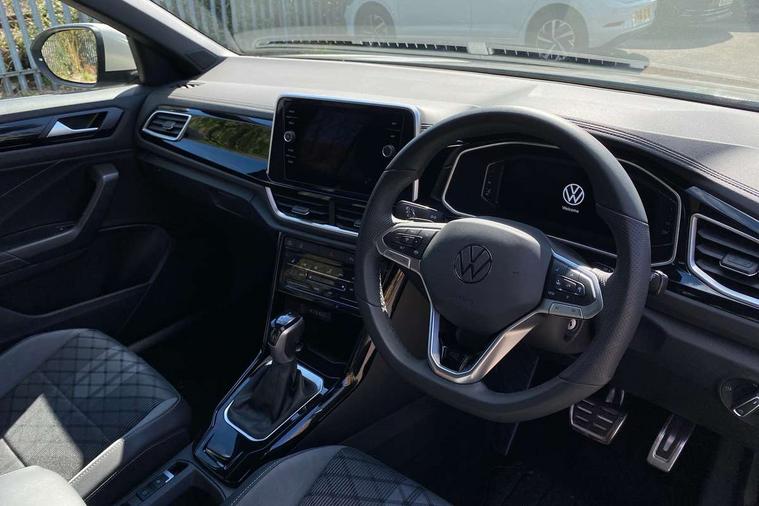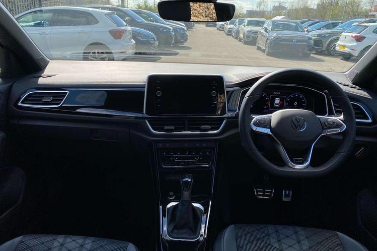 10.25" Digital cockpit pro, Advanced driver attention and drowsiness monitor, Emergency call service, Lane keeping system Lane Assist, Mobile phone interface, Modified key software - reduce switch off time for key status change to Long no motion, Online services, Park assist including front and rear parking sensors, Service interval indicator, Tailgate/trunk lid release from outside, Think blue trainer driver tips and journey analysis, Warning sound and light for front seatbelts unfastened, Wireless app connect, Battery regeneration during braking, Start/stop function with battery regeneration, DAB Digital radio, Diversity antenna for FM reception, Front and rear 6 speakers, Music playback - MP3, WMA and AAC files, Premium USB cable in choice of either Apple or Android smartphone compatibility, SD card slot, Simultaneous pairing of 2 compatible mobile devices, Title and cover art display, We Connect and We Connect Plus functionality, Auto dimming interior rear view mirror, Automatic hazard lights activation under emergency braking, Automatic headlight control with LED separate daytime running lights with coming/leaving home function, Body coloured exterior mirror housings and door handles, Electrically adjustable and heated door mirrors, Extended roof spoiler, Exterior mirrors aspherical on driver side, convex on front passenger side, External USB type C socket and charging sockets, Front windscreen wiper with intermittent wipe and 4 position delay, Heated rear window, LED 3rd brake light, LED rear combination lamps, LED rear number plate lights, Power windows with comfort operation and circuit breaker, Privacy glass for rear side windows and rear window, R-Line design body coloured bumpers, Rain sensor, Rear exhaust tailpipe, Rear fog light on one side and reversing lights on both sides, Rear side wing doors, Rear wash/wipe with intermittent wipe setting, Remote electrically foldable door mirrors, puddle lights and reverse activated passenger's door mirror, 12V power socket in centre console, 3 rear head restraints, 3 seat bench in 2nd row, 4 load lashing points in luggage compartment, Air care climatronic air conditoning system with active combination filter and 2-zone temperature control, Black roof lining, Chrome plated decorative trims, Chrome plated radiator grille inserts, air vent surrounds and light switch surrounds, Door and side trim panel with leatherette insert, Front + rear carpet mats, Front centre armrest, Front cupholders x 2, Front footwell illumination, Front reading light, Front scuff plates with R Line logo, Front seat back storage pockets, Glove compartment door with light, Instrument lighting, white adjustable panel illumination, Interior ambient lighting and surround lighting, Interior light delay, Isofix child seat preparation, Leather gearshift handle, Load-through provision with cup holder when folded down ('Unsplit rear seat bench, split folding backrest, with centre armrest), Luggage compartment lighting, Single front passenger seat, Stainless steel pedals, Storage compartment in left and right luggage area, Storage compartment in rear doors, Storage compartments in driver and front passenger doors, Sunvisors with illuminated vanity mirrors, Variable boot floor, height adjustable and removable, Driver assistance pack without proactive passenger protection - T-Roc, 3 point height adj front seatbelts + pretensioners, 3 point seatbelts in outer rear with ECE label, ABS, Child locks on rear doors, City emergency braking and pedestrian monitoring, Driver and front passenger airbag with front passenger airbag deactivation, Driver and front passenger safety-optimised head restraints, Drivers seatbelt reminder, Electronic parking brake, Electronic Stability Control (ESC) inc EDL (Electronic Differential Lock) and ASR (Traction Control), Front and rear passengers curtain airbag system including front side airbags, Hill start assist, Predictive pedestrian protection, Rear disc brakes, Two tone horn, Tyre pressure loss indicator, Volkswagen roadside assistance, Piano black decorative inserts in dashboard and front door trim panels, Trims for alloy wheels,