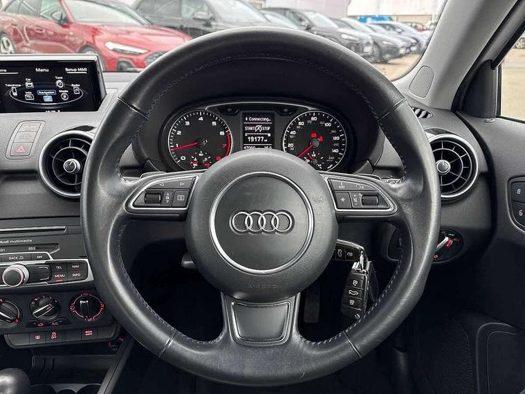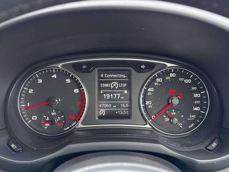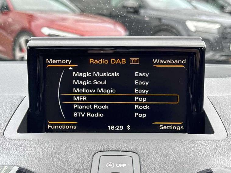 Tyre repair kit, Locking wheel bolts, Remote control central locking, Thatcham category 1 alarm + immobiliser, Additional SD card reader, Audi music interface, Bluetooth audio streaming, DAB Digital radio, ABS/EBD, Brake assist function, Driver and passenger side airbags, Driver/Front Passenger airbags, EDL, ESP with ASR, First aid kit, Front and rear seatbelt reminder, Front passenger airbag deactivation, Head airbags, Height adjustable front seatbelts, Hill hold assist, Rear three point seatbelts x 2, Tyre pressure monitor, Warning triangle, Adaptive brake lights, Electric adjustable door mirrors, Electric front windows, Front fog lights, Heat insulating glass, Heated door mirrors, Heated rear windscreen, Rear wiper, 12V Accessory socket in centre console, 3 spoke leather multi-function sport steering wheel including paddle shift, Adjustable rear head restraints, Cupholders in centre console, Door sills trims with aluminium inlays, Front floor mats, Front head restraints, Front seats - 'Easy Entry', Front sports seats, Height adjustable front seats, Illuminated glovebox, Isofix attachments on rear seats, Jack and tool kit, Leather gear knob, Leather handbrake, Lumbar adjustment for front seats, Rake/reach adjustable steering wheel, Split folding rear seats, Audi drive select, Electro-mechanical PAS, Low washer fluid indicator, Service interval indicator, Voice control system,