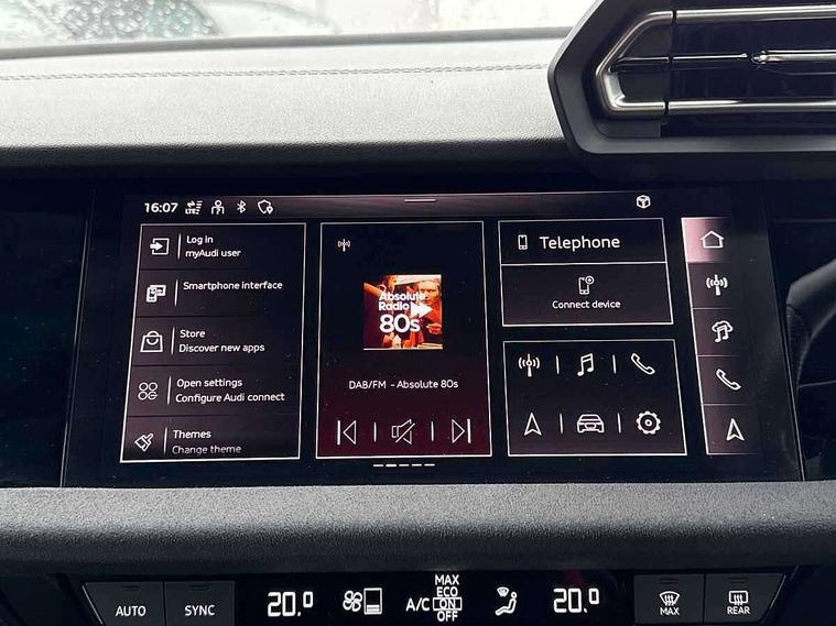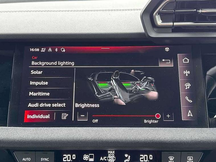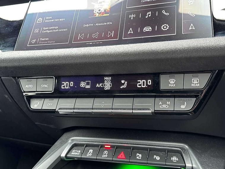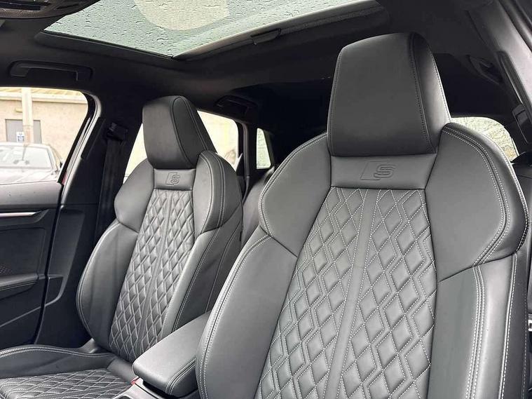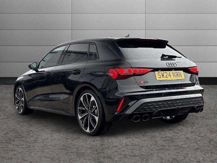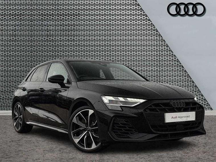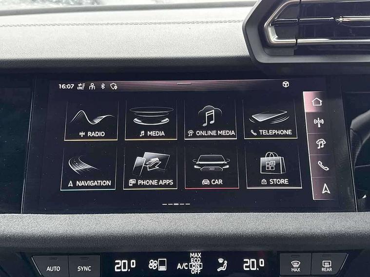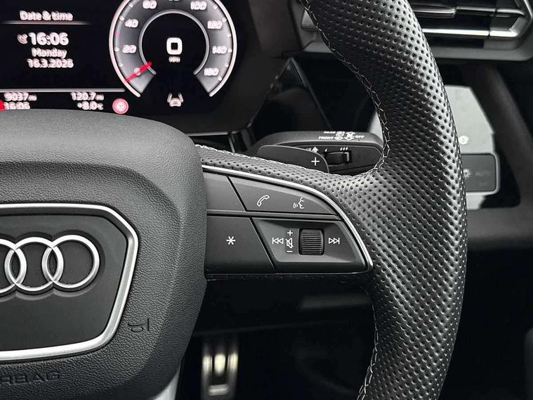 Adjustable speed limiter, Audi drive select, Audi smartphone interface with app store includes wireless Apple carplay, Android auto and Amazon alexa integration, Audi virtual cockpit plus - 12.3" full HD resolution dynamic digital instrument cluster, Automatic start/stop system with recuperation, Bluetooth interface, Camera based traffic sign recognition, Collision avoidance assistant, Distraction and Fatigue warning, e-Call (emergency call), Electromechanical power speed sensitive steering, Lane departure warning system, MMI Navigation Plus with high resolution 10.1" colour touch screen display, Park Assist with parking system Plus, Progressive steering, Service indicator, Tailgate, Trip computer, Voice control system with natural language interaction, S sport suspension with spring damper adjustment and lowering by 15mm, Audi Phonebox light with wireless charging, DAB Digital radio, USB ports with charging function in the rear, Anthracite grey Audi rings (front and rear), Audi Beam uses LEDs to project the rhombus S logo onto the ground as you exit your S3, Auto dimming frameless rear view mirror, Black accents front and rear bumpers including air inlets, Black accents in front grille and frame, Black accents window trims strips, Electrically adjustable/heated/folding/dimming door mirrors with kerb view includes integrated LED indications + kerb view function for passenger side, Exterior model badging, Front electric windows, Headlight washers, Heat insulating glass windscreen, Illuminated door sills with aluminium inserts at the front with S logo, LED 3rd brake light, LED daytime running lights, LED headlights with LED rear lights and dynamic rear indicators, Light and rain sensors, Privacy glass - dark tinted rear window, rear door and side windows, Rear electric windows, Rear side wing doors, Rear wiper, S grille, S3 front bumper with S specific air intake grilles, S3 roof spoiler, 12V socket and storage compartment in front centre console, 3 seat bench in 2nd row, 3 spoke flat bottomed leather multifunction sport steering wheel with gear shift paddles, 3-zone deluxe automatic air conditioning, 4 way electrically adjustable lumbar support for driver and front passenger, 40/20/40 split folding rear seat bench, Black cloth headlining, Fine Nappa leather upholstery with front sports seats S embossed logo, Front and rear centre armrest in artificial leather, Front and rear headrests, Front/rear floor mats, Heated front seats, Manual boot compartment lid, Manually adjustable front seats, S badging on the steering wheel, Seat side bolsters, Single front passenger seat, Stainless steel pedals and front footrest in black, Aluminium interior elements pack - A3 Sportback, Extended ambient lighting package Pro - S3 Black edition, Storage package - A3, Technology package - A3, 3x3 point rear seat belts, Driver and front passenger airbag with passenger airbag deactivation, Electronic Stabilisation Control (ESC) including ABS, ASR and EDL, First aid kit with warning triangle and 2 safety vests, Front side airbags with head airbags and interaction airbag, Hill hold assist, Pre-sense front with pedestrian and cyclist detection, Seatbelt monitoring, Tyre pressure loss indicator, Anti theft alarm, Anti-theft wheel bolts, Electronically operated child locks, Immobiliser, Remote control central locking, Inlays in black dynamica microfibre,