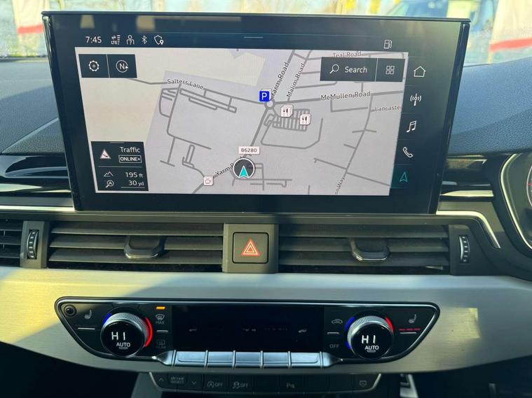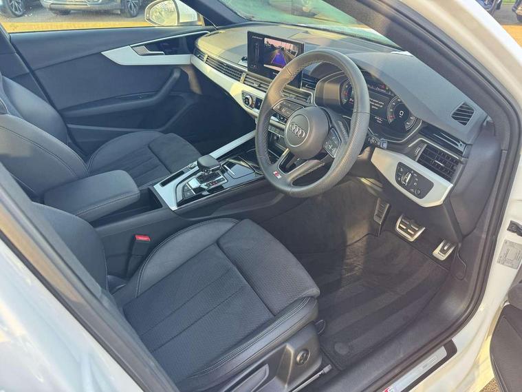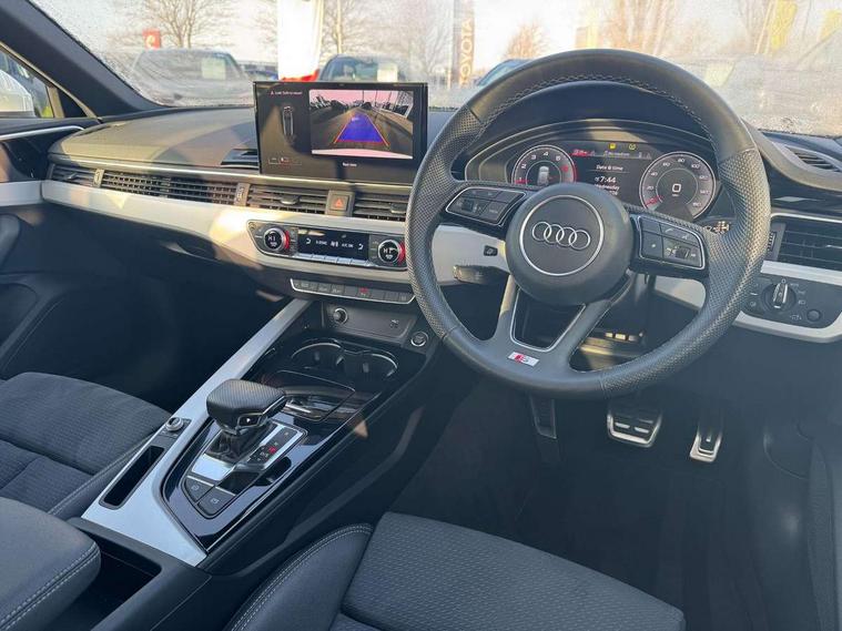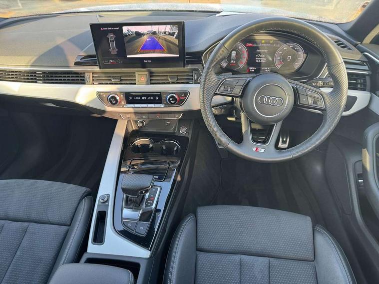 Audi connect safety and service (e-call), Audi drive select, Audi smartphone interface, Audi virtual cockpit, Automatic start-stop system with coasting functionality and efficiency programme, Bluetooth interface, Camera based traffic sign recognition, Electromechanical power steering, Email, calendar and text messages displayed via MMI, Front and rear parking sensors, Lane departure warning, MMI Navigation plus with MMI touch includes 10.1" high resolution colour MMI display, 3D map, Power operated tailgate, Rear view camera, Voice control system, 54 litre fuel tank, Sports suspension lowered by 23mm, 2 USB charging ports, 8 passive loudspeakers, DAB digital radio reception, Aluminium roof rails, Auto dimming rear view mirror, Body colour door handles, Body colour front spoiler lip, Body colour side sill trim, Body coloured door mirrors, Electric adjustable/heated/folding door mirrors with auto dimming, Grained matt black side air inlets with matt aluminium silver inlay, High beam assistant, Honeycomb structure radiator grille in grained matt black, LED headlights with LED rear lights + dynamic rear indicators + headlight adjustment and high beam, turning light + LED daytime running lights, LED third brake light, Matt aluminium silver tailpipe trim, Privacy glass, Rain and light sensors, Rear side wing doors, Rear wiper, S Line badges on the front wings, S line front and rear bumpers with side skirts, S Line rear diffuser in matt anthracite black with trim strip in matt aluminium silver, S Line roof edge spoiler, Variable intermittent front wash/wipe, Windscreen with acoustic glazing, 3 spoke high multi-function sports leather steering wheel grips in perforated leather with S badging including paddle shift, 4 way electric lumbar support for driver and front passenger, 40/20/40 split folding 3 rear seat bench in 3 parts with rear centre armrest, Black carpets, Black cloth headlining, Black perforated leather gearknob, Contrast stitching on seats, steering wheel and gear lever gaiter, Deluxe 3 zone electronic climate control, Electric load area cover, Front and rear head restraints, Front centre armrest, Heated front seats, Illuminated door sill trims with S logo, ISOFIX child seat mounting and top tether, Manual seat adjustment, Single front passenger seat, Stainless steel pedals and foot rest, High gloss package - A4, LED Interior light pack - A4/S4, 3 rear seatbelts, 6 airbags - Driver, front passenger, curtain and side windows, Attention and drowsiness assist, Electronic Stabilisation Control (ESC) including ABS, ASR and EDL, Hill hold assist, Multi collision brake assist, Pop-up bonnet for pedestrian protection, Pre sense city, Rear door child safety locks, Seatbelt monitoring, Warning triangle and first aid kit, Anti theft alarm, Anti theft wheel bolts, Central locking, Keyless Go, Matt brushed aluminium inlays, Tool kit, Tyre repair kit,