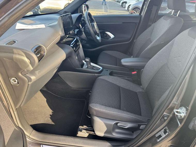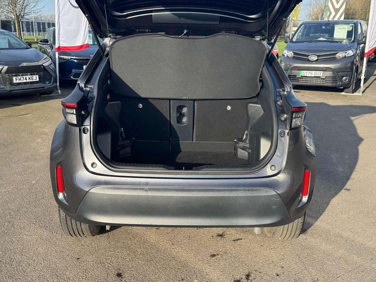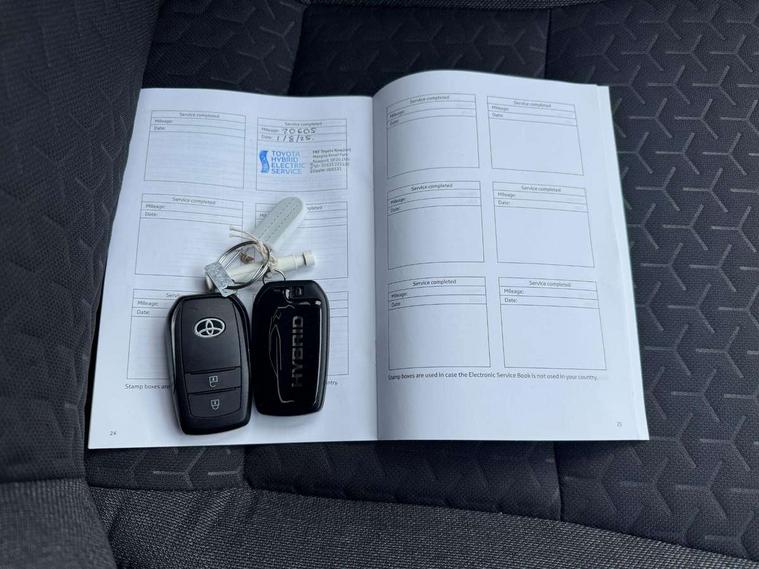 7" Multi information display screen, 8" Toyota touch 2 multimedia system with Smartphone integration with Apple CarPlay and Android auto, Adjustable speed limiter, Bluetooth connectivity, Driver attention alert system, eCall emergency system, Electric power steering, Full range intelligent adaptive cruise control, Hybrid system indicator, Key reminder warning, Lane trace assist, Multimedia, audio, telephone and voice recognition switches on steering wheel, My T Connected services, Pre-collision system enhanced with emergency steering assist, Reversing camera, Road sign assist - RSA, Steering assisted vehicle stability control, 6 speakers, DAB Digital radio, USB connection, 3rd brake light, Acoustic windscreen glass, Aluminium roof rails, Anti-jam protection on power windows, Auto high beam [AHB] with on/off switch, Automatic headlights, Black lower front grille, Black Shark-fin antenna, Black upper front grille, Black wheel arch mouldings, Body colour door handles, Body colour front bumper, Body colour rear bumper, Electric adjustable heated door mirrors, Follow me home headlights, Front and rear electric windows with auto up/down function, Front intermittent wipers, Headlight cut off reminder, Indicators integrated on door mirrors, Intermittent rear wiper, LED daytime running lights guide, LED front fog lights, LED front light guide, LED Indicators, LED projector headlights, LED rear light guide, Manual headlight levelling, Manually retractable door mirrors, Noise reduction layer on windscreen, Privacy glass, Rain sensor, Rear LED lights with sequential indicators, Rear side wing doors, Rear spoiler, Rear window defogger, 12v power outlet - front, 2x Rear coat hooks, 3 seat bench in 2nd row, 3 spoke leather steering wheel, 40:20:40 split folding rear bench seat, Adjustable speed limiter switch on steering wheel, Auto air conditioning, Black roof lining, Boot light, Central armrest, Centre console in light blue ambent lighting, Driver and front passenger personal lights, Fabric door trim, Fabric upholstery, Footwell in light blue ambient lighting, Front console box, Front cup holders, Front head restraints, Glovebox, Height adjustable driver's seat, Height adjustable front passenger seat, Hooks for luggage holding belts, ISOFIX child restraint system, Lane departure alert switch on steering control, Leather gearshift, Light blue ambient lighting on front doors, Manual telescopic and tilting steering wheel, Mirror on driver and passenger sun visor, Pollen air filter, Rear cup holders, Rear head restraints, Single front passenger seat, Soft tonneau cover, 3x3 point rear seat belts, ABS+EBD+Brake assist, Driver and passenger central airbags, Driver and passenger front airbags, Driver and passenger side airbags, Electronic parking brake, Emergency brake light system (EBS), Front seat belt reminder, Hill start assist control (HAC), Passenger airbag on/off switch, Pre-collision system with pedestrian and cyclist detection, Rear door child safety locks, Rear passenger side airbags, Rear seat belt reminder, Traction control, Tyre pressure warning system, Immobiliser, Intrusion alarm, Keyless smart entry with push button start, Power door locks, Power passenger window lock, Remote door lock, Tyre repair kit,