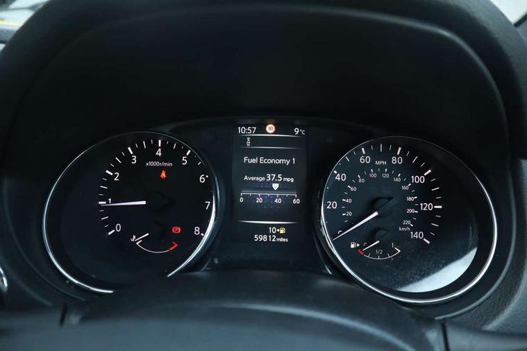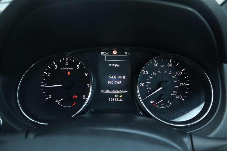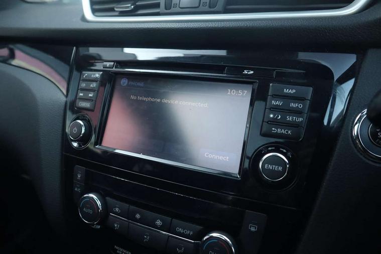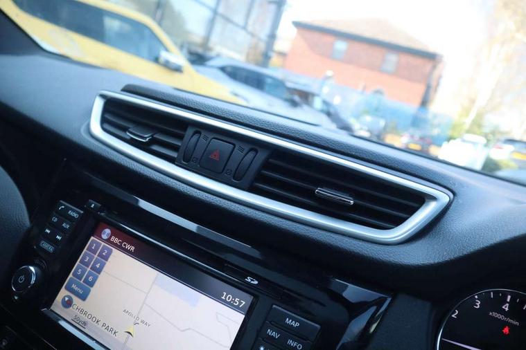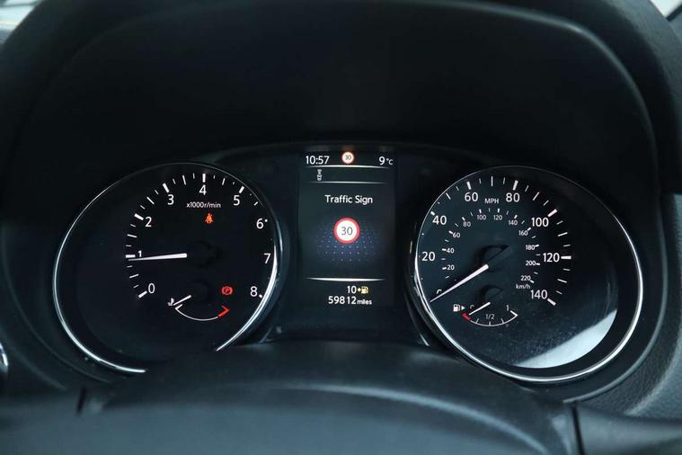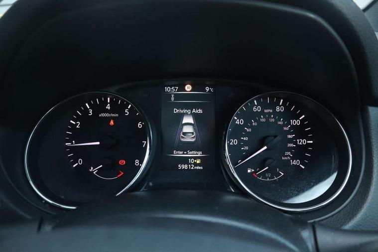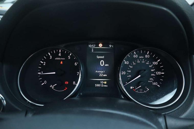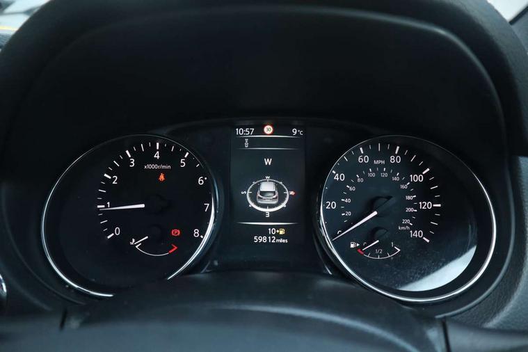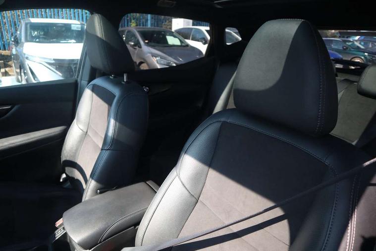 5" TFT driver information centre, 7" touch screen, Around View Monitor, Bluetooth phone integration system, Cruise control, Front and rear parking sensors, Lane departure warning system, Nissan connect sat nav system, Push button starter, Service interval indicator, Speed limiter, Speed sensitive power steering, Traffic sign recognition, Trip computer, 6 speakers, DAB radio/CD player, Steering wheel mounted audio controls, USB/aux input socket, 2 speed wipers+variable intermittent wipe, Automatic headlamp activation, Black honeycomb front grille, Body colour bumpers, Body colour door mirrors and handles, Chrome window surround, Electric folding and heated door mirrors, Electric front/rear windows, Front fog lights with chrome surrounds, High beam assist, Interior mirror with auto anti dazzle, LED daytime running lights, Panoramic sunroof with one touch shade, Rain sensor windscreen wipers, Rear privacy glass, Rear wiper, Satin silver roof rails, 12V socket, 60/40 split folding rear seat, Ambient interior lighting, Dark headlining, Driver's lumbar support, Driver/passenger front seatback pockets, Dual zone climate control, Electric adjust driver's seat, Footwell ambient lighting, Front armrest, Front cupholders x 2, Front headrests, Front seat belt pre-tensioners with load limiters, Heated front seats, Height adjustable passenger seat with lumbar support, Illuminated glovebox, Isofix child seat preparation, Leather gearknob, Leather steering wheel, Luggage area divider, Map reading lamp, Pollen filter, Rake/reach adjustable steering wheel, Rear armrest with 2 cupholders, Rear headrests, Sports leather/Alcantara upholstery, ABS, brake assist and EBD, Active Trace Control, Child locks on rear doors, Curtain airbags, Driver/front passenger airbag, Electronic parking brake, ESP + traction control, Forward emergency braking, Height adjustable front seatbelts, Hill start assist, Side airbags, Three 3 point rear seatbelts, Tyre pressure monitoring system, Warning triangle and first aid kit, Alarm, Immobiliser, Intelligent Key, Remote central locking, 18" Diamond cut alloy wheels, Tyre puncture repair kit,