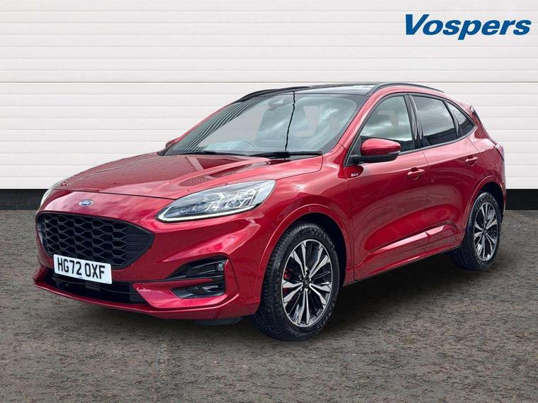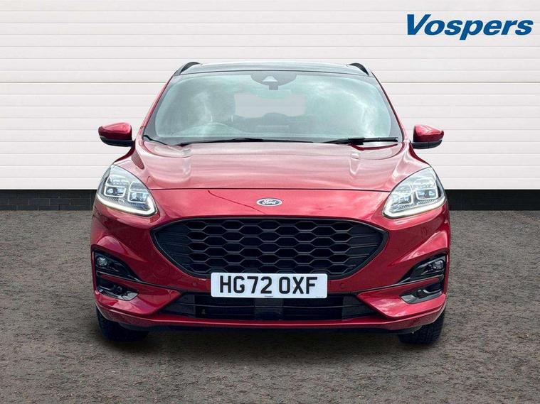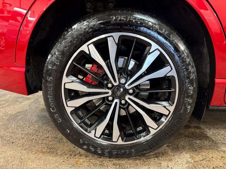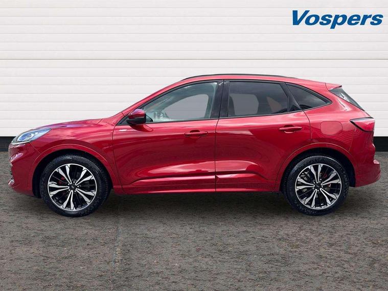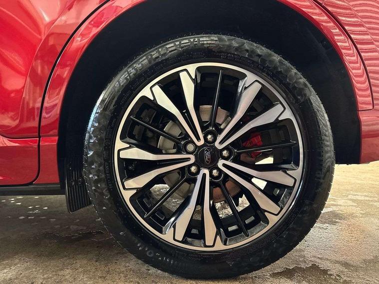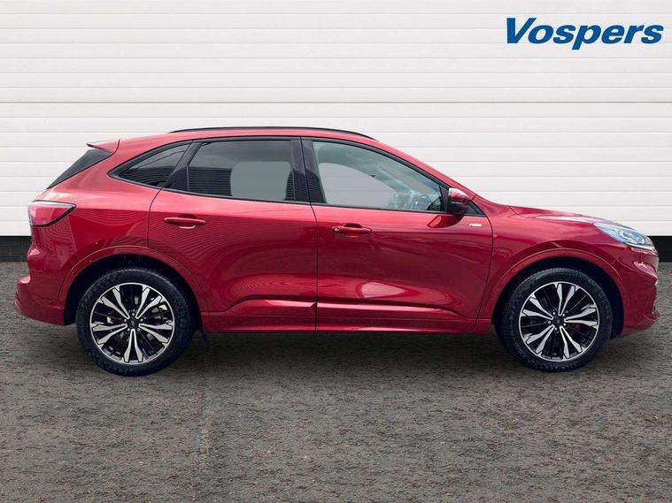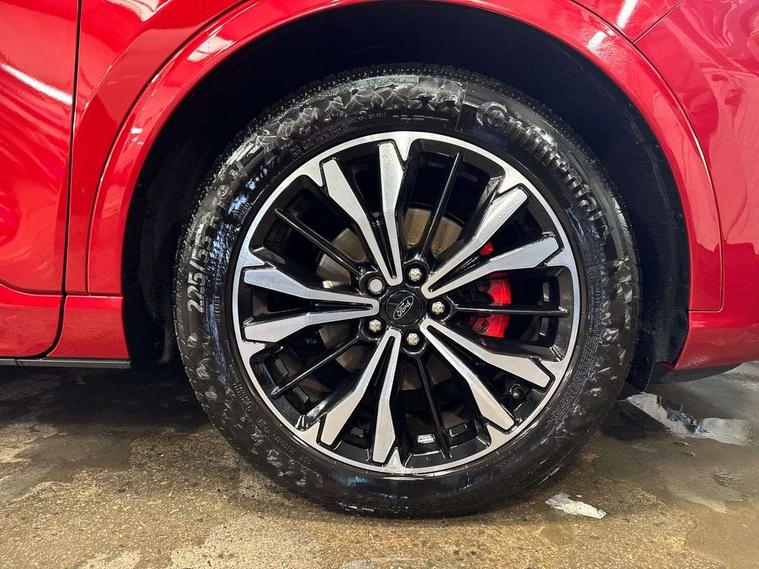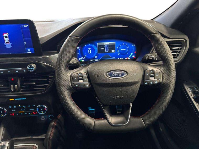 12.3" digital colour instrument cluster, Ford easy fuel, Ford SYNC 3 with 8" TFT LCD touchscreen, App Link, andriod auto/apple carPlay, emergency assistance and navigation with Ford pass connect, Front and rear parking sensors, Hands free power tailgate, Lane keeping aid with lane departure warning, Power assist steering, Rear view camera, Selectable drive modes, Service interval indicator, Sports suspension, Twist beam rear suspension, B&O premium audio system with 10 speakers and subwoofer, 2 USB ports, DAB radio/CD, Auto headlamps with high and low beam, Black roof rails, Day/night rear view mirror, Front LED fog lamps, Large rear spoiler, LED daytime running lights, LED rear lights, Power folding heated door mirrors with puddle lights, Power front/rear windows with global close, Power opening panoramic roof, Privacy glass, Quickclear heated windscreen, Rear side wing doors, Rear wiper, ST Line body styling kit with unique front and rear fascia and bumper, rear painted diffuser, front painted skid plates, dark mesh upper grille, ST Line front scuff plates, Third brake light, Twin exhausts, 10 way power adjustable drivers seat, 2nd row sliding seats with 60:40 split, 8 way manual passenger seat including lumbar support and height adjust, Alloy pedals, Centre console with electronic parking brake, Dark headlining and pillars, Electronic automatic temperature control (EATC), Flat bottomed leather steering wheel in sensico with red stitching, Front and rear head restraints, Heated passenger and driver seats, Heated rear seats, Heated steering wheel, Partial premium touch sensico leather upholstery with black cloth inserts and red stitching, Rear charging point, Single front passenger seat, Sports seats, ST Line front and rear floor mats, ST Line gear knob, 3x3 point rear seatbelts, Airbags - front driver/passenger, front and rear curtain, Drivers knee airbag, Electronic stability control (ESC) and ABS, Ford MyKey Gen 2 safety system, Manual child proof rear door locks, Post collision braking, Pre collision assist with autonomous emergency braking, Rear seat Occupancy alert, Red brake calipers, Tyre pressure monitoring system, Engine immobiliser, Keyless entry and Ford power start button (Keyless start), Locking wheel nuts, Remote powered central double locking doors, Thatcham category 1 alarm,