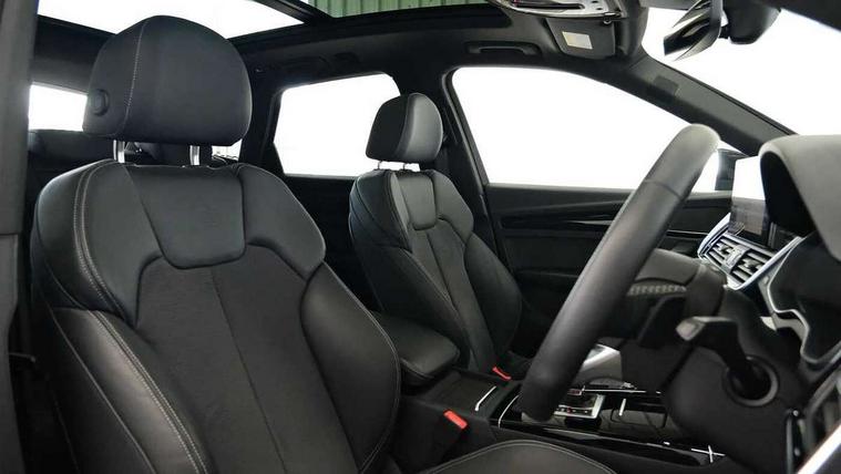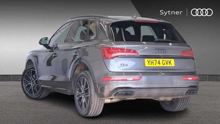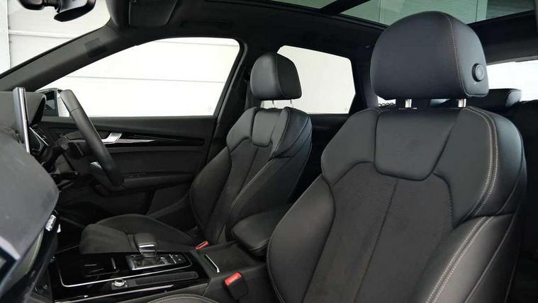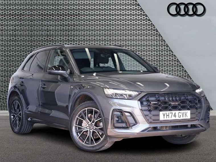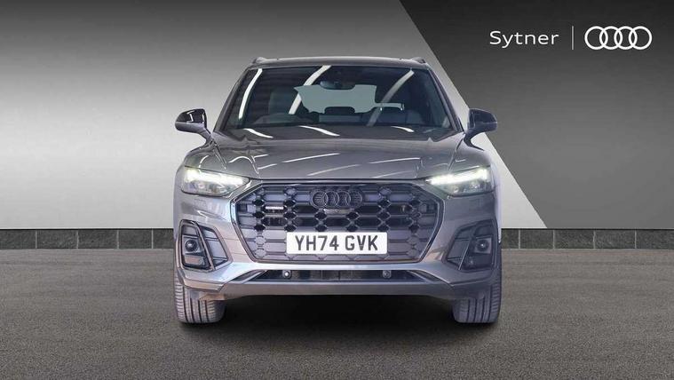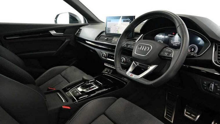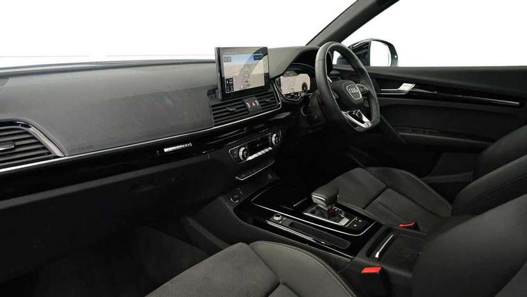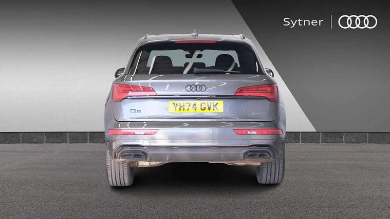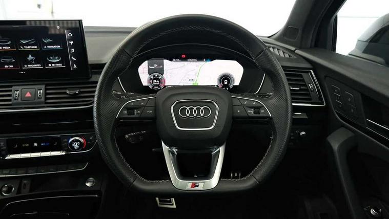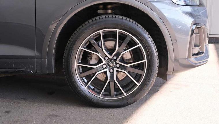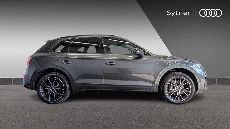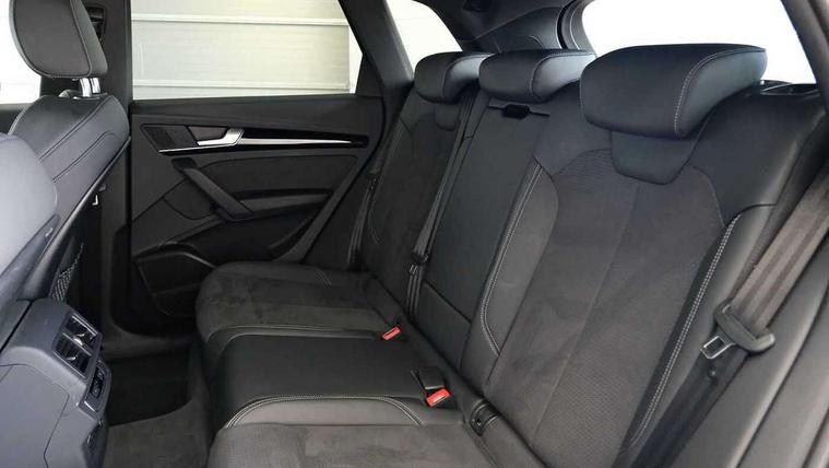 Acoustic front and rear parking sensor, Audi connect safety and service (e-call), Audi drive select, Audi virtual cockpit plus with 12.3" screen and three different layout designs, Audi wireless smartphone interface, Automatic start-stop system with coasting functionality and efficiency programme, Bluetooth interface, Camera based traffic sign recognition, Electro - mechanical power assisted steering, Lane departure warning, MMI navigation plus with 10.1" touch screen, Power tailgate, Reversing camera, Service interval indicator, Voice control system with Audi hotword activation "Hey Audi", Diesel particulate filter, Quattro on demand, S line sports suspension, 2 x USB charging port with aux input socket, 8 loudspeakers, DAB Digital radio, Acoustic windscreen, Auto dimming door mirrors, Auto dimming frameless rear view mirror, Automatic headlight adjustment, Automatic headlights and windscreen wipers, Black roof rails, Black styling with black rings, Body colour bumpers, Body colour rear diffuser with matt aluminium silver surrounds, Body colour underbody protection, Chrome plated exhaust trims, Daytime running lights, Door sills in Selenite silver, Electric adjustable/heated/folding door mirrors, Front air inlet surrounds in aluminium, Front and rear electric windows, Front radiator grille in honeycomb design, LED 3rd brake light, LED headlights and LED tail lights, Loading edge protection in stainless steel, Lower bumpers painted in contrast Manhattan grey, Rear chrome trim strip below lights, Rear privacy glass and rear side windows, Rear side wing doors, Rear wiper, Roof bars, S Line badges on the front wing panels, S Line front and rear bumpers, S Line rear spoiler, S Line side skirts, 3 rear headrests, Black cloth headlining, Comfort front centre armrest, Contrast stitching on seats, steering wheel and gear lever gaiter, Deluxe 3 zone electronic climate control, Front head restraints, Front sport seats with S embossed logo, Front/rear floor mats, Gear lever in black leather, Heated front seats, Height/reach adjustable steering column, Illuminated door sill trims with S logo, Luggage compartment cover, Manual seat adjustment with 4-way electric lumbar support, Single front passenger seat, Stainless steel pedals, Sunvisors with vanity mirrors, Top surface of the rear centre armrest in artificial leather, High gloss pack - Q5, LED interior light pack - Q5, 3 point seatbelts on all seats, 6 airbags - Driver, front passenger, curtain and side airbags, Attention and drowsiness assist, Electrically operated child locks on rear doors, Electromechanical parking brake, Electronic stabilisation control including ABS, ASR and EDL, First aid kit with warning triangle and vests, Front passenger airbag deactivation, Hill descent control, Hill hold assist, ISOFIX child seat mounting for front passenger seat and ISOFIX child seat mounting with Top Tether for outer rear seats, Multi collision brake assist, Pop-up bonnet for pedestrian protection, Pre sense city, Seatbelt monitoring, Tyre pressure warning, Anti theft alarm, Anti-theft wheel bolts, Remote central locking, Remote control key with SAFELOCK and keyless go, Air vents inserts and centre console in gloss black, Tool kit, Tyre repair kit,