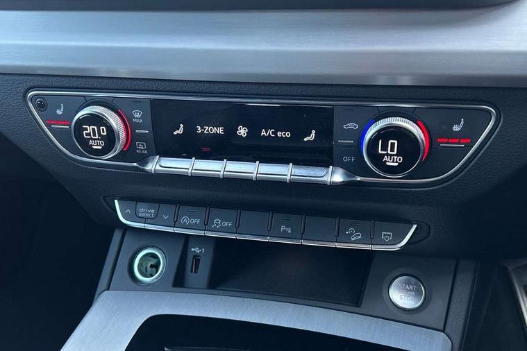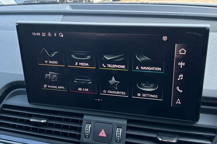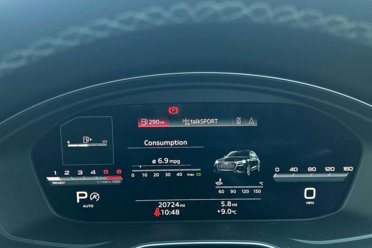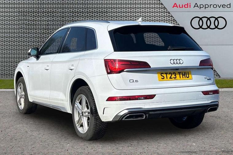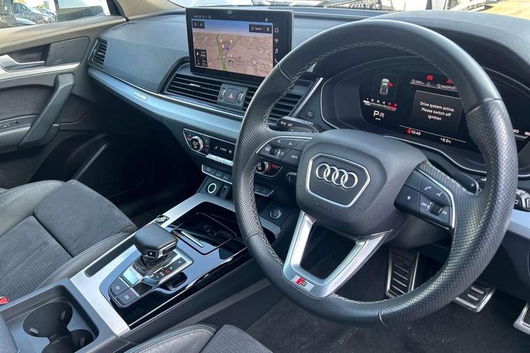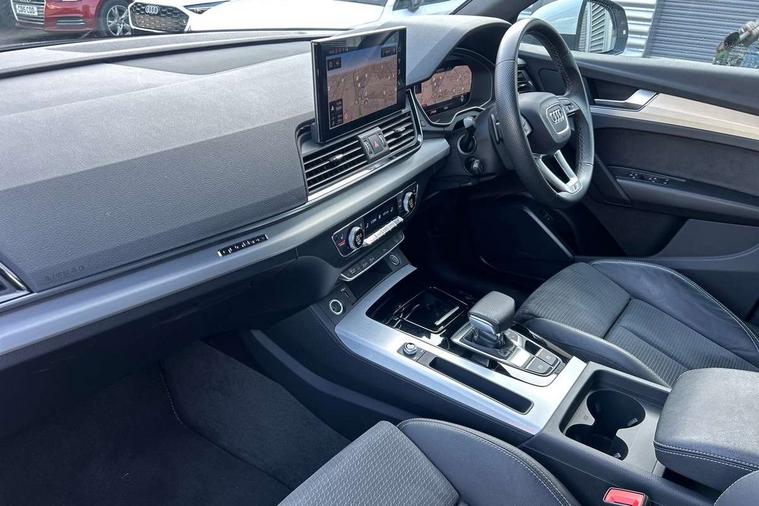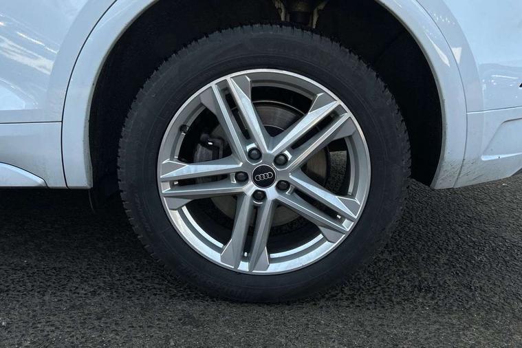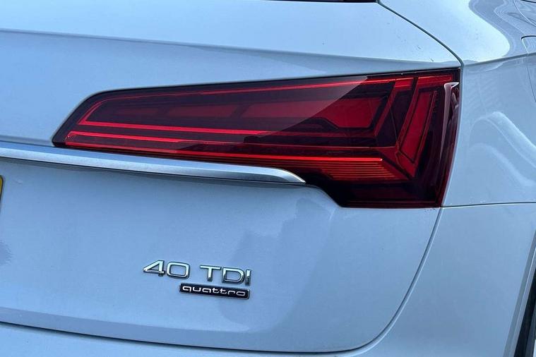 Acoustic front and rear parking sensor, Audi connect safety and service (e-call), Audi drive select, Audi virtual cockpit plus with 12.3" screen and three different layout designs, Audi wireless smartphone interface, Automatic start-stop system with coasting functionality and efficiency programme, Bluetooth interface, Camera based traffic sign recognition, Electro - mechanical power assisted steering, Lane departure warning, MMI navigation plus with 10.1" touch screen, Power tailgate, Reversing camera, Service interval indicator, Voice control system with Audi hotword activation "Hey Audi", Diesel particulate filter, Quattro on demand, S line sports suspension, 2 x USB charging port with aux input socket, 8 loudspeakers, DAB Digital radio, 3rd brake light, Acoustic windscreen, Aluminium roof rails, Auto dimming door mirrors, Auto dimming frameless rear view mirror, Automatic headlight adjustment, Automatic headlights and windscreen wipers, Body colour bumpers, Body colour door mirrors, Body colour rear diffuser with matt aluminium silver surrounds, Body colour underbody protection, Chrome plated exhaust trims, Daytime running lights, Door sills in Selenite silver, Electric adjustable/heated/folding door mirrors, Front air inlet surrounds in aluminium, Front and rear electric windows, Front radiator grille in honeycomb design, LED headlights and LED tail lights, Loading edge protection in stainless steel, Lower bumpers painted in contrast Manhattan grey, Rear chrome trim strip below lights, Rear privacy glass and rear side windows, Rear side wing doors, Rear wiper, Roof bars, S Line badges on the front wing panels, S Line front and rear bumpers, S Line rear spoiler, S Line side skirts, 3 rear headrests, 3 spoke leather multifunction steering wheel with S badging perforated leather grips, Black cloth headlining, Comfort front centre armrest, Contrast stitching on seats, steering wheel and gear lever gaiter, Deluxe 3 zone electronic climate control, Front head restraints, Front sport seats with S embossed logo, Front/rear floor mats, Gear lever in black leather, Heated front seats, Height/reach adjustable steering column, Illuminated door sill trims with S logo, Luggage compartment cover, Manual seat adjustment with 4-way electric lumbar support, Single front passenger seat, Stainless steel pedals, Sunvisors with vanity mirrors, High gloss pack - Q5, LED interior light pack - Q5, 3 point seatbelts on all seats, 6 airbags - Driver, front passenger, curtain and side airbags, Attention and drowsiness assist, Electrically operated child locks on rear doors, Electromechanical parking brake, Electronic stabilisation control including ABS, ASR and EDL, First aid kit with warning triangle and vests, Front passenger airbag deactivation, Hill descent control, Hill hold assist, ISOFIX child seat mounting for front passenger seat and ISOFIX child seat mounting with Top Tether for outer rear seats, Multi collision brake assist, Pop-up bonnet for pedestrian protection, Pre sense city, Seatbelt monitoring, Tyre pressure warning, Anti theft alarm, Anti-theft wheel bolts, Remote central locking, Remote control key with SAFELOCK and keyless go, Air vents inserts and centre console in gloss black, Matt brushed aluminium inlays, Tool kit, Tyre repair kit,