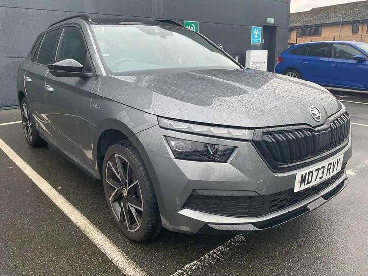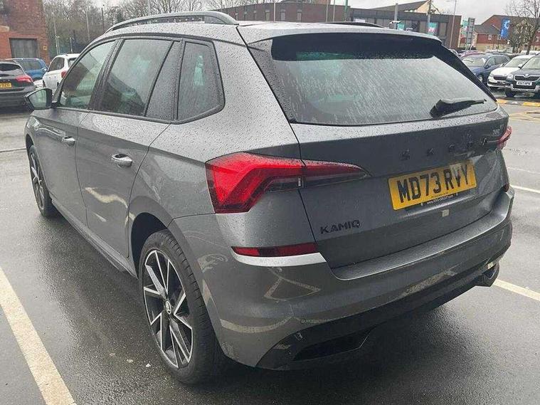 Amundsen satellite navigation with 9.2" glass colour touchscreen display, web radio, voice control and traffic sign recognition, Bluetooth system, E-call, Front assist system, Gesture control, PAS, Service indicator, Speed limiter, Wireless Smartlink for Apple CarPlay (wired for Android Auto), 8 Speakers, Auxiliary input socket, DAB Digital radio, Black door mirrors, Black radiator grille, Black rear diffuser, Body colour bumpers, Body colour door handles, Body colour roof spoiler, Boot lettering in black, Chrome grille surround, Dimming rear view mirror with black surround, Electrically adjustable and heated door mirrors, Fixed panoramic sunroof with black roof rails, Front and rear electric windows, Front sport bumper, Full LED headlights with adaptive front light system, cornering function, fog lights and dynamic indicators, Headlight range control, Heated rear window, High functionality rear led lights with dynamic indicators, KAMIQ Door sills, LED daytime running lights, LED third brake light, Light sensors, Monte carlo plaque, Privacy glass, Rain sensor, Rear fog lights, Rear side wing doors, Rear wiper, 12V Accessory socket in centre console, 3 seat bench in 2nd row, Aluminium pedals, Black ceiling for black/beige interior, Black roof lining, Chrome inner door handles, Cloth upholstery, Front head restraints, Glove compartment with illumination, Ice scraper, Isofix child seat fittings on outer rear seats, ISOFIX on front passenger seat, Leather gear lever, Manual lumbar support for front seats, Rake/reach adjustable steering wheel, Reading lights, Single front passenger seat, Sports seats, Sun visors with illumination on front passenger, Textile floor mats, Third rear headrest, Top tether for front passenger seat, Umbrella in driver's door, 3x3 point rear seatbelts, Airbags - driver and front passenger, ESP, Front passenger airbag deactivation switch, Front side airbags with curtain airbags, Hill hold control, Manual parking brake, Manual rear child locks, One tone horn, Rear disc brakes, Seatbelt reminder for driver an co-driver, Traction control, Tyre pressure monitor, Anti-theft alarm system with interior monitoring, backup horn, towing protection and remote central locking with SAFE system, Anti-theft wheel bolts, Electronic engine immobilizer, Chrome air vent surrounds, 18" Vega alloy wheels in black,