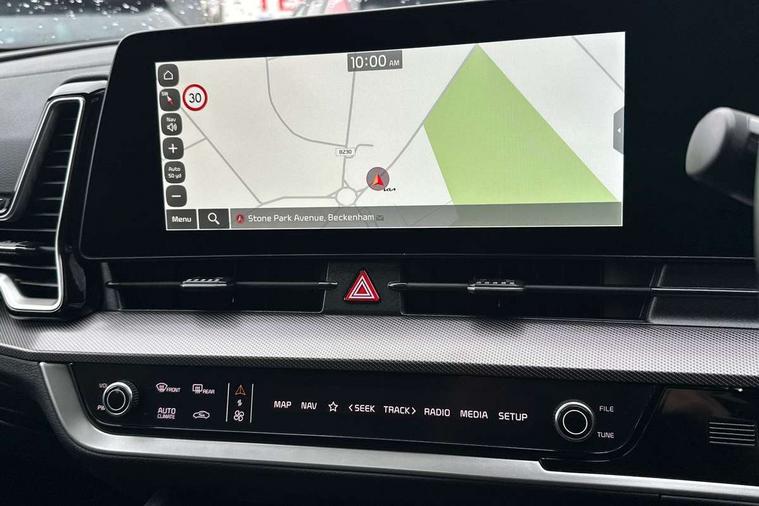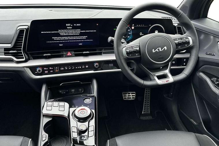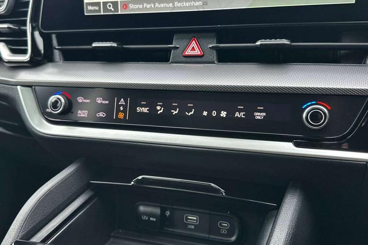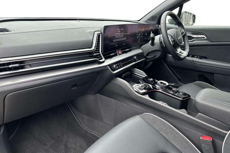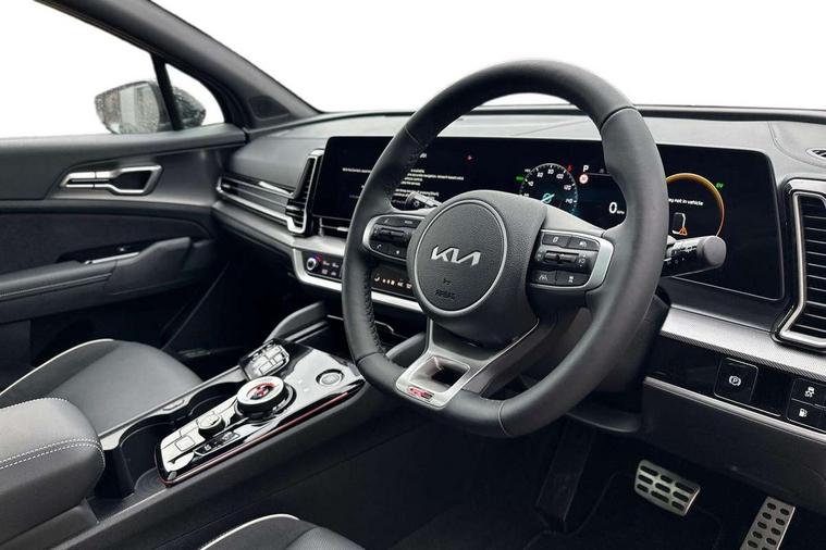 12.3" Driver display screen, 12.3" Touchscreen navigation system, 360 degree around view monitor, Apple car play/Android Auto, Blind spot collision avoidance assist, Blind spot view monitor, Drive mode selector, Driver attention warning, E-call, Emergency stop signalling system, Forward collision avoidance assist (FCA) - city/pedestrian/cyclist/junction covering, Front and rear parking sensors, Highway Driving Assist (HDA), Intelligent speed limit assist, Kia Connect (UVO), Lane Following Assist (LFA), Lane keep assist, Low washer fluid warning, Motor driven power steering, Parking collision avoidance assist (PCA), Rear cross traffic collision avoidance assist (RCCA), Remote smart parking assist, Reversing camera system integrated into centre fascia screen, Safe exit warning (SEW), Smart cruise control with stop and go functionality, Smart power tailgate, Speed limiter, Trip computer, Windscreen washer level indicator, Wireless Smartphone charger, Terrain mode select (Mud, Snow, Sand), 1x USB-C port in front, 2 rear USB-C ports, Bluetooth audio streaming, DAB Radio with MP3, Harman Kardon premium sound system with 8 speakers, Steering wheel mounted audio controls, USB C type charging ports on centre console, USB port for connection of a media device, All round electric windows with drivers and front passenger auto up/down function, Auto dimming rear view mirror, Automatic headlight control system, Automatic window defogger, Black and body coloured bumpers, Body colour exterior door handles, Body colour radiator upper garnish and door garnish, Dual LED headlights with adaptive driving beam, Electrically adjustable/heated/folding door mirrors with LED indicators, Front and rear chrome skid plates, Gloss black door mirrors, Gloss black radiator grille, Gloss black side sill and wheel arch body mouldings, Glossy black roof rack, GT-Line exterior styling, Heated rear window, High beam assist, Interior electrochromic mirror, LED daytime running lights, LED front fog lamps, LED High mounted stop light, LED rear combination lamp, Panoramic sunroof with tilting and sliding function with electric blind, Rain sensing wipers with aero blades, Rear fog lamp, Rear privacy glass, Rear roof spoiler, Rear side wing doors, Rear wiper, Satin finished beltline, Silver window surround, Tinted rear glass, Trailer stability assist, 12V power socket in front centre fascia and luggage compartment, 3 seat bench in 2nd row, 3 x passenger assist grips, 40/20/40 split folding rear seat, All-round height adjustable headrests, Alloy pedals, Automatic air conditioning, Black headlining, Centre console storage box, Cupholders in rear armrest, Customisable ambient lighting, Door courtesy lamps, Drink holder at centre armrest, Driver and front passenger side sunvisors with illuminated vanity mirrors, Drivers seat power lumbar support, Electric adjustable driver seat with memory function, Electric adjustable front passenger seat, Front and rear door storage, Front seat and rear pockets, Gear shift indicator, Glovebox illumination, GT-Line Interior Styling, Heated front and outer rear seats, Heated steering wheel, ISOFIX Child seat top tethers and anchor fixings outer rear seats, Leather steering wheel, LED front cabin light, LED interior personal lamp, LED lighting in overhead console, LED rear reading lights, Luggage area LED light, Luggage area load cover, Luggage area parcel shelf, Luggage board, Luggage compartment under floor storage, Luggage net with hooks, Manual adjust steering wheel, Metal paint interior door handles, Paddle shift controls, Rear air conditioning, Rear cabin light, Rear coat hooks, Single front passenger seat, Suede leather upholstery, Ventilated front seats, Ventilation ducts to rear compartment, Active front headrests, All round 3-point seatbelts, Anti-lock braking system (ABS), Dual front side airbags, Dual horn, Dynamic brake control, Electronic parking brake with auto hold function, Electronic stability control with downhill brake control, Front passenger airbag cut-off switch, Front seatbelt pretensioners + load limiters, Height adjustable front seatbelts, Hill start assist control (HAC), Impact sensing auto door unlocking, Multi collision brake assist, Rear airbags, Rear door child safety locks, Rear seat alert system, Seatbelt reminder warning, Traction control, Twin curtain airbags, Twin front airbags, Tyre pressure monitoring system, Vehicle stability management, Customisable automatic door locking, Customisable automatic door unlocking, Door deadlocks, Engine Start/Stop Button with Smart Entry System, Locking wheel nuts, Smart key with motion sensor, Speed sensitive auto door locking, Thatcham category 2 security alarm and immobiliser, Visible vehicle identification number, Aluminium pattern finish centre fascia and door garnish, 19" GT-Line alloy wheels, Tyre mobility kit,