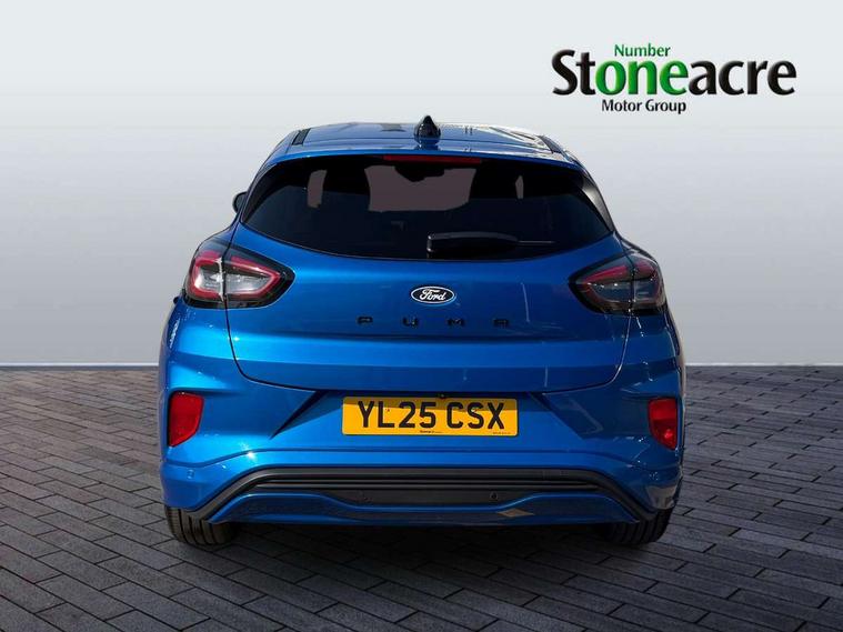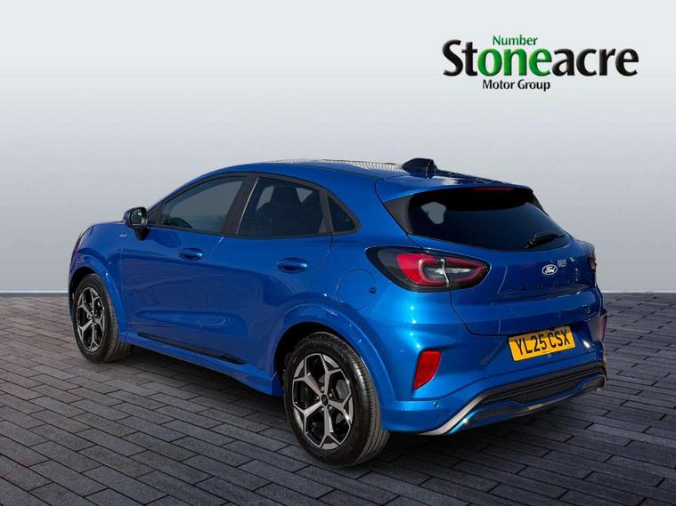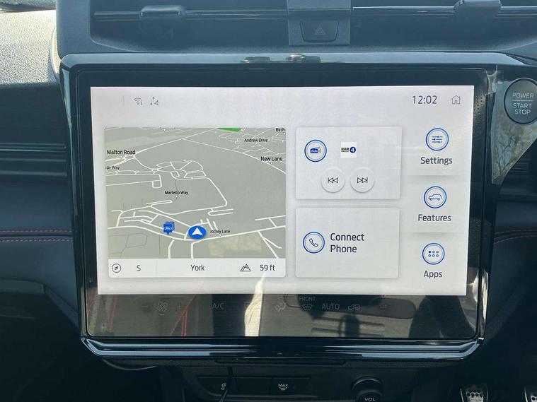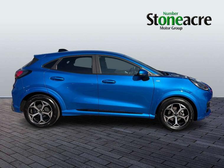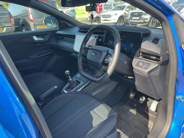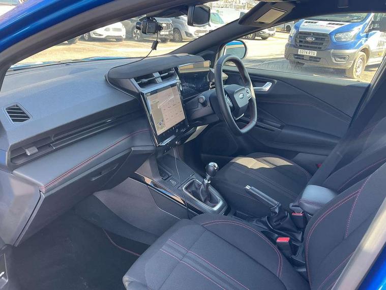 Driver impairment monitor, Emergency call service, Ford easy fuel, Full digital 12.8" instrument cluster, Lane keeping aid with lane departure warning, Power assist steering, Selectable drive modes(Normal, Eco, Sport, Slippery and Trail), Speed sign recognition, Sport suspension, 12" landscape touchscreen display with wireless apple car play and android auto 6 speaker audio system, Ford pass connect and emergency assistance, Ford SYNC4 with connected navigation, Automatic headlights with rain sensing wipers and auto high beam, Front fog lamps, LED daytime running lights, LED rear lamps, LED third brake light, Power foldable heated door mirrors with puddle lamps and puma logo protection, Quickclear heated windscreen, Rear privacy glass, Rear side wing doors, Rear wiper, ST-Line body styling kit with unique grille, 3 seat bench in 2nd row, Centre console with armrest and stowage, Electronic automatic temperature control (EATC), Ford megabox extended bootspace, Front and rear head restraints, Front floor mats, Manual 4 way driver seat adjust with lumbar adjustment, Single front passenger seat, ST- Line cloth trim with red stitching, 3 rear seatbelts, Child safety lock, Electronic stability control (ESC) and hill start assist, Pre-collision assist with autonomous emergency braking, pedestrian/cyclist detection & post-collision braking, Tyre pressure monitoring system (TPMS), Thatcham alarm,