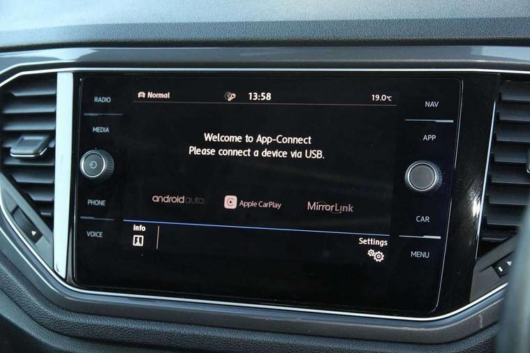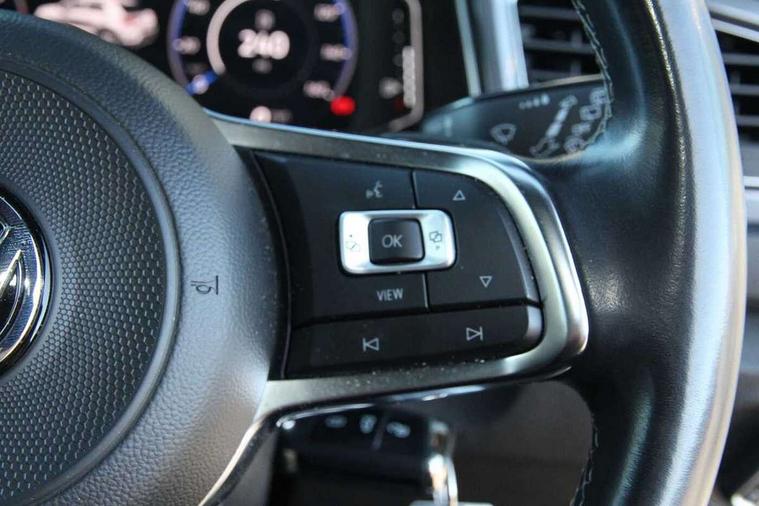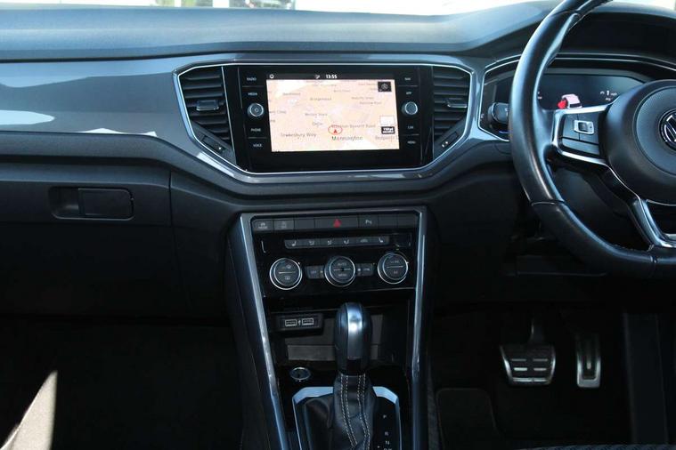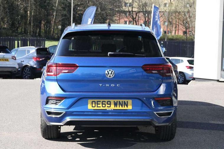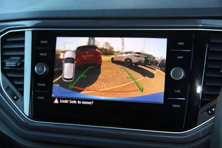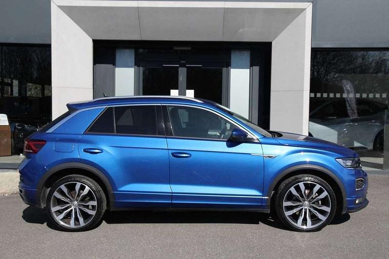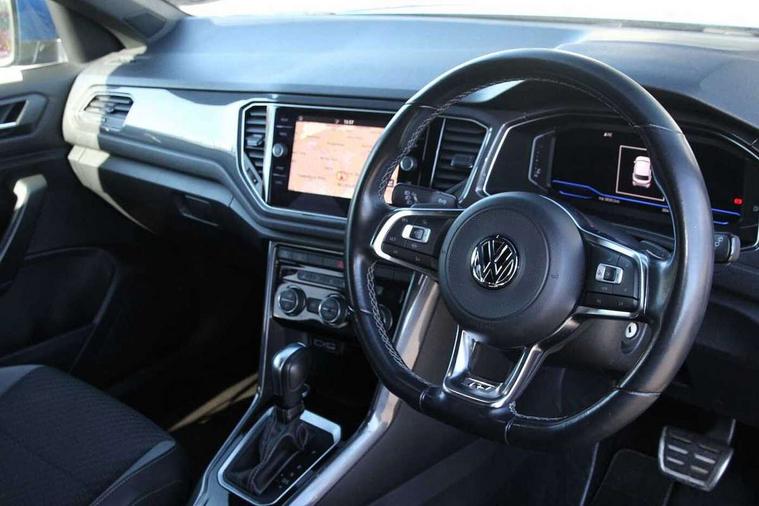'Lights On' Reminder warning buzzer, 2 USB connection charging sockets, Active Info Display, 10.3" high resolution TFT dash display screen with customised information, Adaptive cruise control with front assist, radar sensor controlled distance monitoring, city emergency braking, App-Connect, Automatic start/stop system, Bluetooth telephone and audio connection for compatible devices, Car information display, Car-Net Security and Service, Discover navigation, 8" touch screen navigation/infotainment system with Car-Net, European map, CD/radio, 2D/3D map and speed limiter, Driver alert system with audible and visual fatigue detection system, Driver tips and journey analysis, Driving profile selection - Eco, normal, sport or individual modes with Individual mode allows for steering, drive and air conditioning settings, Lane assist, Multifunction computer with visual gear change recommendation for fuel consumption, Service interval indicator, Think blue trainer driver tips and journey analysis, Voice activation, Warning sound and light for doors and tailgate open, Warning sound and light for front seatbelts unfastened, Battery regeneration during braking, DAB Digital radio, Dynamic navigation based on TMC+, Multi device interface (MDI) with USB connection, Music playback - MP3, WMA and AAC files, Premium USB cable in choice of either Apple or Android smartphone compatibility, SD card slot, Simultaneous pairing of 2 compatible mobile devices, SMS functionality - read, compose and send SMS messages using touch-screen display, Three route options - Fast, Short, Eco, Title and cover art display, Auto dimming interior rear view mirror, Black grained lower door protectors, Body colour door handles, Body colour rear roof spoiler, Chrome effect left and right trapezoid exhaust tailpipe fascia surround, Chrome trim on upper and lower radiator grille, Dusk sensor, Electrically foldable, adjustable and heated door mirrors with puddle lights and reverse activated kerb-view adjustment on passenger's door mirror, Front and rear electric windows, Front fog lights with static cornering function, Front windscreen wiper with intermittent wipe and 4 position delay, Fully galvanised body, Heated rear window, High level 3rd brake light, LED darkened rear light clusters, LED rear number plate lights, Manual coming/automatic leaving home lighting function, Rain sensor, Rear tinted glass from B-pillar backwards approx 65% tinted, Rear wash/wipe with intermittent wipe setting, 12V socket in centre console storage area, 2 Front and rear reading lights incorporating LED technology, 3 rear head restraints, 4 load lashing points in luggage compartment, Aluminium pedals, Ambient lighting in front footwell and light strips below trim in front doors, Black roof lining and sun visors, Branded points of interest, Carbon flag cloth upholstery, Climate control - 2 zone electronic air conditioning with automatic air recirculation and allergy filter, Drawer under drivers seat, Front and rear carpet mats with contrast stitching, Front centre armrest with storage compartment, longitudinal and height adjustable and two rear air vents, Front cupholders x 2, Front footwell illumination, Front seat back storage pockets, Front sports seats with R-Line logo on seat backrest, Glovebox, Height adjustable front seats, Height/reach adjust steering wheel, Illuminated vanity mirrors, Instrument lighting, white adjustable panel illumination, Interior light delay, Isofix easy fit child seat preparation for 2 outer rear seats, Load through provision with single cup holder when folded down, Luggage compartment cover, removable, Luggage compartment lighting, R Line badge, Split folding rear seat backrests with centre armrest, Storage compartment in left and right luggage area, Storage compartment in rear doors, Storage compartments in driver and front passenger doors, Three spoke multifunction leather trimmed steering wheel including gear knob and paddle shift with aluminium inserts contrast stitch and R Line logo, Unique R Line door sill protectors, R line styling pack - T-Roc, Winter pack - T-Roc, 3 rear three point seatbelts, ABS, Curtain airbags, Driver and front passenger safety-optimised head restraints, Drivers and front passengers airbags with passengers deactivation switch, Electronic parking brake with auto hold, Electronic stability control (ESC) includes ASR, EDL, EDTC and trailer stabilisation function, Front seat side impact airbags, Predictive pedestrian protection, Rigid safety cell with front and rear crumple zones, Three point height adjust front seatbelts + pretensioners, Tyre pressure loss indicator, Ventilated front and rear disc brakes, Volkswagen roadside assistance, Alarm with interior protection and deactivation via infotainment system, Electronic engine immobiliser, Remote central locking with 2 remote folding keys, Shadow steel decorative inserts in dash and door panel, 19" Suzuka alloy wheels with low rolling resistance tyres and anti wheel bolts, Space and weight saver spare wheel,