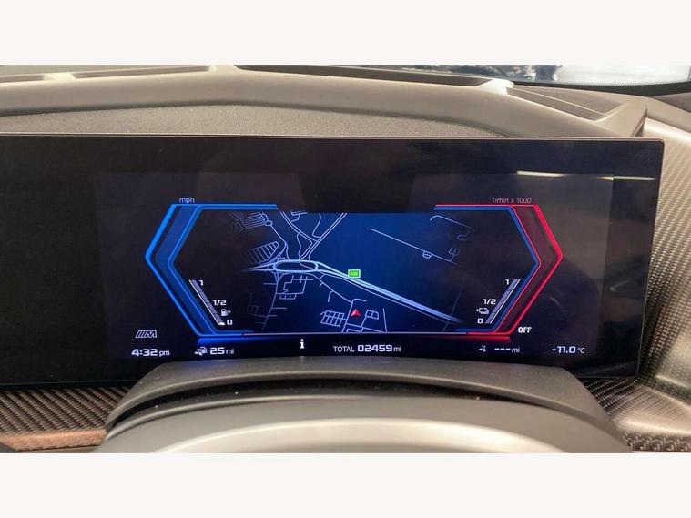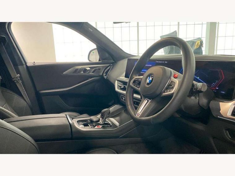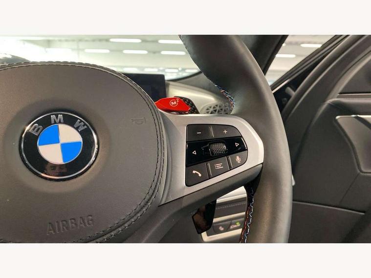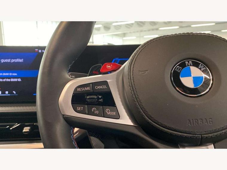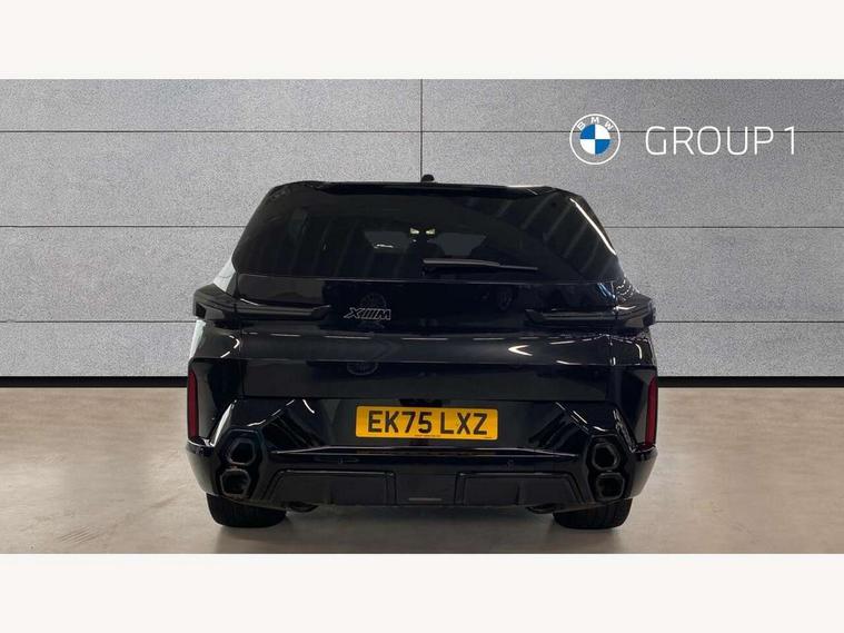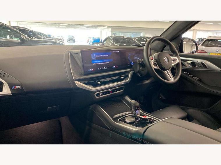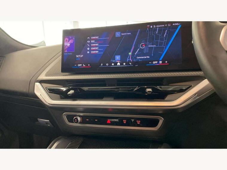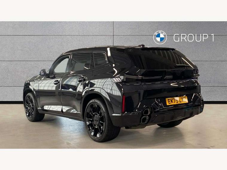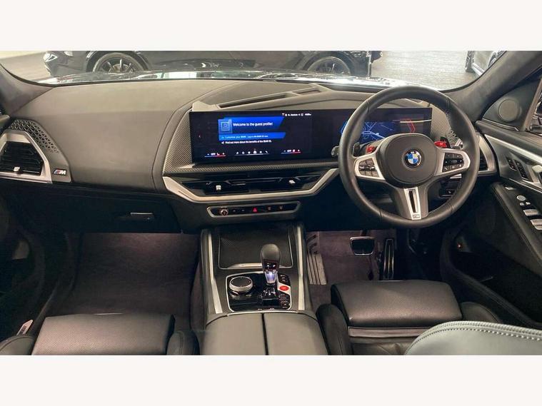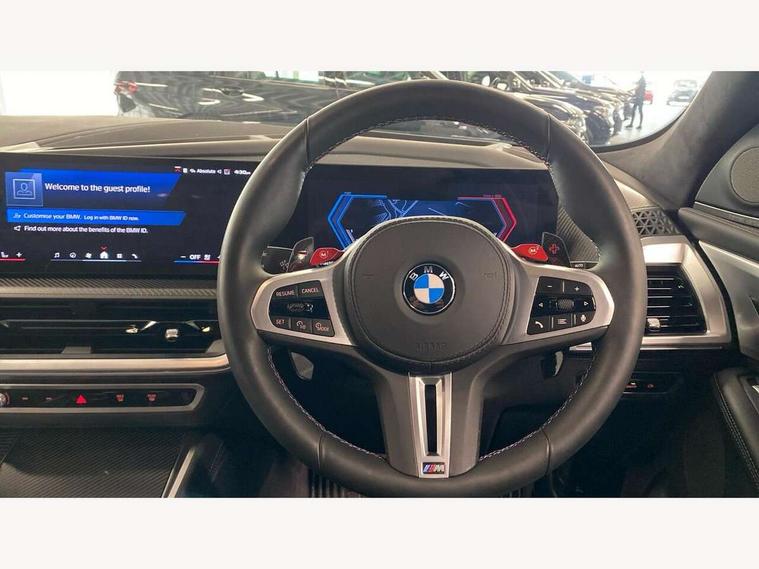 Attentiveness assist, Automatic tailgate operation, BMW legal emergency call, BMW Live Cockpit Pro with headup display, Navi, voice control, 12.3" instrument cluster, 14.9" control display, 3rd party app, bluetooth, Wi-Fi, BMW Teleservices, Brake pad wear indicator, Concealed underneath bonnet, Condition based service, Connected eDrive Services, Front/rear Parking distance control, Integrated owners handbook, Parking assistant plus with 360 degree surround view camera, remote 3D view, driver recorder and remote theft recorder, PAS, Speed dependent regulation with variable steering gear ratio, Stop/start button, 11 kW Onboard charger, AC Fast charging preparation (Maximum charging power 11kW), AC/DC charging, Adaptive M suspension professional, Electric drive unit, Fast charging cable professional mode 3 for public charging, High voltage battery, M xDrive system, Sport exhaust system, Steptronic transmission with gearshift paddles on steering wheel, BMW iconic sound electric, DAB Digital radio, Personal eSim, Adaptive LED Headlights with Low beam and high beam headlight function, Auto dimming driver's door mirror, Automatic cornering lights, BMW kidney Iconic Glow, Charging flap, Door locking - after driving off to secure vehicle, Dynamic brake lights, Electric windows - front and rear, with open/close fingertip control and trap release, Exterior centre air inlets in front bumper in black high gloss, Exterior mirror housings in black, Exterior mirrors with automatic parking function, Frameless interior mirror, Green tinted windows, Headlight range control, Heated windscreen washer jets, High beam assistant, High gloss black rear diffuser, LED daytime running lights, LED side lights, LED third brake light in rear spoiler, Light staging (welcome and goodbye), M specific electrically adjustable/foldable/heated exterior mirrors with integrated direction indicators, Prism optics door handle insert in black high gloss, Radiator grille struts in black high gloss, Rain sensor with automatic windscreen wiper and headlight activation, Rear reflector (left and right) integrated into bumper, Rear side wing doors, Rear window single layer safety glass, Rear wiper, Roof trim strips in black high gloss, Side window graphic including black band in black with XM badge, Sun protection glazing, Tailgate without BMW logo, Trailer stabilisation logic, Two lasered BMW logos in upper left and right of rear window, Two part led rear light with brake light and turn indicator in both parts, Two part radiator grille frame in satin alunimium, Two rear design trim element in black, Wheel well cover and cladding in black high gloss, Windscreen and side window laminated safety glass, XM badge in left side radiator grille, 12V power socket in front centre console, 12V power socket in luggage compartment on right, 12V power socket in rear centre console, 15 preconfigured selectable colours with contour and mood lighting in Road mode, 1x USB Type A port in area of cupholder (charging with 1.5 A and data transfer), 1x USB Type C port for charging in armrest storage compartment, 2 cup holders in front, 2 x USB Type C ports for charging in rear centre console, 3 bench rear seats in 2nd row, 3 rear headrests, 3 spoke M leather steering wheel, 4 lashing eyes in luggage compartment, 40/20/40 split folding rear seats with backrest, Adjustable front head restraints, Ambient centre stack lighting, Ambient door panel lighting and unlocking, Ambient door pocket lighting, Ambient instrument panel lighting, Anthracite Velour front and rear floormats, Armrest - front and rear integrated door trim, centre console includes storage compartment, rear centre includes 2 cupholders, Backrest rear panel with folding pockets, BMW ID, BMW XM exclusive charging cable pocket in luggage compartment, Brushed/polished aluminium inserts in entry sills, Child seat ISOFIX attachment for the outer seats incl upper retaining strap, Contour instrument panel lighting, front centre console, door panel front and rear, Courtesy lights in tailgate, Door pockets with bottle holder, Driver and front passenger alcantara sun visors with illuminated vanity mirror and ticket holder, Driver/front passenger reading lights, Dynamic function of contour lighting, Four zone automatic air conditioning, Front and rear ambient footwell lighting, Front and rear door exit lighting (left / right), Front and rear Illuminated M logo in entry sills, Glove compartment lighting, Grab handle in front and rear outer seats integrated in roof lining at rear with coat hooks, Heated and cooled cupholders, Illuminated armrest handle, Illuminated M logo on headrestraints, LED ambient lighting for centre console, Lockable glove compartment, Luggage compartment lighting strips, M electric front sport seats includes electrical seat adjustment with memory, lumbar support and M embossing on headrests, Multifunction steering wheel, Nano filter, Non foldable rear headrests, Outer rear headrests height adjustable, Rear centre head restraint not adjustable, Rear reading lights, Sculptural headliner in 3D prism structure Alcantara with ambient lighting, Side marker reflector in lamella look integrated into tail light, Single front passenger seat, Soft close function for doors, Stationary cooling, Storage tray and compartment with lid in centre console, Two outer side adjustable head restraints in 2nd row, Two part parcel shelf in luggage compartment, Wireless charging tray, Comfort pack - XM, Connected package professional - XM, M Aerodynamic package - XM, Travel and comfort system pack - XM, 3 point seatbelts on all 3 rear seats, Acoustic protection for pedestrians, Active protection, Airbag - Front driver and passenger, side airbags and Head airbags, Airbags activation controlled with intensity and scope, Anti-lock braking system (ABS), Comfort cushion seats for outer seats in 2nd row, Cornering brake control (CBC), Crash sensor activating central locking release, hazard warning lights, fuel cut off