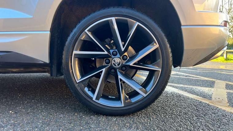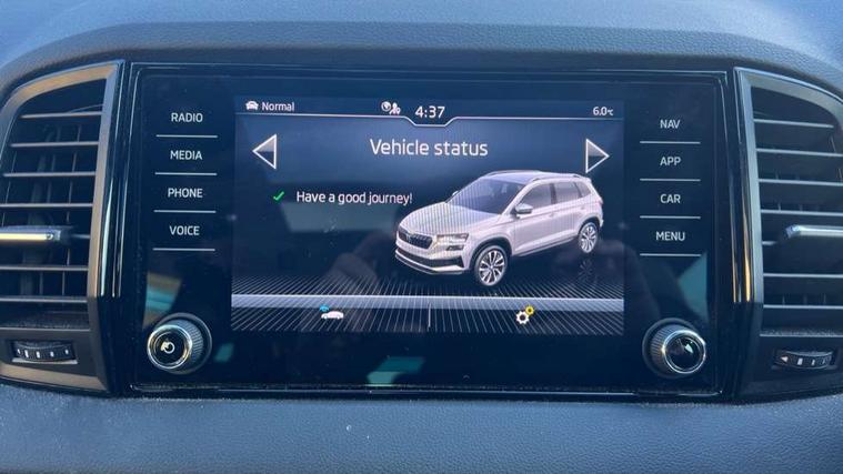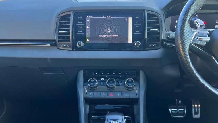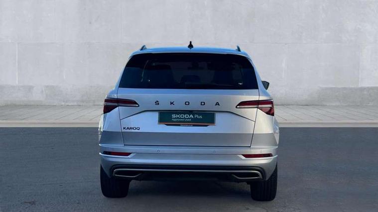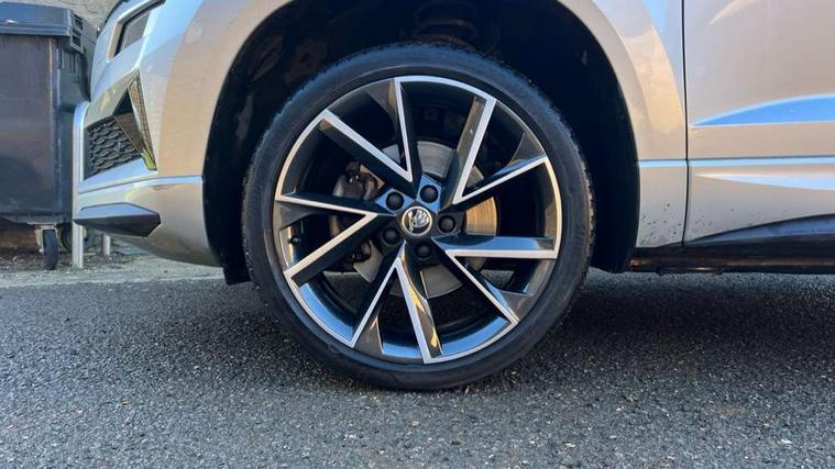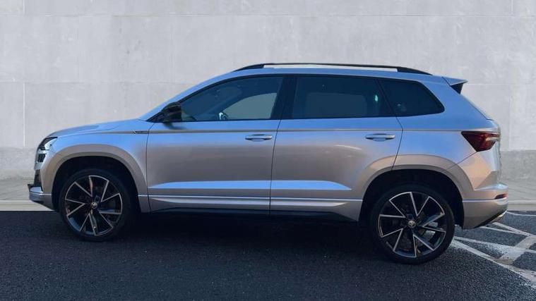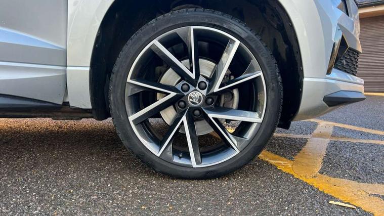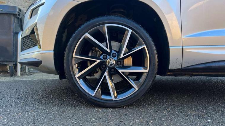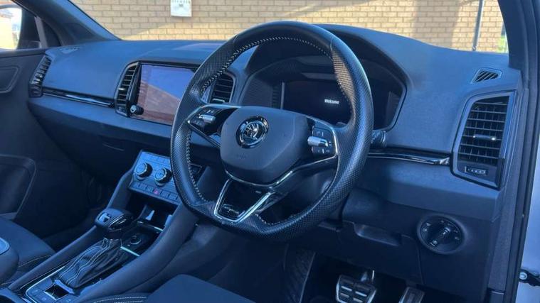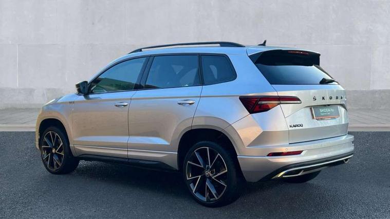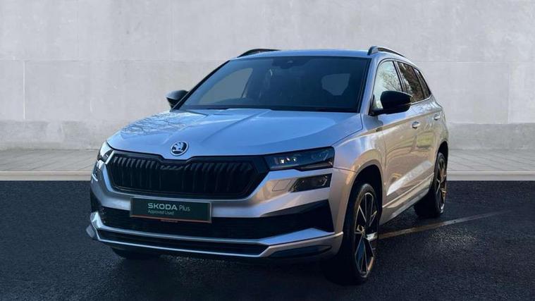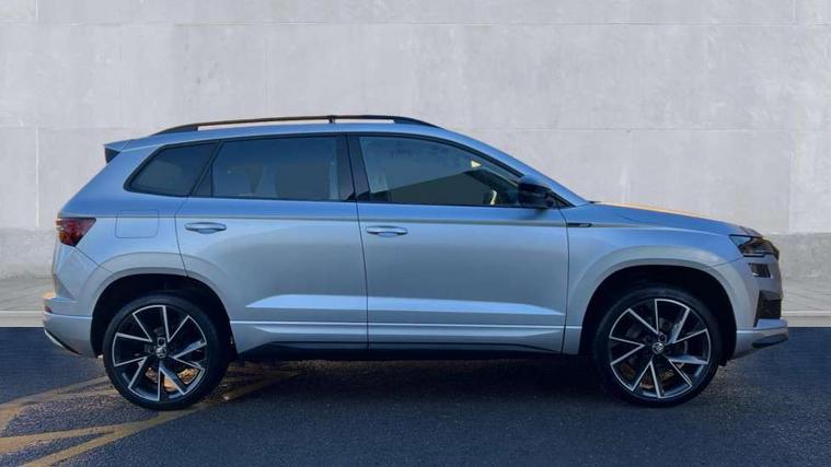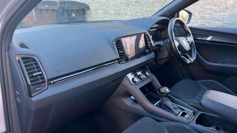 8" Digital display, Care connect, Driver fatigue sensor, Emergency services call system, Outside temperature gauge, Service interval indicator, SmartLink wireless for Apple and wired for Android, Start/stop system with regenerative braking, USB C Port x 2 in front centre console, Virtual cockpit, Virtual pedal with electrically operated boot door, 8 Speakers, DAB radio with Bluetooth, USB connection, Wireless charging without wireless aerial connection, Acoustic glass, Aero front windscreen wipers with intermittent function, Auto dimming rear view mirror with light and rain sensors, Black door mirrors, Black electric window control buttons, Black radiator grille, Black roof rails, Body colour door handles, Dynamic headlight range control with cornering light function, Electric front and rear windows with child proof lock, Front door steps with SportLine logo, Heated rear windscreen, LED daytime running lights, LED rear lights with high functionality welcome effect and dynamic indicators, Light assistant (coming/leaving home/tunnel light), Panoramic sliding sunroof, Plastic scuff plates, Privacy glass, Protective door side sills in body colour, Rear diffuser, Rear side wing doors, Rear spoiler, Rear window wiper with washer system and intermittent control, Safety reflectors on front doors, Skoda lettering on tailgate in black, Sportline badge on front fender, Sportline decorative inserts with badging, Sports front and rear bumpers, 1.5 litre bottle holders in driver and front passenger door panels, 12V socket in boot, 12v socket in front centre armrest with storage compartment and rear air vents, 3 rear height adjustable headrests, 3 seat bench in 2nd row, 3 spoke leather sports multifunction steering wheel and silver stitching with gear shift paddles, 4 foldable roof handles with rear coat hooks, Black floor carpet, Black roof headlining, Chrome inner door handles, Double sided boot floor, Foldable hooks in the boot, Front head restraints, Height adjustable front three point seats belts with tensioners, Height/reach adjust steering wheel, Ice scraper, Illuminated glovebox, Illuminated luggage compartment, Isofix child seat preparation outer rear, Manual lumbar support for front seats, Pen holder, Pollen filter, Rear boot cover, Rear reading lights, Rear seats fixed folding and divided 60:40, Rubbish bin door, Safety vest holder, Single front passenger seat, Storage box in upper central dashboard closed, Sunvisors with illuminated vanity mirrors, Textile floor mats, Ticket holder, Titan black interior ceiling, Welcome animation with sportline logo, Boot pack - Karoq, Light Pack - Karoq, Parking pack - Karoq, Automatic door unlocking in case of crash, Automatic fuel cut off in case of crash, Child locks on rear doors, Driver airbag, Electronic parking brake with auto hold function, Emergency rear braking signal, ESC including ABS, MSR, ASR, EDS, HBA, DSR, RBS, MKB and traction control, Front side airbags, Hill hold control, Knee airbags, Passenger airbag with switch-off function, Pedestrian monitor, Seatbelt reminder signalisation and pretensioner for all seats, Three point seatbelts rear, Two tone horn, Tyre pressure display, Tyre pressure monitor, Alarm with interior monitoring, back up horn and tilt sensor with safe function, Electronic engine immobiliser, Keyless entry and start/stop, Remote central locking with 2 remote folding keys, Black air vent surround, Black centre console, Satin black dashboard, Satin black door trim, 19" Vega black polished alloy wheels, Anti-theft wheel bolts protection, Matt black aero hub caps, Storage on wheel cover, Tool kit,