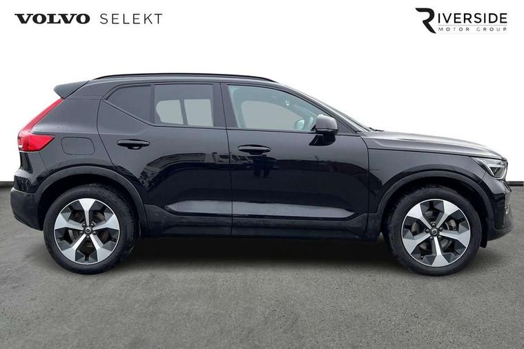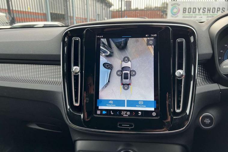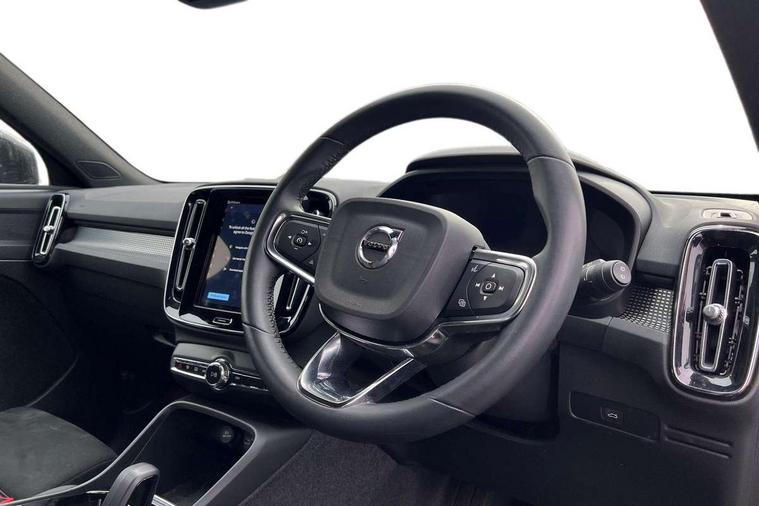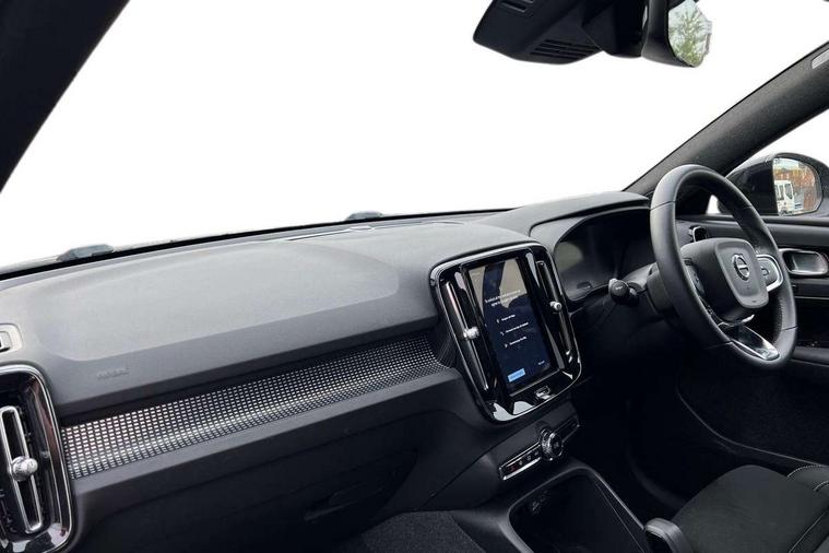 12.3" Progressive Driver Display, 360 degree surround view parking camera with side proximity sensors, 9" centre console portrait touch screen, Adjustable steering wheel force, Bluetooth hands free telephone kit, Cruise control, E-call, Front park assist, Google automatic services - Nav with google maps, apple carplay/android auto, voice recognition with google assistant, Hands free power tailgate, Lane keep assist with driver alert control, Oncoming Lane Mitigation, Rear park assist, Speed limiter, Speed sensitive steering, Wireless/Inductive Mobile Phone Charging, Dynamic chassis, DAB Digital radio, High performance sound, 8 speakers/250W, front USB and 2 rear type C USB, Steering wheel mounted remote controls, Adaptive brake lights with high level LED brake lights, Auto dimming feature for exterior door mirrors, Auto dimming interior mirror, Automatic headlamp levelling, Automatic LED Headlights + Active high beam incorporating daytime running lights, Front aluminium tread plates, Front and rear electric windows, High gloss black front and rear skid plate, High gloss black mesh front grille with high gloss black surround, High gloss black window trim, Home safe and approach lighting, Integrated roof rails in high gloss black, LED front fog lights, Puddle lights, Rain sensor with automatic windscreen wiper activation, Rear side wing doors, Rear wiper, Roof antenna, Roof spoiler, Visible VIN plate, 12V socket in front tunnel console and luggage compartment, 2-Zone electronic climate control with CleanZone air quality system and pollen filter, 3 seat bench in 2nd row, 3 Spoke tailored steering wheel with chrome trim, 60/40 versatile split folding rear seat, A-pillar parking ticket holder, Centre console cupholders and storage, Flexible load floor and grocery bag holder, Floor mats, Front door pocket, front cupholder, ambient front door, rear reading, rear courtesy, instrument panel and tailgate lighting, Front footwell illumination, Front headrests, Front reading light and theatre lighting, Front seat cushion extensions, Front tunnel pocket, Glovebox bag hook, Heated front seats, Height adjustable passenger seat, Height/reach adjustable steering column, High gloss centre tunnel deco, Illuminated glovebox, Illuminated luggage compartment, Illuminated vanity mirrors, Integrated waste bin, Isofix attachments on outer rear seats, Load protection net, Multi directional lumbar support, Power driver seat with memory + exterior mirrors memory, Rear armrest / integral cup holders / storage tray, Rear headrests, Single front passenger seat, Underfloor cargo storage, Climate pack without heated front seats - XC40, 3x3 point rear seatbelts, City safety with steering support with Pedestrian + cyclist + front collision warning with full auto brake and rear auto brake, Drivers knee airbag, Dual stage driver/passenger airbags, Electronic parking brake with auto hold, First aid kit, Front and outer rear seatbelt reminder and pretensioners, Front seats SIPS airbags, Hill descent control, Hill start assist, Inflatable curtain, Passenger airbag cut-off device, Power child locks on rear doors, Road sign information display, Run off Road Mitigation, Run off Road Protection, SIPS (Side Impact Protection System), Slippery road and hazard light alert, Stability and Traction Control with Spin control, Engine Drag Control and Corner Traction Control, Tyre pressure monitoring system, Vehicle deceleration control with Anti-lock Brake System, Electronic Brake Distribution and Emergency Brake Assist, Warning triangle, WHIPS whiplash protection system - front, Anti-theft alarm including immobiliser/volume sensor + level sensor, Key integrated remote control central locking + fuel flap with deadlocking system and auto open/close power windows, Keyless drive includes keyless entry and keyless start, Locking wheel nuts,