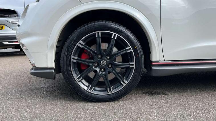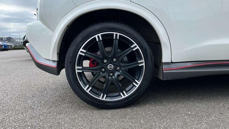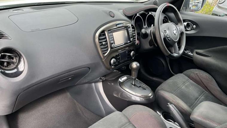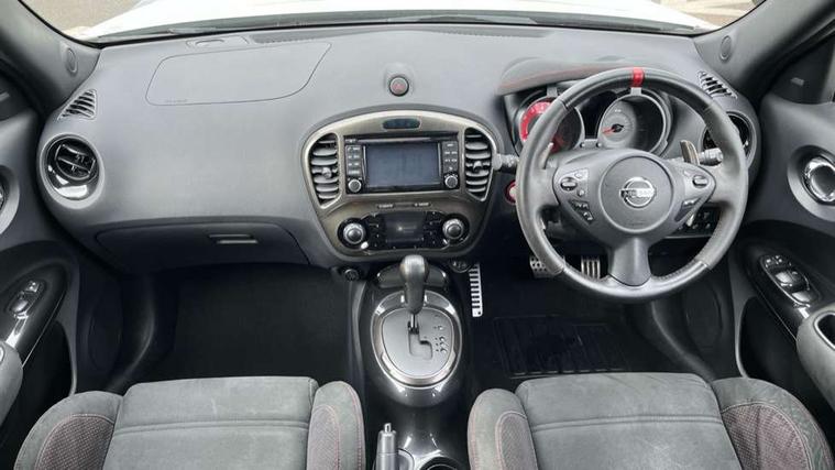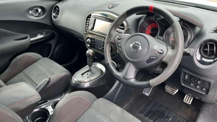 Bluetooth system, Colour rear view camera, Cruise control + speed limiter, Electric speed sensitive power steering, Nissan connect sat nav system, Push button starter, Service interval indicator, Trip computer, 6 speakers, Aux input, DAB Digital radio, Steering wheel mounted audio controls, Stereo radio/CD player and MP3 facility, USB port, 2 speed wipers+variable intermittent wipe, Automatic headlights, Body colour bumpers, Body colour door handles, Dusk sensor, Electric door mirrors, Electric folding door mirrors, Electric front/rear windows, Front fog lights, Heated door mirrors, LED daytime running lights, Privacy glass, Rain sensor, Rear diffuser, Rear wiper, Sports exhaust system, 12V socket, 60/40 split folding rear seat, Alcantara upholstery, Alcantara/leather steering wheel, Climate control, Front armrest, Front cupholders x 2, Front door pockets with bottle holders, Front head restraints, Front seat belt pre-tensioners with load limiters, Gear shift indicator, Glovebox, Heated front seats, Height adjustable driver's seat, Isofix child seat preparation, Luggage area under floor storage box, Map reading lamp, Nismo front sports seats, Passenger seat back pocket, Pollen filter, Rear headrests, Rear tonneau cover integrated into tailgate, Steering wheel rake adjustment, ABS + EBD + EBA, Child locks on rear doors, Driver and passenger airbags, Driver and passenger side airbags, ESP + traction control, Front and rear curtain airbags, Height adjustable front seatbelts, Passenger airbag deactivate switch, Red brake calipers, Three 3 point rear seatbelts, Tyre pressure monitoring system, VDC Dynamic Vehicle Control, Warning triangle and first aid kit, Alarm, Immobiliser, Intelligent Key, Remote central locking, 18" Alloy wheels, Tyre repair kit,
