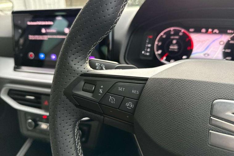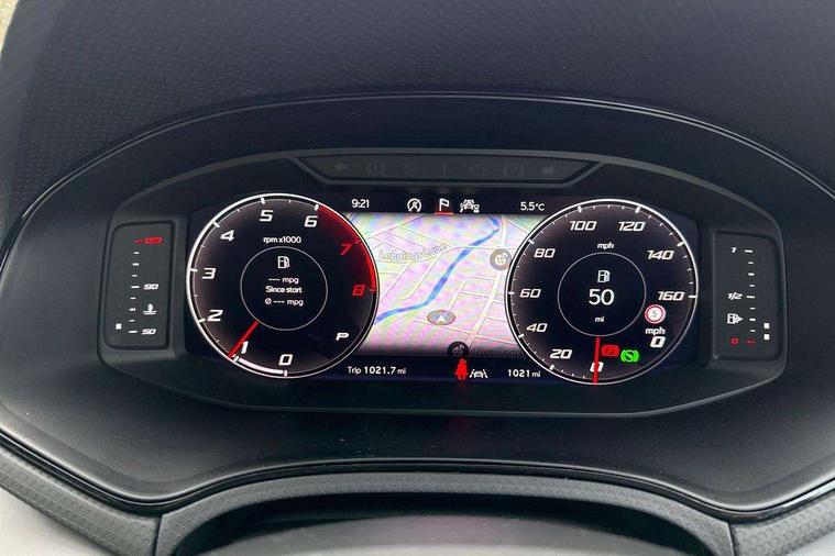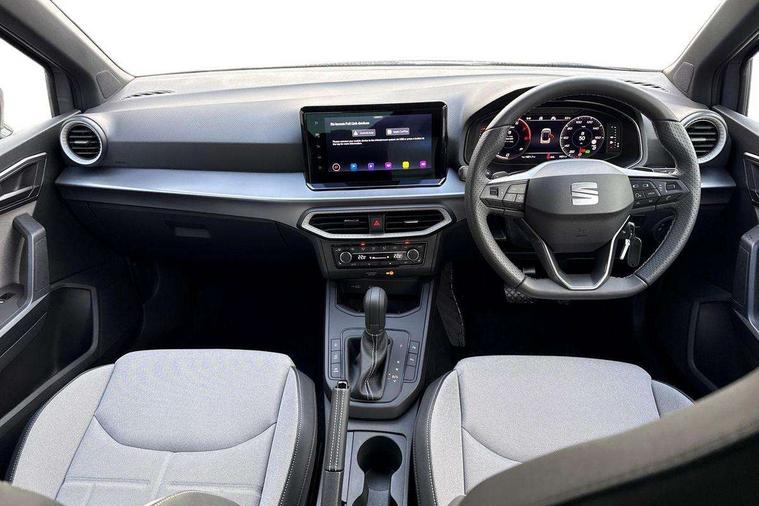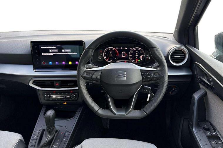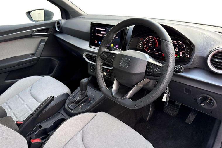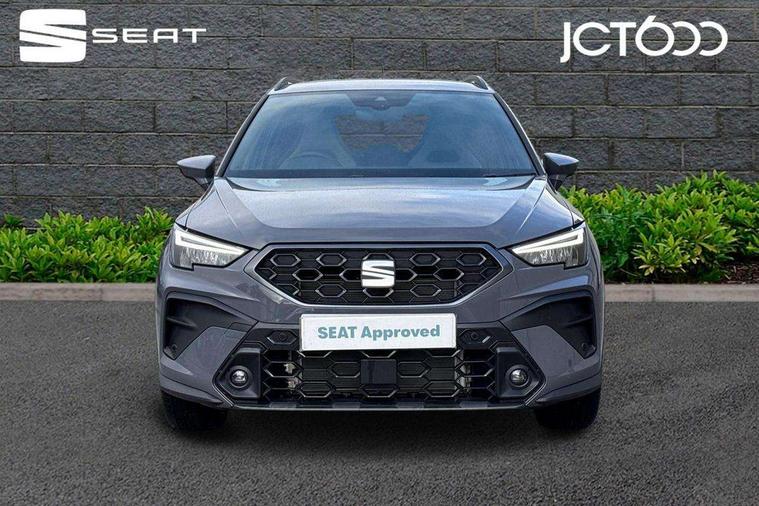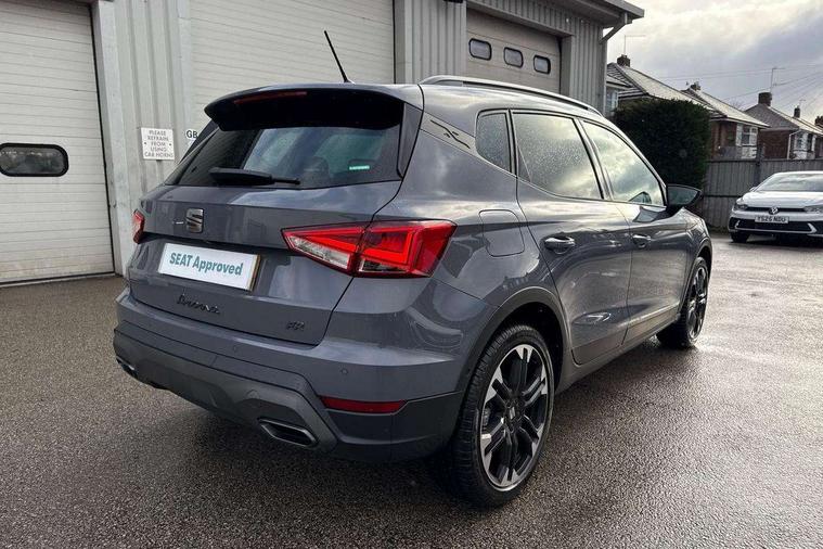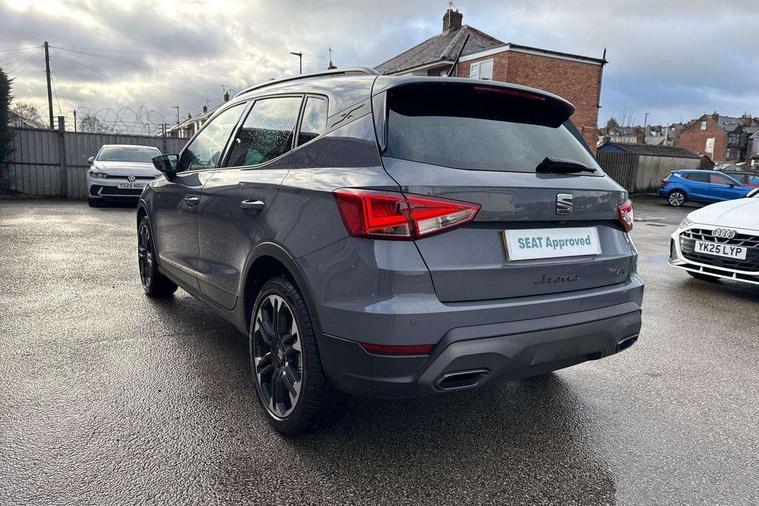 'Lights On' Reminder warning buzzer, 10" Digital cockpit, Digital clock, E-call, Electric speed sensitive power steering, Front parking sensors, Full link smartphone integration with mirror link, wireless apple carplay, Google android auto + USB Type C cable for apple and android devices, Low fuel warning light, Outside temperature display, Rear view camera, RPM counter, SEAT Drive profile - Four different models normal-sport-eco-individual, steering response, throttle response and gear shifts mode, Trip computer, Wireless phone charger, 9.2" colour touchscreen with navigation system, voice control and USB port (type c), Bluetooth interface for hands free and audio streaming, DAB digital radio and AM/FM radio, Steering wheel mounted audio controls, Anti theft roof antenna, Auto dimming interior rear view mirror, Automatic activation of hazard warning lights, Black roof rails and window surrounds, Body coloured bumpers, Body coloured door handle inserts, Dark tinted rear windows, Electric front/rear windows, Electrically adjustable, heated and folding door mirrors, Front fog lights with cornering function and rear fog light, LED 3rd brake light, LED daytime running lights, LED rear tail lights and licence plate lights, Protective side mouldings, Rain sensing wipers, Rear side wing doors, Rear spoiler, Rear window wash/wipe, Roof colour door mirrors, SEAT design Full LED automatic headlamps with dynamic headlight range control, coming and leaving home feature, Twin exhaust pipe styling with double flow exhaust pipe, Visible VIN plate, 2 cupholders, 3 seat bench in 2nd row, 60/40 split folding rear seat, Aircare filter, Black headliner, Cloth upholstery with embossed textile/Sport bucket seats, Double boot floor, Driver sunvisor with covered mirror + card holder, Dual zone climate control, Front courtesy light with front reading lights, Front seat back storage pockets, Heated front seats, Height adjustable front seats, Height/reach adjustable steering column, Illuminated air vent surrounds, Interior ambient lighting, Interior light in footwell, central console and door panel, ISOFIX points in outer rear seats with top tether anchorage points, Passenger sunvisor with vanity mirror, Perforated flat bottomed leather steering wheel/gear knob/handbrake with red stitching and FR logo, Red coloured interior air vents, Single front passenger seat, Steering wheel mounted gearshift paddles, Two front and three rear height adjustable headrests, Interior chrome pack - Arona, Safe and driving pack (S) - Arona, Storage pack - Arona, 3 point seatbelts on all rear seats, ABS, Active front headrests, Child locks on rear doors, Driver and front passenger airbags with front passenger airbag de activation, front side and curtain airbags, Emergency Brake Assist (EBA) and front assist, Front and rear seatbelt reminder, Hill hold control, Multi-Collision braking, Tiredness recognition system, Traction control, Tyre pressure monitoring system, Anti-theft alarm (perimeter and interior monitoring) with backup horn and towing protection, Central locking with radio remote control, interior controls and SAFELOCK, Deadlock, Electronic engine immobiliser, KESSY Keyless entry and go, Locking wheel bolts, 18" Performance machined alloy wheels in black,