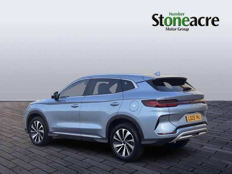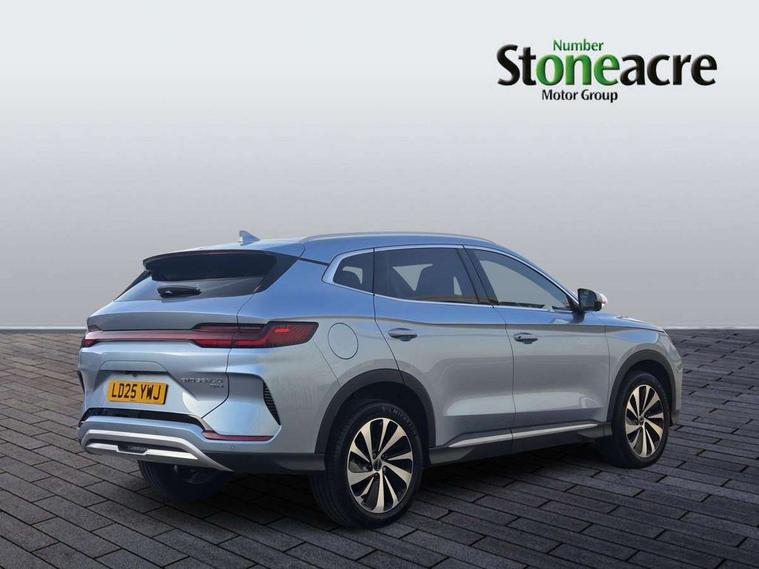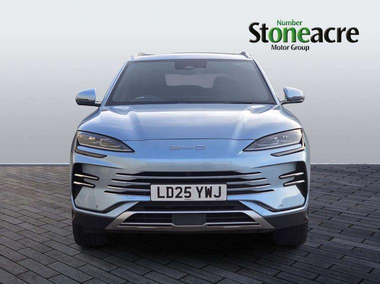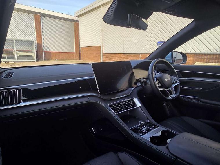 12.3" TFT full LCD instrument panel, 360 camera, Adaptive Cruise Control (ACC) and Intelligent Cruise Control (ICC), Automatic vehicle hold, Blind spot detection, BYD voice control assistant "Hi, BYD", Controller Deceleration Parking (CDP), Drive mode select (Eco, normal, sport, snow), e-Call (emergency call), Electric tailgate release, Emergency Lane Keeping Assist (ELKA), Forward collision warning, Front and rear parking sensors, Front cross traffic alert and front cross traffic brake, Head up Display, Indirect driver fatigue management, Intelligent Speed Limit Control (ISLC), Keyless system entry and start, Lane change assist, Lane Departure Assistant (LDA) and Lane Departure Warning (LDW), Lane departure prevention, PAS, Predictive collision warning, Rear collision warning, Rear cross traffic alert and rear cross traffic brake, Rollover Control System (RMI), Smartphone wireless charging, 2 x 15W, Traffic sign recognition (TSR), Vehicle-to-Load (V2L) function, 11kW on board charger, Mode 3 Type 2 charging cable (3 phase), V2L (Vehicle to load) power strip - Type F, 15.6" Electrically rotatable touchscreen, FM/DAB+ radio, Front USB ports, 1 x 18W Type C, 1 x 60W Type C, Infinity sound system with 10 speakers, Rear USB ports, 2 x 18W Type C, Aluminium roof rails, Auto dimming interior rear view mirror, Auto headlamps (on/off), Dynamic welcome lights, Electric folding and heated door mirrors, Emergency tow hook, Exterior mirror footlights, Follow me home headlights (The headlights turned on in advance and delayed off function), Front windscreen, UV protection, thermal insulation and sound proofing, High beam assist, LED 3rd brake light, LED daytime running lights, LED Headlights, LED taillights, One touch electric front/rear windows with pinch protection, Panoramic sunroof with anti-pinch sensor and electrically adjustable sunshade, Rain sensor windscreen wipers, Rear fog lights, Rear side wing doors, Rear window and rear windscreen with tinted glass, Rear wiper, 12V power outlet, 3 seat bench in 2nd row, 8 way electrically adjustable drivers seat, Adjustable rear headrests, Boot parcel shelf, Driver and passenger sunvisors with illuminated vanity mirrors, Driver seat memory function, Front centre armrest with 2 cupholders, Front LED reading lights, Front passenger seat with 4-way electric adjustment, Front seat footlights, Heat pump, Heated front seats, Heated steering wheel, Integrated headrest in front seats, ISOFIX and i-Size for front passenger and outer rear seats, LED front door lights, Nylon floor mats, PM2.5 air filter, PM2.5 air purification system, Rear air vents, Rear armrest with 2 cupholders, Rear side LED reading lights, Rhythm-reactive multi-colour ambient lighting, Single front passenger seat, Split folding rear seats - 40/60, Vegan leather multifunction steering wheel, Vegan leather upholstery, Ventilated front seats, 3x3 point rear seatbelts, ABS/EBD, Automatic emergency braking system, Brake override system (BOS), Child presence detection, Comfort stop, Door open warning, Driver airbag, Electric parking brake, Force limiting pre-tensioned front seat belts, Front centre airbag, Front passenger airbag, Front passenger airbag deactivation, Front side airbags, Hill descent control, Hill hold control, Hydraulic Brake Assist (HBA), Hydraulic brake boost, Mechanical child safety lock, Rear middle seat force limiting seat belt, Rear seat belt pretensioners, Reflective vest, Side curtain airbags, Traction control system (TCS), Tyre pressure monitoring system (TPMS), Vehicle Dynamics Control System (VDC), Warning triangle, 2 x Smart keys, Anti theft alarm system, Automatic door locking, 19" Bi-colour alloy wheels, Tyre nut covers remover, Tyre repair kit,
