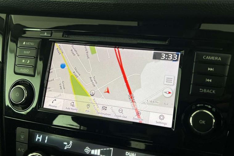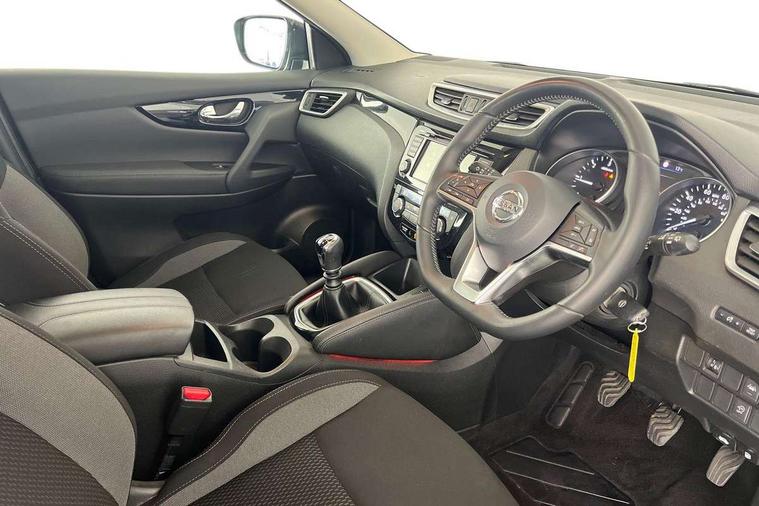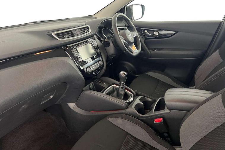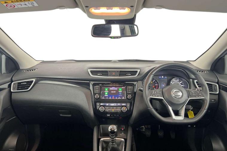 Advanced drive assist display 5'' TFT coloured screen, Android Auto, Apple CarPlay preparation, Bluetooth connectivity, Cruise control + speed limiter, Electric speed sensitive power steering, Front parking sensors, Lane departure warning system, Nissan connect evo 7" touchscreen navigation and entertainment system, Normal or sport selectable steering, Outside temperature sensor, Rear parking sensors, Rear view camera, Service interval indicator, Smartphone integration, Stop/start system, Tomtom connected services, Traffic sign recognition, Trip computer, Voice control system, Diesel particulate filter, Nissan chassis control (intelligent ride control, intelligent trace control, intelligent engine brake), 6 speakers, AM/FM radio, CD audio system, Aux-in socket, DAB Digital radio, Steering wheel mounted audio controls, USB port, Anti dazzle rear view mirror, Auto wipers, Body colour bumpers, Body coloured door handles, Body coloured door mirrors, Chrome window surround, Daytime running lights dip function when turn signal applied, Electric folding door mirrors, Electric front and rear windows with one touch illuminated window controls, Electric front/rear windows, Electrically adjustable door mirrors, Front fog lights, Halogen headlights, Heated door mirrors, High beam assist, Intelligent auto headlights, LED indicators in door mirrors, Rear roof spoiler, Rear wiper with reverse link, Shark fin antenna, Signature LED daytime running lights, Underbody vortex generators, 2 X front 12v power sockets, 3 height adjustable rear headrests, 60/40 split folding rear seat, Ambient lighting in centre console, Boot lighting, Centre console storage box/armrest, Chrome interior door handles, Cloth upholstery, Configurable luggage board system, Driver's seat manual height adjust, Dual zone climate control, Front and rear door pockets with bottle holders, Front and rear seat belt pre-tensioners with load limiters, Height adjustable front headrests, ISOFIX on outer rear seats, Leather D shaped steering wheel, Leather gear lever, Leather knee pad, Manual height adjustable front passenger seat, Manual lumbar support on driver seat, Manual lumbar support on passenger seat, Parcel shelf stow function under luggage board, Pollen filter, Rear armrest with 2 cupholders, Tilt/telescopic adjustable steering wheel, 6 airbags - Driver, front passenger, curtain and side airbags, ABS, ESP, EBD and brake assist, Auto hold function, Child locks on rear doors, Electronic parking brake, Front and rear seat belt warning, Front passenger airbag deactivation, Height adjustable front seatbelts, Hill start assist, Intelligent emergency braking with pedestrian recognition, Three 3 point rear seatbelts, Tyre pressure monitoring system, Anti-theft immobiliser, Remote central locking, Thatcham Cat.1 alarm, Piano black dash trim, 17" Alloy wheels, Tyre puncture repair kit,