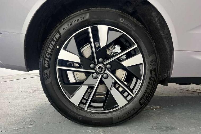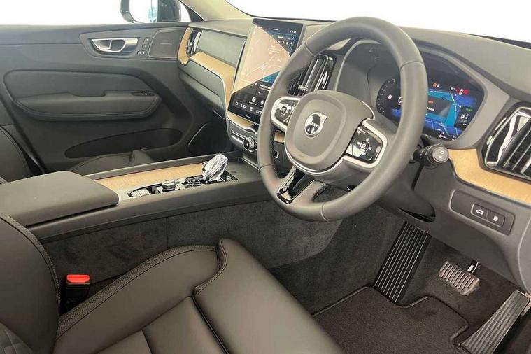 11.2" centre console touch screen, 12.3" Progressive Driver Display, 360 degree surround view parking camera with side proximity sensors, Adaptive cruise control, Adjustable steering wheel force, Android auto (Wired), Apple carplay (wired), Bluetooth handsfree system, Drive mode settings, Driver alert control with lane keeping aid, Driver understanding system, Emergency services call system, Front and rear park assist, Google Automotive Services, Intelligent speed assistance, Oncoming Lane Mitigation, PAS, Power operated tailgate with handsfree opening and closing, Service interval indicator, Speed limiter, Speed sensitive steering, Trip computer, Volvo cars services with app, Volvo on call with App, Wireless/Inductive Mobile Phone Charging, 2 phase on board charger 6.4kW (home charging limited to 3.7kW), 6m 3 phase 16amp Type 2 / mode 3 charge cable, 8 speed automatic transmission with start/stop + manual change functions, Electric rear axle drive, Recharging port located in nearside front wing, DAB Digital radio, Low speed exterior sound speaker, Premium Sound by Harman Kardon, dirac unison, dolby pro logic II surround sound, 13 speakers/600W output and fresh air subwoofer, Steering wheel remote infotainment controls, Adaptive brake lights with high level LED brake lights, Auto dimming interior + exterior mirrors, Automatic headlight levelling system, Automatic LED Headlights + Active high beam incorporating daytime running lights, Electric adjustable/heated/auto power folding door mirrors, Electric front+rear windows, Front aluminium tread plates, Heated front windscreen, High gloss black door mirrors and window surround, High gloss black front and rear bumper decoratives, High gloss black mesh front grille with high gloss black surround, Home safe and approach lighting, Integrated roof rails in high gloss black, Puddle lights, Rain sensor with automatic windscreen wiper activation, Rear side wing doors, Rear wiper, Roof antenna, Roof spoiler, Tinted windscreen, Visible VIN plate, 12V socket in front tunnel console and luggage compartment, 2 zone electronic climate control with Clean zone air quality system and pollen filter, 3 seat bench in 2nd row, 3 Spoke tailored steering wheel with chrome trim, A-pillar parking ticket holder, Air purifier particulate matter (PM) 2.5 filter, B Pillar ventilation, Bright metal luggage scuff plate, Centre console cupholders and storage, Charcoal floor mats, Front and rear courtesy lights, Front and rear door pocket illumination, Front cupholder illumination, Front footwell illumination, Front reading lights, Front seat cushion extensions, Glovebox compartment with illumination, Head restraints for all seats, Heated front seats, Heated steering wheel, Height/reach adjustable steering column, Illuminated luggage compartment, Illuminated vanity mirrors + ticket holder, Inner door release handle illumination, ISOFIX attachment on outer rear seats, Load cover, Load protection net, Multi directional lumbar support, Power driver seat with memory + exterior mirrors memory, Power height adjustable passenger seat, Power passenger seat with memory, Quilted nordico leather upholstery, Rear armrest with cupholder, Rear footwell and front and rear side step illumination, Rear reading lights, Rear seat concealed storage, Single front passenger seat, Tailgate illumination and ambient door lighting, Underfloor stowage compartment, Versatile split folding rear seat - 60/40, Driver assist pack without Adaptive cruise control - XC60, 5 three point seatbelts, City safety with steering support with Pedestrian + cyclist + front collision warning with full auto brake and rear auto brake, Drivers knee airbag, Dual stage driver/passenger airbags, Electronic parking brake with auto hold, First aid kit, Front seats SIPS airbags, Hill descent control - Off-road drive mode, Hill start assist, IC (Inflatable Curtains) - Full Length, Passenger airbag cut-off device, Power child locks on rear doors, Road sign information display, Run off Road Mitigation, Run off Road Protection, Seatbelt reminder and pretensioners, SIPS (Side Impact Protection System), Slippery road and hazard light alert, Stability and Traction Control with Spin control, Engine Drag Control and Corner Traction Control, Tyre pressure monitoring system, Vehicle deceleration control with Anti-lock Brake System, Electronic Brake Distribution and Emergency Brake Assist, Warning triangle, WHIPS whiplash protection system - front, Anti-theft alarm including immobiliser/volume sensor + level sensor, Key integrated remote control central locking + fuel flap with deadlocking system and auto open/close power windows, Keyless Drive (includes Keyless Entry and Keyless Start), Locking wheel nuts, Private locking for tailgate, Summer tyres, Tyre sealant kit + 12v compressor,