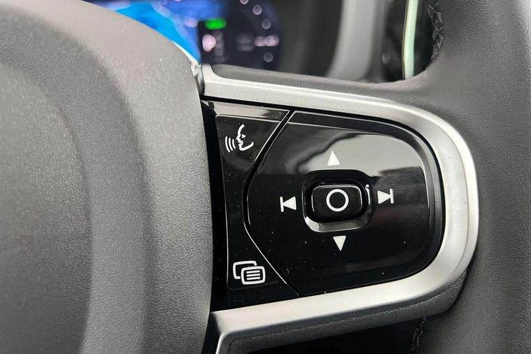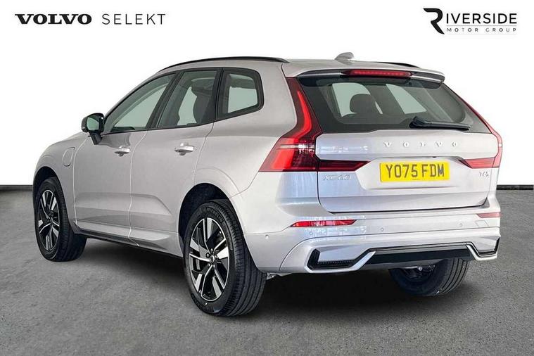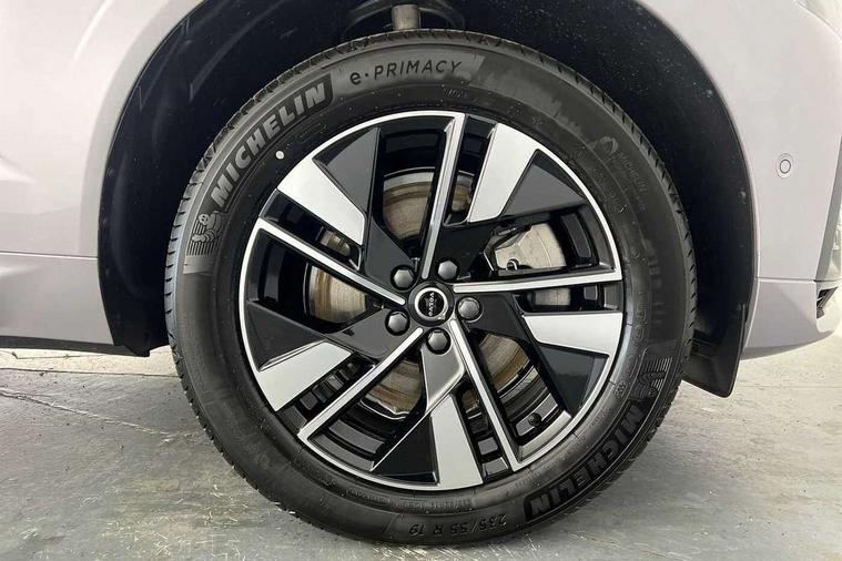 11.2" centre console touch screen, 12.3" Progressive Driver Display, 360 degree surround view parking camera with side proximity sensors, Adaptive cruise control, Adjustable steering wheel force, Android auto (Wired), Apple carplay (wired), Bluetooth handsfree system, Drive mode settings, Driver alert control with lane keeping aid, Driver understanding system, Emergency services call system, Front and rear park assist, Google Automotive Services, Intelligent speed assistance, Oncoming Lane Mitigation, PAS, Power operated tailgate with handsfree opening and closing, Service interval indicator, Speed limiter, Speed sensitive steering, Trip computer, Volvo cars services with app, Volvo on call with App, Wireless/Inductive Mobile Phone Charging, 2 phase on board charger 6.4kW (home charging limited to 3.7kW), 6m 3 phase 16amp Type 2 / mode 3 charge cable, 8 speed automatic transmission with start/stop + manual change functions, Electric rear axle drive, Recharging port located in nearside front wing, DAB Digital radio, Low speed exterior sound speaker, Premium Sound by Harman Kardon, dirac unison, dolby pro logic II surround sound, 13 speakers/600W output and fresh air subwoofer, Steering wheel remote infotainment controls, Adaptive brake lights with high level LED brake lights, Auto dimming interior + exterior mirrors, Automatic headlight levelling system, Automatic LED Headlights + Active high beam incorporating daytime running lights, Electric adjustable/heated/auto power folding door mirrors, Electric front+rear windows, Front aluminium tread plates, Heated front windscreen, High gloss black door mirrors and window surround, High gloss black front and rear bumper decoratives, High gloss black mesh front grille with high gloss black surround, Home safe and approach lighting, Integrated roof rails in high gloss black, Puddle lights, Rain sensor with automatic windscreen wiper activation, Rear side wing doors, Rear wiper, Roof antenna, Roof spoiler, Tinted windscreen, Visible VIN plate, 12V socket in front tunnel console and luggage compartment, 2 zone electronic climate control with Clean zone air quality system and pollen filter, 3 seat bench in 2nd row, 3 Spoke tailored steering wheel with chrome trim, A-pillar parking ticket holder, Air purifier particulate matter (PM) 2.5 filter, B Pillar ventilation, Bright metal luggage scuff plate, Centre console cupholders and storage, Charcoal floor mats, Front and rear courtesy lights, Front and rear door pocket illumination, Front cupholder illumination, Front footwell illumination, Front reading lights, Front seat cushion extensions, Glovebox compartment with illumination, Head restraints for all seats, Heated front seats, Heated steering wheel, Height/reach adjustable steering column, Illuminated luggage compartment, Illuminated vanity mirrors + ticket holder, Inner door release handle illumination, ISOFIX attachment on outer rear seats, Load cover, Load protection net, Multi directional lumbar support, Power driver seat with memory + exterior mirrors memory, Power height adjustable passenger seat, Power passenger seat with memory, Quilted nordico leather upholstery, Rear armrest with cupholder, Rear footwell and front and rear side step illumination, Rear reading lights, Rear seat concealed storage, Single front passenger seat, Tailgate illumination and ambient door lighting, Underfloor stowage compartment, Versatile split folding rear seat - 60/40, Driver assist pack without Adaptive cruise control - XC60, 5 three point seatbelts, City safety with steering support with Pedestrian + cyclist + front collision warning with full auto brake and rear auto brake, Drivers knee airbag, Dual stage driver/passenger airbags, Electronic parking brake with auto hold, First aid kit, Front seats SIPS airbags, Hill descent control - Off-road drive mode, Hill start assist, IC (Inflatable Curtains) - Full Length, Passenger airbag cut-off device, Power child locks on rear doors, Road sign information display, Run off Road Mitigation, Run off Road Protection, Seatbelt reminder and pretensioners, SIPS (Side Impact Protection System), Slippery road and hazard light alert, Stability and Traction Control with Spin control, Engine Drag Control and Corner Traction Control, Tyre pressure monitoring system, Vehicle deceleration control with Anti-lock Brake System, Electronic Brake Distribution and Emergency Brake Assist, Warning triangle, WHIPS whiplash protection system - front, Anti-theft alarm including immobiliser/volume sensor + level sensor, Key integrated remote control central locking + fuel flap with deadlocking system and auto open/close power windows, Keyless Drive (includes Keyless Entry and Keyless Start), Locking wheel nuts, Private locking for tailgate, Summer tyres, Tyre sealant kit + 12v compressor,