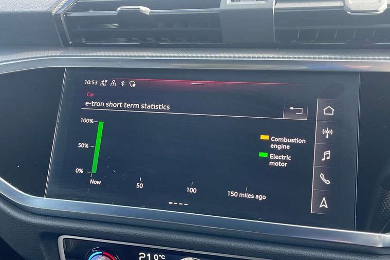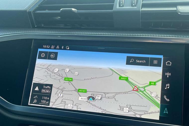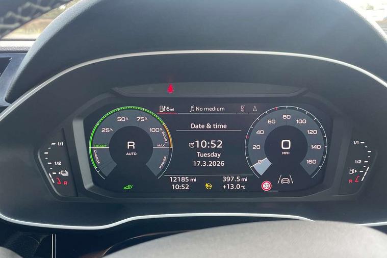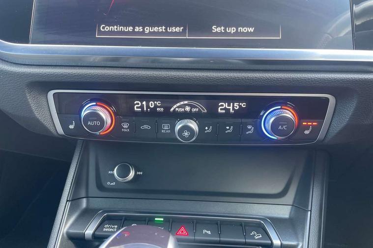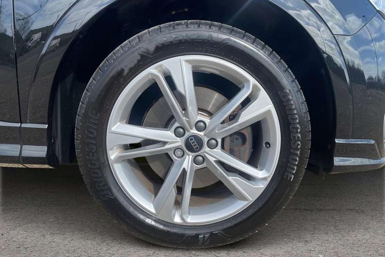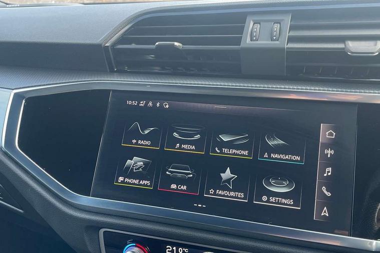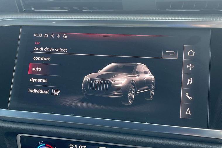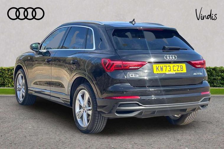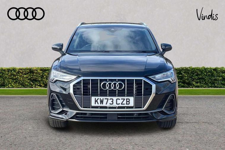 Amazon alexa Integration, Audi drive select, Audi lane departure warning, Audi Virtual Cockpit - 10.25" display, Bluetooth interface, Camera based traffic sign recognition, Legal emergency call, MMI Navigation Plus with high resolution 10.1 inch touchscreen colour display, Power operated tailgate, Progressive steering, Service interval indicator, Smartphone interface includes wireless Apple carplay/Android Auto, Start stop system with recuperation, Voice control system with natural language interaction, 3 pin 10 amp domestic charging cable, 3.6 kw On-board charger, Type 2 mode 3 32 amp charging cable, Type 2 socket for AC charging, 2 USB-C ports with charge and data functions, 6 passive loudspeakers, DAB digital radio module, Acoustic windscreen, Aluminium roof rails, Aluminium window trim, Anthracite black radiator grille, Auto dimming frameless rear view mirror, Body colour front spoiler blade, Body coloured bumpers, Electrically folding, adjustable and heated door mirrors with integrated LED side indicators and kerb view function for passenger side, Front and rear electric windows, Front fog lights, Front side air inlets in matt platinum grey, Grille vertical bars in aluminium silver/Matt, High gloss black finish B and C pillars, LED Dynamic rear indicators, LED headlights with LED daytime running lights, LED rear lights, LED third brake light, Privacy glass dark tinted rear and rear-side windows (from B-pillar backwards), Rain and light sensors, Rear diffuser grille in grained matt black, Rear diffuser strip in matt anthracite black, Rear side wing doors, Rear wiper, S line badges on front wings, S Line front and rear bumpers, Side skirt insert in matt Platinium grey, Variable front intermittent wipers, 12V socket in rear centre console, 3 seat bench in 2nd row, 3 spoke leather multifunction steering wheel features S badging and grips in perforated leather with contrast stitching, 40:20:40 folding with manual adjustment for 60:40 forwards/backwards position and backrest angle, Adjustable rear seat bench/backrest with centre armrest and cupholder, Black cloth headlining, Dual zone electronic climate control, Front and rear black floor mats with contrast stitching in rock grey, Front and rear headrests, Front and rear roof module including reading lights, Front centre armrest, Glove compartment lighting, Height and reach adjustable steering wheel, Illuminated door sill trims with S logo, ISOFIX child seat mounting for front passenger with airbag deactivation and outer rear seat including top tether attachment point for outer rear seats, Luggage compartment light, Manual front seats with height adjustment, Perforated leather gearknob, Single front passenger seat, Stainless steel luggage compartment sill finisher, Stainless steel pedals, Ambient lighting pack - Q3, Non smoking pack - Q3, 3x3 point rear seatbelts, 6 airbags - Driver, front passenger, curtain and side windows, Audi pre-sense front with pedestrain and cyclist recognition, Electrically operated child locks on rear doors, Electromechanical parking brake, Electronic stabilisation control including ABS, ASR and EDL, Front seatbelt reminder, Hill descent control, Hill hold assist, Pre sense basic, Seatbelt monitoring, Tyre pressure warning, Warning triangle and first aid kit, Anti theft alarm, Anti theft wheel bolts, Immobiliser, Remote central locking, Aluminium look interior elements, Dark matt brushed aluminium inlay, Detail dashboard around MMI touch colour display in glass look, black with surround in aluminium look, Leatherette door armrest, Tool kit, Tyre repair kit,
