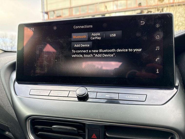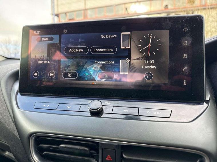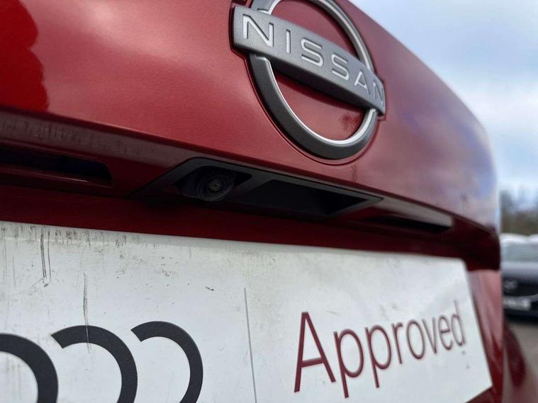 7" full colour TFT screen combimeter, Cruise control + speed limiter, Emergency and breakdown call, Idle start/stop system, Intelligent driver alert system, Intelligent lane intervention, Lane departure warning system, Nissan connect 12.3" touch screen entertainment system, Outside temperature sensor, Power Steering, Rear view camera, Traffic sign recognition, Trip computer, Voice recognition, WiFi connectivity, Wireless Apple CarPlay and Google Android auto, 2 X Rear console USB port, 4 speakers, Bluetooth system, USB, Aux-in and 12V socket, DAB Digital radio, Automatic hazard signal with emergency stop signal, Body colour door handles, Electrically adjustable door mirrors with integrated indicators, Follow me home headlights, Front and rear electric window with one touch driver window, High beam assist, LED 3rd brake light, LED daytime running lights, LED headlamps, LED rear fog lamp, LED rear lamps, Pearl black door mirrors, Rear side wing doors, Rear wiper, Roof spoiler, Shark fin roof antenna in solid Black, Three blink turn signal, 3 height adjustable rear headrests, 3 seat bench in 2nd row, 60/40 split folding rear seat, Cloth upholstery, Driver/passenger sunvisors and vanity mirrors, Front and rear cabin lights, Front armrest, Front door pockets with bottle holders, Front head restraints, Height adjustable driver's seat, Internal chrome door handles, Luggage space lighting, Monoform sporty seats, Multifunction steering wheel, Rear door bottle holders, Single front passenger seat, Smooth synthetic leather steering wheel, Telescopic steering wheel adjustment, Two cupholders in front centre console, Two rear isofix child seat anchorage points with top tether, Welcome light and console tray ambient lighting, ABS with EBD and brake assist, Active ride control, Active Trace Control, Driver and passenger airbags, Driver and passenger side airbags, Electric handbrake with auto hold function, Electronic Stability Programme (ESP), Front and rear curtain airbags, Height adjustable seatbelts, Hill start assist, Intelligent emergency braking with pedestrian and cyclist recognition, Rear door child safety locks, Seatbelt reminder for driver/front passenger and rear seats, Three 3 point rear seatbelts, Traction control, Tyre pressure monitoring system, VDC Dynamic Vehicle Control, Alarm, Immobiliser, Remote central locking, 17" Sakura Flex wheels, Tyre puncture repair kit,
