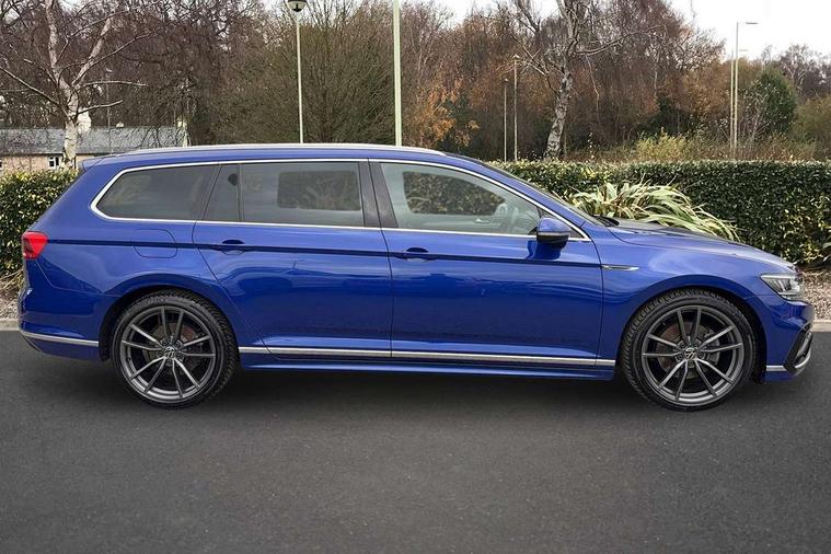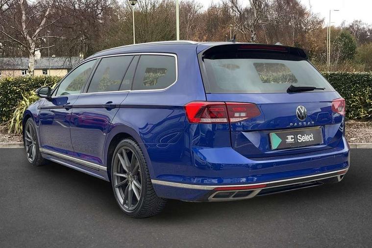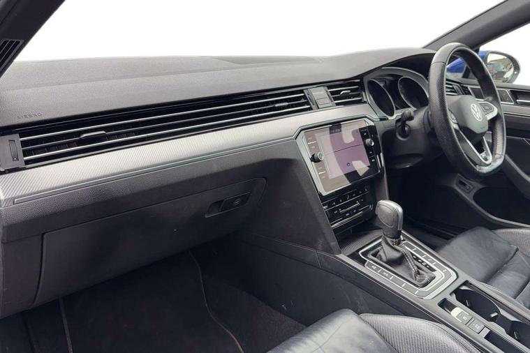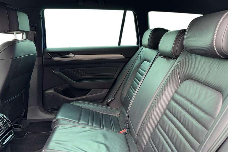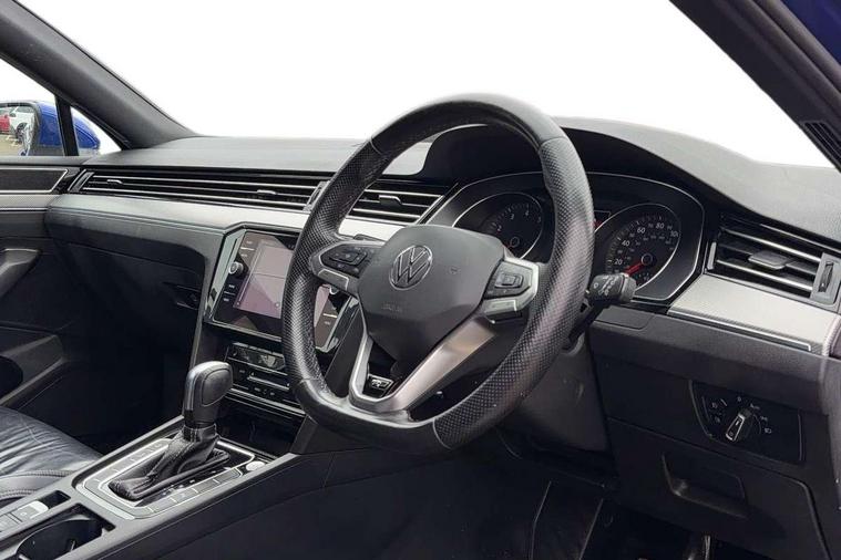 Adaptive cruise control including Front Assist, radar sensor controlled distance monitoring system, City emergency braking system, Driver alert system, Driver profile selection, Exterior temperature gauge with frost alarm, Lane assist, Low washer fluid warning light, Multifunction computer includes visual gear, One touch indicator turn signal, Proactive occupant protection, Security and service including e-call, Speed sensitive power steering, Speedo and rev counter, electronic odometer, trip, service interval display and fuel gauge, Start/Stop function, Traffic jam assist, Voice activation, Warning buzzer and light for front seatbelts unfastened, We connect plus, Battery regeneration during braking, Misfuel prevention device, Petrol Particulate Filter, Aerial for radio integrated into rear windscreen, DAB Digital radio receiver, External, USB type C data sockets with increased charging performance front (45 Watt), All LED headlights with reflector technology incl. LED DRL and 12 separate LED indicator function lights, Auto dimming interior rear view mirror, Automatic headlights with dusk sensor, Automatic leaving home and manual coming home lighting functions, Black radiator grille with chrome louvres, Body colour bumpers, Body colour door handles, Body coloured door mirrors with integrated indicators, Chrome side window surrounds, Electric heated windscreen washer jets, Front and rear electric windows, Front fog lights with static cornering function and chrome trimmed surround, Fully galvanised body, Gloss black finish on B pillar, Heated rear window, LED rear lights, LED rear number plate lights, LED third brake light, Plastic load sill protection, Rain sensor, Rear side wing doors, Rear tinted glass from B pillar backwards, approx 65% tinted, Rear window wash/wipe, Remote electrically adjustable and foldable heated door mirrors including automatic dimming function on drivers side door mirror puddle lights, Silver anodised roof rails, Warning lights for open tailgate and doors, White instrument lighting, Windscreen wipers/ intermittent wipe + 4 position delay, 12V socket in front centre console, 12V socket in luggage compartment, 3 seat bench in 2nd row, 40:20:40 split folding rear seat backrests, Carbon optic side bolsters, Climate control - 3 Zone electronic air conditioning with automatic air recirculation, Driver's door storage compartment for 1.0 litre bottle, Extending luggage compartment cover with convenience opening, stowable, Front and rear interior lighting with delay and dimming function, Front centre armrest with storage compartment and two rear air vents, Front cupholders x2 with covers, Front passenger storage compartment for 1.5 litre bottle, Front seats with embroidered R Line logo on backrest, Height adjustable and removable variable boot floor, Height adjustable rear seat head restraints (x3), Height/reach adjust steering wheel, Illuminated vanity mirrors, Isofix child seat preparation, outer rear seats, Load lashing points x 4 in luggage compartment, Load through provision, Lockable, illuminated, cooled glovebox, Luggage compartment lighting, Nappa leather upholstery, Rear seat centre armrest with storage compartment, Single front passenger seat, Stainless steel pedals, Storage compartment in rear doors, Storage compartment in roof console with cover, Unique R Line door sill protectors, Unique R Line front and rear carpet mats, Easy open package with full electric tailgate/ boot - Passat (Estate), R line styling pack - Passat (Estate), 3x3 point rear seatbelts, ABS (Anti locking brake system) includes BAS (Brake assist) and EBD (Electronic brake pressure distribution), Automatic post collision braking, Disc brakes front and rear, Door open warning reflectors, Driver/Front Passenger airbags, Drivers and front passengers safety optimised head restraints, longitudinal and height adjustable, Drivers knee airbag, Electronic parking brake with auto hold, First aid kit and warning triange with 2 face masks, Front and rear passenger curtain airbags, Front passenger airbag deactivation switch, Front side impact airbag, Height adjustable front 3 point seatbelts + pretensioners, Hill hold function, Pre crash preventive occupant protection, Rear door child safety locks, Rear seat side impact airbags, Rigid safety cell with front and rear crumple zones, Tyre pressure loss indicator, Volkswagen roadside assistance, Warning light for rear seat belts if unfastened, Alarm with interior protection and deactivation via infotainment system, Electronic engine immobiliser, Locking wheel nuts, Remote central locking, Chrome air vent and instrument surround, Unique R Line dark diamond flag decorative inserts in dash and door panels,