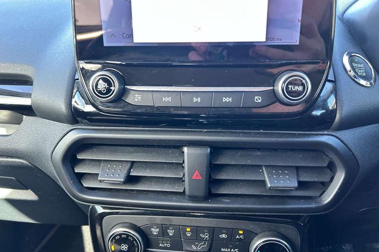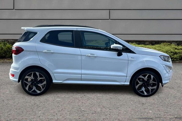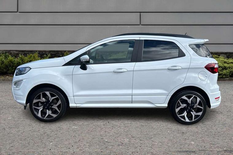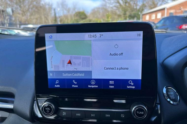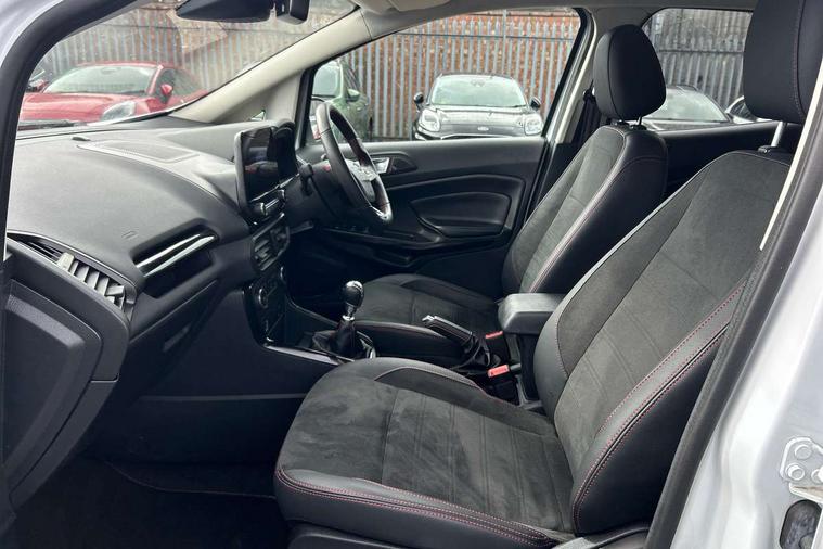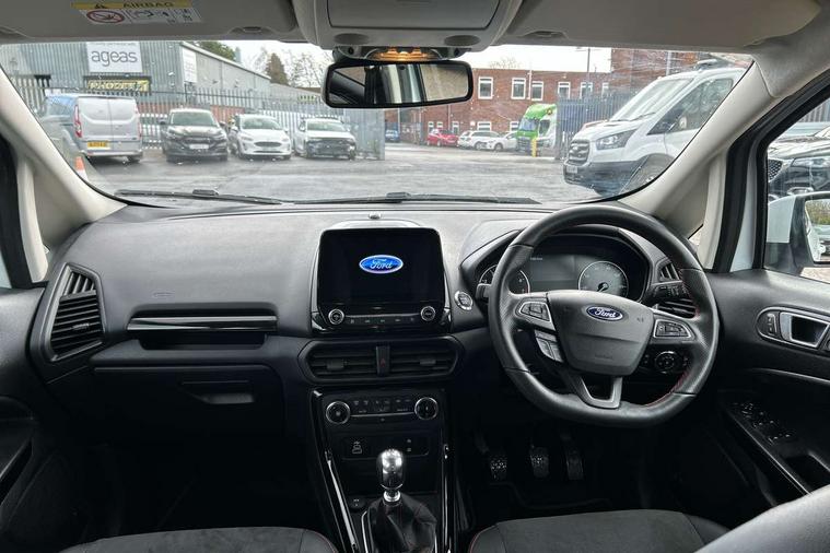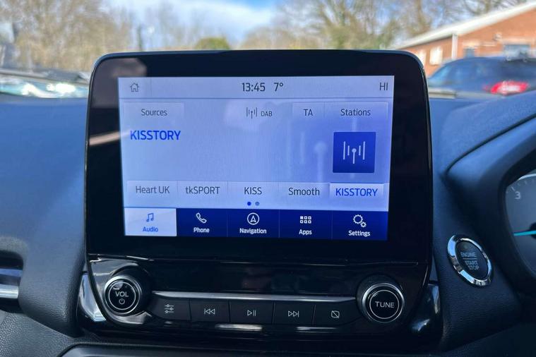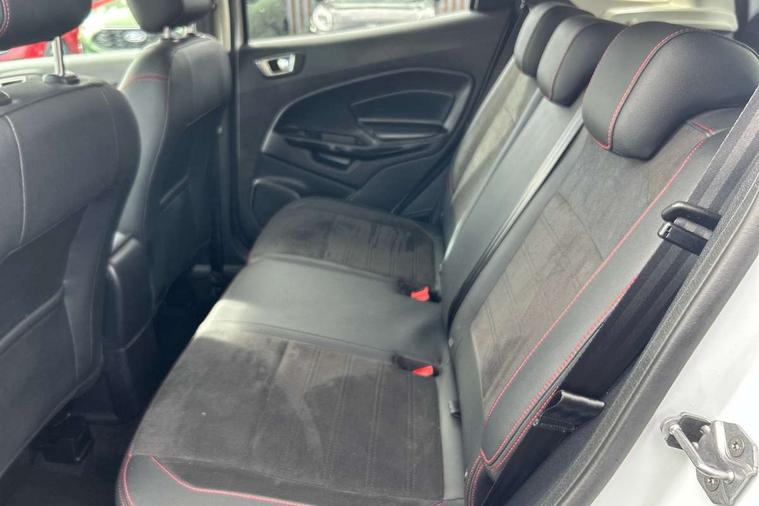 Cruise control, e-Call (emergency call), Easy fuel capless refuelling system, Ford SYNC 3 nav system with DAB radio, 8" screen, emergency assistance, Apple car play/Android auto, 2x USB, 6 speakers, Ford pass connect, Intelligent speed limiter, PAS, Rear parking sensors, Rear view camera, Traffic sign recognition, Trip computer, Sports suspension, Steering wheel mounted audio controls, Auto dimming rear view mirror, Automatic front wipers, Automatic headlights, Black roof rails, Body colour door handles, Body coloured bumpers, Chrome lower window surround, Electrically adjustable and heated door mirrors, Front fog lights, Front grille bars and surround in black, Headlight levelling control, Large rear spoiler, LED day running lights, LED third brake light, Power front and rear windows, Puddle lights, Quickclear' heated windscreen, Rear side wing doors, Rear wiper, ST Line body styling kit - Black headlamp bezel, front and rear sport bumpers, body colour lower door claddings, 12V socket in front and rear, 3 seat bench in 2nd row, 60/40 split rear seats, Ambient lighting, Centre console with sliding front armrest, Cooled glovebox, Courtesy lights with map reading light, Driver seat height/lumbar adjust, Driver's side glovebox, Driver/passenger sunvisors and lidded vanity mirrors, EATC - Electronic Auto Temperature control, Folding grab handles, Front head restraints, Front seat back map pockets, Illuminated glovebox, Illuminated luggage compartment, Isofix system on outer rear seats, Luggage compartment carpet, Neosuede/Partial sensico leather upholstery, Overhead console with sunglasses holder, Rake adjustable rear seats, Reach + rake adjustable steering column, Rear headrests, Sensico trimmed steering wheel, handbrake and gearshift gaiter with red stitching, Single front passenger seat, ST-Line Front floor mats with red stitching, Stainless steel sports pedals, Storage drawers under front seats, Tie down hooks, Variable boot floor, 3x3 point rear seatbelts, ABS, Autonomous emergency braking, Child locks on rear doors, Curtain airbags, Driver airbag, Drivers knee airbag, Electronic Stability Programme with hill launch assist, Front passenger airbag deactivation, Front side airbags, Passenger airbag, Pre collision assist system with AEB, Seatbelt reminder for driver and front passenger, Traction control, Tyre pressure monitoring system, Immobiliser, MyKey system, Remote central locking, Thatcham 1 volume sensing alarm, Low rolling resistance tyres, Tyre inflation kit,