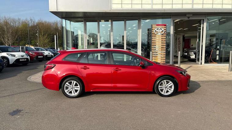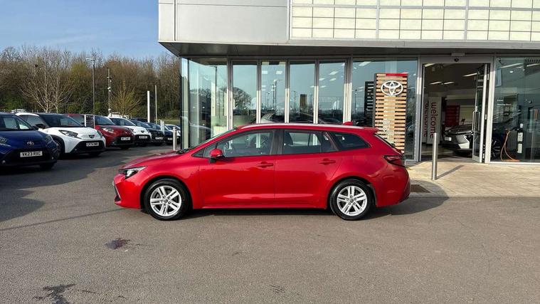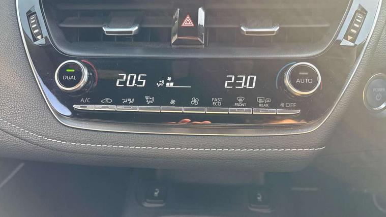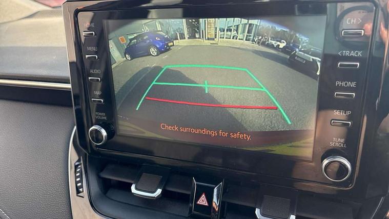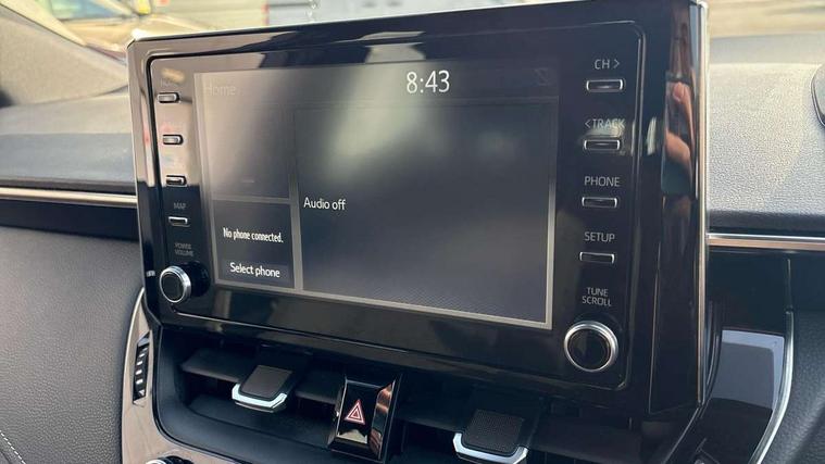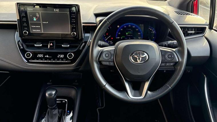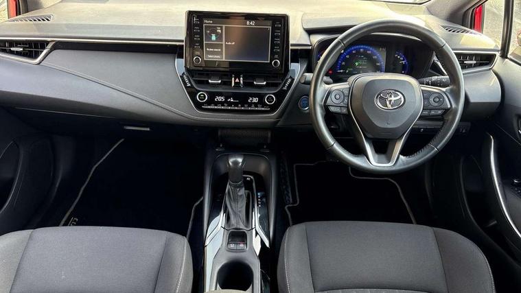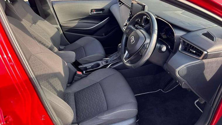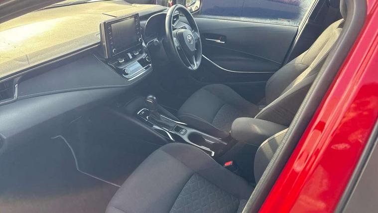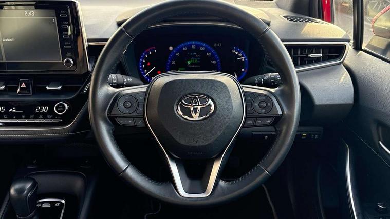 7" Multi information display screen, Bluetooth telephone connectivity, Connected car functionality upgrade, tracker, remote status and e-care, Dynamic radar cruise control (with RSA) including switch on steering wheel, E-call, Electrically assisted power steering, EV drive indicator, Lane Departure Alert (LDA) switch on steering wheel, Memory on adjustable speed limiter, Push button start, Reversing camera, Smartphone integration with Apple CarPlay and Android auto, Gasoline particulate filter, Vehicle Stability Control (VSC), 6 speakers, 8" Touchscreen with MM19 Multimedia system and voice recognition, AM/FM radio, DAB Digital radio, USB and Aux in connectors + 12V front outlet, USB charging port in centre storage box, Aluminium roof rails, Anti-jam protection on power windows, Auto up and down function on all power windows, Automatic headlights with high beam assist, Black metallic surround on lower front grille, Black toyota logo in front, Body colour rear spoiler, Body coloured bumpers, Body coloured door mirrors, Body coloured outside door handles, Follow me home headlights, LED daytime running lights, LED front fog lights, LED Headlights, LED High mounted stop light, Manual day/night rear view mirror, Noise reduction layer on front windows, Power adjustable heated door mirrors, Power front windows, Power rear windows, Rain sensor, Rear side wing doors, Rear window defogger, Rear window wiper, Shark fin antenna, Time adjustment on intermittent wiper, Turning signal integrated indicators in door mirrors, Unique lower skirt, Unique side rocker with black insert, UV-filter on driver and passenger windows, 12v power outlet - luggage side, 3 rear headrests, 3 seat bench in 2nd row, 3 spoke leather steering wheel + gear knob, 60/40 split folding rear seat, Adjustable speed limiter switch on steering wheel, Audio, multimedia and telephone switches on steering wheel, Boot light, Boot underfloor storage, Clean air filter, Driver and front passenger personal light, Driver and passenger assist grip, Driver and passenger sun visor with mirror and light, Dual sided deck board in boot, Dual zone automatic air conditioning with ECO mode switch, Fabric armrests, Front and rear cup and bottle holders, Front and rear door pockets, Front head restraints, Front passenger seat, Heated driver and front passenger seats, Illuminated entry system in room lamp, ISOFIX seat fixing (2 fixings on rear outer seats), Leather gear shift with satin chrome on gear shift console, Manual height adjustable for driver and front passenger seat, Passenger seat back pocket, Pollen filter, Power adjustable lumbar support on driver seat, Power window switches with satin chrome inserts, Quilted fabric upholstery with grey stitches seats, Rear armrest with 2 cupholders, Rear passenger air vents, Rear passenger coat hooks (2), Rear passenger personal lights, Retractable tonneau cover with luggage partition net, Satin chrome inside door handles, Shopping bag hooks in luggage compartment, Side storage in boot, Sliding armrest on centre console box, Slow opening glovebox with lights, Tilt/telescopic steering column, Tonneau cover with under floor storage, Voice recognition switch on steering wheel, Whiplash Injury Lessening (WIL) feature (active headrest) for seats, Toyota safety sense 2 pack - Corolla, 3x3 point rear seatbelts, Adjustable driver and front passenger seat belt extender to top anchor point, Anti lock braking system + Electronic brake force distribution, Brake assist function, Child locks on rear doors, Downhill Assist Control (DAC), Electronic parking brake, Emergency brake light signal (EBS), Front passenger airbag on/off switch, Front seatbelt reminder, HAC - Hill start assist control, Rear seat belt reminder, Seatbelt pretensioners and force limiters, Supplemental restraint system (SRS) 7 airbags - dual driver, dual side curtain, side impact and driver knee airbags, Traction control, Tyre pressure warning system, Acoustic vehicle alert system (AVAS), Alarm with motion sensor and immobilizer, Remote central locking + deadlocks, Satin chrome dash trim, Soft touch texture on upper dashboard, Stitching on lower dashboard, Space saver spare wheel, Unique wheel finish with red wheel cap,