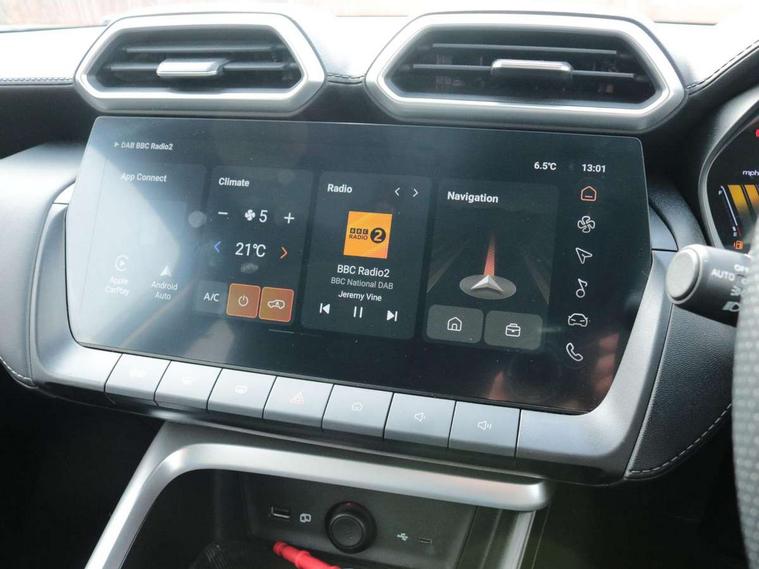 'Lights On' Reminder warning buzzer, 12.3" colour touchscreen, 3 driving modes Normal, Eco, Sport, 3 Energy regeneration modes (1, 2, 3), 360 degree camera with rear sensor, 7" Driver display, Adaptive cruise control, Android Auto, Apple CarPlay, Blind zone detection with lane change assist, Bluetooth connectivity, eCall emergency call system, Forward collision warning, Intelligent speed limit assist, iSmartphone connectivity, Lane keep assist with lane departure warning system, PAS, Rear cross traffic alert, Rear parking sensors, Satellite navigation with speed limit recognition, Traffic jam assist, Trip computer, Unsteady driving warning, 1x USB port at rear (power only) type A, 2x USB ports at Front (1x data and power type A, x1 power only type C) and 1x rearview mirror USB power only - type A, 6 speaker audio system, DAB audio, Radio/MP3 player, USB/aux input socket, Auto headlights, Body colour bumpers, Body colour door handles, Body colour electric adjustable folding heated door mirrors, Chrome side window trim, Follow me home headlights, Front and rear aero wiper, Front and rear electric windows with driver's one-touch up/down, Heated rear window, Intelligent headlamp control, LED centre brake light, LED daytime running lights, LED projector headlights, LED rear lights, Rain sensing wipers, Rear privacy glass, Rear side wing doors, Rear spoiler, Rear wiper, Silver roof rails, 12V power sockets, 2nd row 60/40 split/fold, 3 rear headrests, 3 seat bench in 2nd row, 4 way manually adjustable passenger seat, 6 way electric adjustable drivers seat, Adjustable dual height boot floor, Adjustable rear headrests, Automatic air conditioning, Boot light, Driver's footrest, Front centre armrest with storage, Front cupholders, Front grab handles, Front headrests, Front interior courtesy light with time delay and reading lights, Front reading lights, Front seat back map pockets, Front sun visors with driver and passenger mirrors, Glovebox, Heated front seats, Heated steering wheel, Illuminated switches and controls, Internal chrome door handles, Leather style upholstery, Manual lumbar support on driver seat, Multifunctional steering wheel, Rear grab handle, Single front passenger seat, Tilt adjustable steering column, 3x3 point rear seatbelts, ABS/EBD, Active emergency braking with pedestrian/Bicycle detection, Anti rolling protection, Automatic unlocking of doors in case of impact, Dual front airbags, EBA, Electric parking brake with auto hold function, ESP, Front passenger airbag deactivation switch, Front seatbelts (3-point + pretensioner + load limiter), Front side airbags, Fuel cut off safety device, Hill start assist, Rear door child safety locks, Rear isofix x2, Rear passenger seatbelt alert, Seatbelt reminder for driver and front passenger, Side curtain airbags, Tyre pressure monitoring system, Alarm system and engine immobiliser, Automatic latching door, Keyless entry, Remote Central Locking with Fold-away Key, Speed sensing door locks, 18" Sabre alloy wheels, Tyre repair kit,