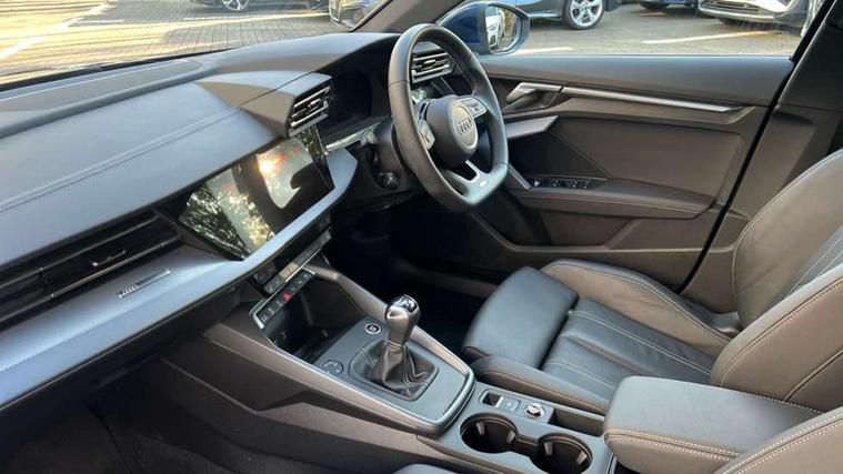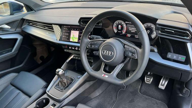Adjustable speed limiter, Audi drive select, Audi smartphone interface with app store includes wireless Apple carplay, Android auto and Amazon alexa integration, Audi virtual cockpit plus - 12.3" full HD resolution dynamic digital instrument cluster, Automatic start/stop system with recuperation, Bluetooth interface, Camera based traffic sign recognition, Collision avoidance assistant, Cruise control, Distraction and Fatigue warning, e-Call (emergency call), Electromechanical power speed sensitive steering, Lane departure warning system, MMI Navigation Plus with high resolution 10.1" colour touch screen display, Park Assist with parking system Plus, Service indicator, Trip computer, Voice control system with natural language interaction, Sports suspension, Audi Phonebox light with wireless charging, Audi sound system - 10 loudspeakers including centre loudspeaker and subwoofer, DAB Digital radio, USB ports with charging function in the rear, Acoustic glass windscreen, Aluminium window trim, Auto dimming frameless rear view mirror, Body colour exterior mirrors, Chrome exhaust tailpipes, Electrically adjustable/heated/folding/auto dimming door mirrors with integrated LED indications + kerb view function for passenger side, Exterior model badging, Front and rear side air inlets in grained matt black with dark liquid chrome frame, Front electric windows, Front radiator grill in high gloss dark chrome, Heat insulating glass windscreen, Illuminated door sills with aluminium inserts at the front with S logo, LED 3rd brake light, LED daytime running lights, LED headlights with LED rear lights and dynamic rear indicators, Light and rain sensors, Privacy glass - dark tinted rear window, rear door and side windows, Rear boot, Rear diffuser and grill in grained matt black with inlay in dark liquid chrome, Rear electric windows, Rear side wing doors, S line bumpers, Side S line emblems on front wings, Side sill trim in dark liquid chrome, 12V socket and storage compartment in front centre console, 3 seat bench in 2nd row, 3 spoke flat bottomed multi-function leather sport steering wheel, 3-zone deluxe automatic air conditioning, 4 way electrically adjustable lumbar support for driver and front passenger, 40/20/40 split folding rear seat bench, Black cloth headlining, Front and rear centre armrest in artificial leather, Front and rear centre armrest in artificial leather with contrasting stitching on armrests and instrument panel, Front and rear headrests, Front/rear floor mats, Heated front seats, Height and reach adjustable steering wheel, Manual boot compartment lid, Manually adjustable front seats, Rear cup holders, S badging on the steering wheel, Seat side bolsters, Single front passenger seat, Stainless steel pedals and front footrest in black, Twin leather upholstery with front sports seats S embossed logo, Aluminium interior elements pack - A3, Multi-coloured LED interior lighting package - A3, 3x3 point rear seat belts, Driver and front passenger airbag with passenger airbag deactivation, Electronic Stabilisation Control (ESC) including ABS, ASR and EDL, First aid kit with warning triangle and 2 safety vests, Front side airbags with head airbags and interaction airbag, Hill hold assist, Pre-sense front with pedestrian and cyclist detection, Seatbelt monitoring, Tyre pressure loss indicator, Anti theft alarm, Anti-theft wheel bolts, Electronically operated child locks, Immobiliser, Remote central locking with safelock, Dash & door Inlay in dark aluminium Spectrum,