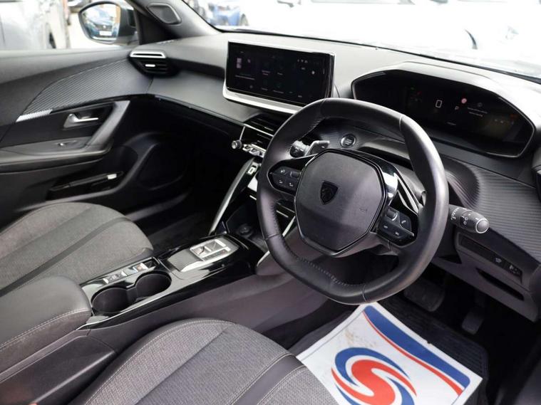 Bluetooth telephone facility, Driver attention warning, E-call, Exterior temperature indicator with ice warning, Front and rear parking sensors, Multi function trip computer, PEUGEOT i-Cockpit with 10" high definition capacitive touchscreen, PEUGEOT i-Cockpit with compact steering wheel, PEUGEOT i-Cockpit with configurable headup instrument panel, Speed limit recognition and recommendation, Wireless mirror screen with apple carplay and android auto, Petrol Particulate Filter, 1x USB-C socket in rear and 1x USB-A socket in rear, 2 USB-C ports in the front, 6 speakers radio with mp3 compatible, DAB Radio (Digital Audio Broadcasting), 2 X Rear number plate lights, Automatic hazard light activation upon heavy brake application, Black front wing trim with gloss black detail, Body coloured exterior door handles, Colour coded rear roof spoiler, Colour coded roof, Dark tinted rear side and tailgate windows, Diamond black mirror shells, Eco LED headlights, Electric, heated, and power folding door mirrors, Electrochrome rear view mirror, Front bumper - Meteor grey lower trim, Gloss black finish on B pillar, Gloss black rear cluster connecting strip, Gloss black roof bars, Headlights left on audible warning, LED daytime running lights with distinctive 3 claw signature, LED side indicator lights integrated into door mirrors, LED third brake light, Model designation badges front and rear, One touch electric front/rear windows with pinch protection, Radiator grille - Body coloured top edge trim, Radiator grille - body coloured vertical chequered grille, Rear full LED 3D peugeot signature claw effect lights with daylight function, Rear reversing lights, Rear side wing doors, Rear windscreen wiper triggered automatically in reverse gear, Tailgate with heated rear windscreen and wiper blade, Twin chromed exhaust pipes, Wheel arch extensions, 1/3 to 2/3 split folding rear seats, 12V socket, 3 seat bench in 2nd row, Automatic air conditioning with pollen and active carbon filter, Central front armrest with storage compartment, Driver and front passenger comfort seats, Driver seat manual adjustment - height, longitudinal and back rest angle, Electric power steering with reach and rake adjustable steering column, Front LED interior light with 2 reading spotlights and rear interior light with timer, Front passenger seat manual adjustment - height, longitudinal and back rest angle, High centre console, Leather steering wheel, Multifunction steering wheel, Piano keys: Gloss black and chrome toggle switches to access main functions of the vehicle and touchscreen functions, Roof lining - Mistral black, Seatbelt unfastened on the move audible and visual alert for front and rear seats, Single front passenger seat, Tri material cloth/leather effect upholstery, Two position modular boot floor, Visibility pack - 2008, 2x 2nd row ISOFIX child seat mountings, ABS (Anti-lock Braking System) with EBD (Electronic Brakeforce Distribution) and EBA (Emergency Braking Assistance), Active safety brake with night function/cyclists/pedestrians, Adaptive driver and front passenger airbags with passenger airbag deactivation function, Child locking functionality on rear doors, Driver/front passenger side airbags, Electric parking brake, ESP (Electronic Stability Program) + Hill Start Assist, Front and rear curtain airbags, Front and rear disc brakes, Front and rear three-point retractable seatbelts, with force limiters, Front optimised safety headrests and rear retractable headrests (x3), height adjustable, Tyre pressure sensor, Automatic door locking when moving off, Deadlocks, Electronic code immobiliser, Thatcham category 1 alarm, Carbon effect Dashboard, front and rear door panel finish, 17" Karakoy diamond cut alloy wheels,