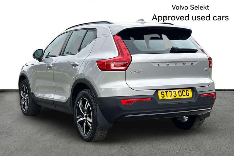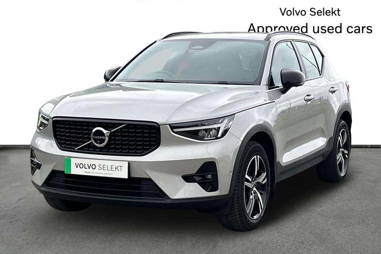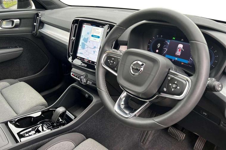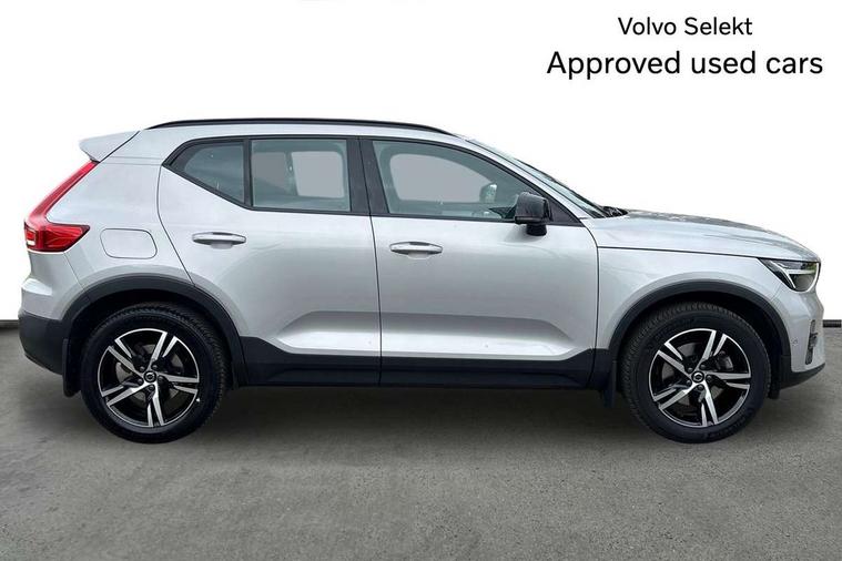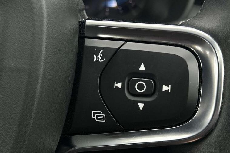 12.3" Progressive Driver Display, 360 degree surround view parking camera with side proximity sensors, 9" centre console portrait touch screen, Adjustable steering wheel force, Bluetooth hands free telephone kit, Cruise control, E-call, Front park assist, Google automatic services - Nav with google maps, apple carplay/android auto, voice recognition with google assistant, Hands free power tailgate, Lane keep assist with driver alert control, Oncoming Lane Mitigation, Rear park assist, Speed limiter, Speed sensitive steering, Wireless/Inductive Mobile Phone Charging, Dynamic chassis, DAB Digital radio, High performance sound, 8 speakers/250W, front USB and 2 rear type C USB, Steering wheel mounted remote controls, Adaptive brake lights with high level LED brake lights, Auto dimming feature for exterior door mirrors, Auto dimming interior mirror, Automatic headlamp levelling, Automatic LED Headlights + Active high beam incorporating daytime running lights, Front aluminium tread plates, Front and rear electric windows, High gloss black front and rear skid plate, High gloss black mesh front grille with high gloss black surround, High gloss black window trim, Home safe and approach lighting, Integrated roof rails in high gloss black, LED front fog lights, Puddle lights, Rain sensor with automatic windscreen wiper activation, Rear side wing doors, Rear wiper, Roof antenna, Roof spoiler, Visible VIN plate, 12V socket in front tunnel console and luggage compartment, 2-Zone electronic climate control with CleanZone air quality system and pollen filter, 3 seat bench in 2nd row, 3 Spoke tailored steering wheel with chrome trim, 60/40 versatile split folding rear seat, A-pillar parking ticket holder, Centre console cupholders and storage, Flexible load floor and grocery bag holder, Floor mats, Front door pocket, front cupholder, ambient front door, rear reading, rear courtesy, instrument panel and tailgate lighting, Front footwell illumination, Front headrests, Front reading light and theatre lighting, Front seat cushion extensions, Front tunnel pocket, Glovebox bag hook, Heated front seats, Height adjustable passenger seat, Height/reach adjustable steering column, High gloss centre tunnel deco, Illuminated glovebox, Illuminated luggage compartment, Illuminated vanity mirrors, Integrated waste bin, Isofix attachments on outer rear seats, Load protection net, Multi directional lumbar support, Power driver seat with memory + exterior mirrors memory, Rear armrest / integral cup holders / storage tray, Rear headrests, Single front passenger seat, Underfloor cargo storage, Climate pack without heated front seats - XC40, 3x3 point rear seatbelts, City safety with steering support with Pedestrian + cyclist + front collision warning with full auto brake and rear auto brake, Drivers knee airbag, Dual stage driver/passenger airbags, Electronic parking brake with auto hold, First aid kit, Front and outer rear seatbelt reminder and pretensioners, Front seats SIPS airbags, Hill descent control, Hill start assist, Inflatable curtain, Passenger airbag cut-off device, Power child locks on rear doors, Road sign information display, Run off Road Mitigation, Run off Road Protection, SIPS (Side Impact Protection System), Slippery road and hazard light alert, Stability and Traction Control with Spin control, Engine Drag Control and Corner Traction Control, Tyre pressure monitoring system, Vehicle deceleration control with Anti-lock Brake System, Electronic Brake Distribution and Emergency Brake Assist, Warning triangle, WHIPS whiplash protection system - front, Anti-theft alarm including immobiliser/volume sensor + level sensor, Key integrated remote control central locking + fuel flap with deadlocking system and auto open/close power windows, Keyless drive includes keyless entry and keyless start, Locking wheel nuts,