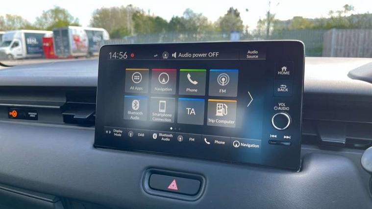 7" TFT instrument cluster, Adaptive cruise control, Adjustable speed limiter, Agile handling assist, Bluetooth hands free telephone connection, Drive modes select (Eco, normal and sport), eCall emergency system, Electric power steering, Emergency stop signalling system, Forward collision warning, Front parking sensors, Honda CONNECT with navigation, 9" touchscreen, AM/FM/DAB/Apple Carplay and android auto, Idle stop, Intelligent speed limiter, Lane departure warning, Lane keep assist, Low speed following, Multi info display, Power meter, Rear parking sensors and rear view camera, Road departure mitigation, Tachometer, Tailgate, Traffic sign recognition, WiFi connectivity, Vehicle stability assist, 'Shark fin' mobile antenna, 2x USB Front socket (1 data & 1 charge), 4 speakers, Steering wheel mounted remote controls, Auto folding door mirrors, Auto high beam, Automatic coming home lighting, Automatic headlights, Automatic rain sensing wipers, Body colour bumpers, Body colour tailgate spoiler, Body coloured door handles, Electric front and rear windows, Electrically adjustable and heated door mirrors, Exclusive styling in lower bumper non painting black, Fog garnish non paint gloss black, lower door garnish bumper skid garnish non paint silver, Front sequential turn, Headlight washers, Heated front windscreen, Heated rear window, High level third brake light, LED daytime running lights, LED headlamps, Low gloss window garnish, Manual headlight levelling, Rear side wing doors, Rear wiper, Red and clean lens LED rear lights, Variable front intermittent wipers, Windscreen shadeband, 3 rear headrests, 3 seat bench in 2nd row, 60/40 split folding rear seat, Ambient interior lighting, Automatic air conditioning, Cargo net hooks, Courtesy lights, Driver's seat height adjustment, Driver/passenger sunvisors with illuminated vanity mirrors, Front and rear map reading lights, Front head restraints, Front seat armrests, Heated front seats, Isofix points, Luggage area under floor storage box, Magic seat flexibility system, Manual height/reach adjust steering wheel, Meter illumination light, Paddle shift controls, Passenger seat back pocket, Rear centre armrest, Rear ventilation, Silver interior door handles, Single front passenger seat, Tonneau cover, Trunk light, 3x3 point rear seatbelts, ABS+EBD+Brake assist, Anti-whiplash front headrests, Auto hold function, Collision mitigation braking system, Collision mitigation throttle control, Deflation detection system, Dual front SRS airbags, Electric child locks, Electronic parking brake, Front and rear curtain airbags, Front and rear safety belts with Emergency Locking Retractor, Front side airbags, Hill descent control, Hill start assist, Low speed safety system, Paddle deceleration control, Passenger SRS airbag cut-off device, Regenerative braking system, Door deadlocks, Honda super locks, Immobiliser, Keyless smart entry with push button start, Remote central locking with 2 remote folding keys, Security alarm, Windows key fob operation, Tyre repair kit,