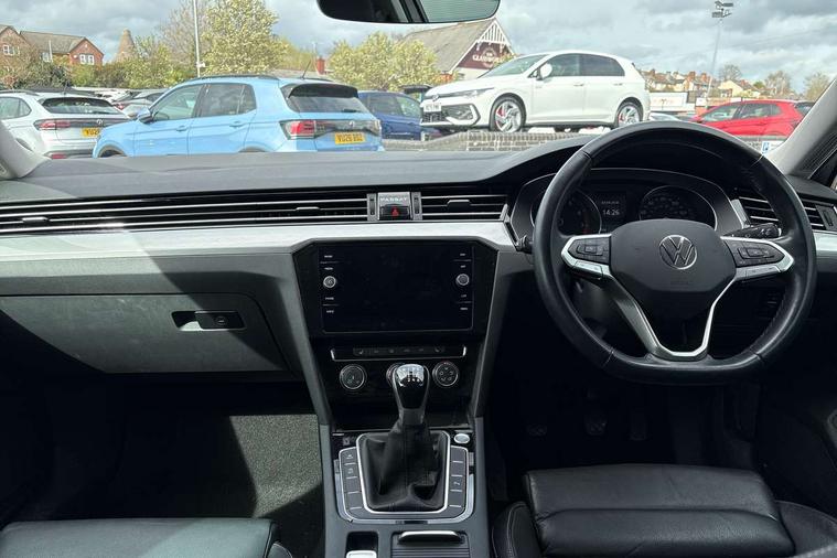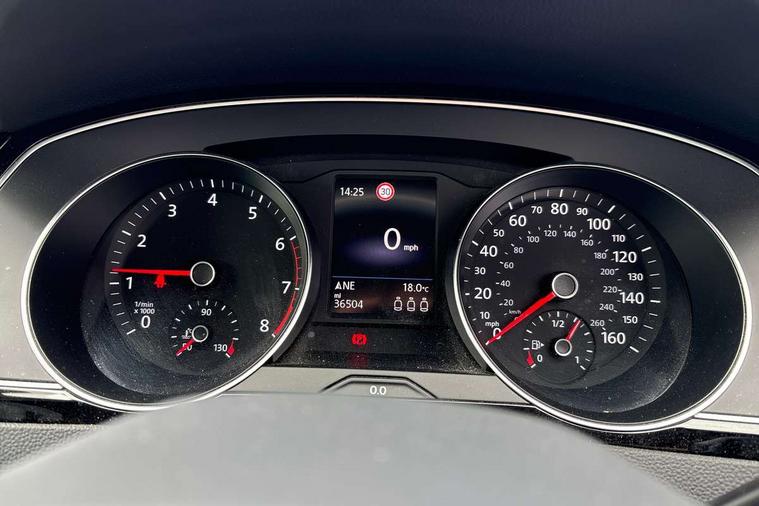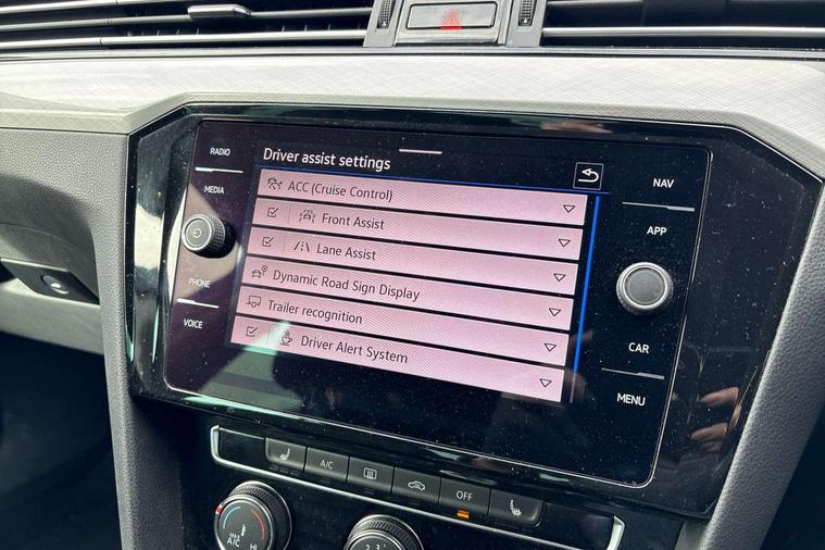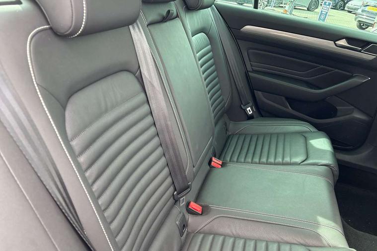 Adaptive cruise control including Front Assist, radar sensor controlled distance monitoring system, City emergency braking system, Driver alert system, Driver profile selection, Exterior temperature gauge with frost alarm, Lane assist, Low washer fluid warning light, Multifunction computer includes visual gear, One touch indicator turn signal, Proactive occupant protection, Security and service including e-call, Speed sensitive power steering, Speedo and rev counter, electronic odometer, trip, service interval display and fuel gauge, Start/Stop function, Traffic jam assist, Warning buzzer and light for front seatbelts unfastened, Wireless app connect, Battery regeneration during braking, Misfuel prevention device, Petrol Particulate Filter, Aerial for radio integrated into rear windscreen, DAB Digital radio receiver, Auto dimming interior rear view mirror, Automatic headlights with dusk sensor, Automatic leaving home and manual coming home lighting functions, Black radiator grille with chrome louvres, Body colour bumpers, Body colour door handles, Body coloured door mirrors with intergrated indicators, Chrome side window surrounds, Front and rear electric windows, Fully galvanised body, Gloss black finish on B pillar, Heated rear window, High level 3rd brake light, LED rear lights, LED rear number plate lights, Rain sensor, Rear tinted glass from B pillar backwards, approx 65% tinted, Remote electrically adjustable and foldable heated door mirrors including automatic dimming function on drivers side door mirror puddle lights, Volkswagen roundel, Warning lights for open tailgate and doors, White instrument lighting, 12V socket in front centre console, 12V socket in luggage compartment, 60:40 split folding rear seat with backrest, Driver's door storage compartment for 1.0 litre bottle, Front + rear carpet mats, Front and rear interior lighting with delay and dimming function, Front centre armrest with storage compartment and two rear air vents, Front cupholders x2 with covers, Front passenger storage compartment for 1.5 litre bottle, Height adjustable rear seat head restraints (x3), Height/reach adjust steering wheel, Illuminated vanity mirrors, Isofix child seat preparation, outer rear seats, Load lashing points x 4 in luggage compartment, Load through provision, Lockable, illuminated, cooled glovebox, Luggage compartment lighting, Rear seat centre armrest with storage compartment, Storage compartment in rear doors, Storage compartment in roof console with cover, Vienna leather upholstery + heated front seats + heated windscreen washer jets, 3x3 point rear seatbelts, ABS (Anti locking brake system) includes BAS (Brake assist) and EBD (Electronic brake pressure distribution), Automatic post collision braking, Disc brakes front and rear, Door open warning reflectors, Driver/Front Passenger airbags, Drivers and front passengers safety optimised head restraints, longitudinal and height adjustable, Drivers knee airbag, Electronic parking brake with auto hold, First aid kit, Front airbags with deactivation switch, Front and rear passenger curtain airbags, Front side impact airbag, Height adjustable front 3 point seatbelts + pretensioners, Hill hold function, Pre crash preventive occupant protection, Rear seat side impact airbags, Rigid safety cell with front and rear crumple zones, Tyre pressure loss indicator, Volkswagen roadside assistance, Warning light for rear seat belts if unfastened, Alarm with interior protection and deactivation via infotainment system, Electronic engine immobiliser, Chrome air vent and instrument surround, Cross hatch decorative inserts in dash and door panels,