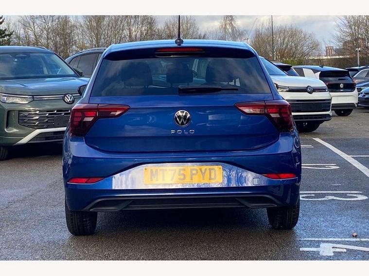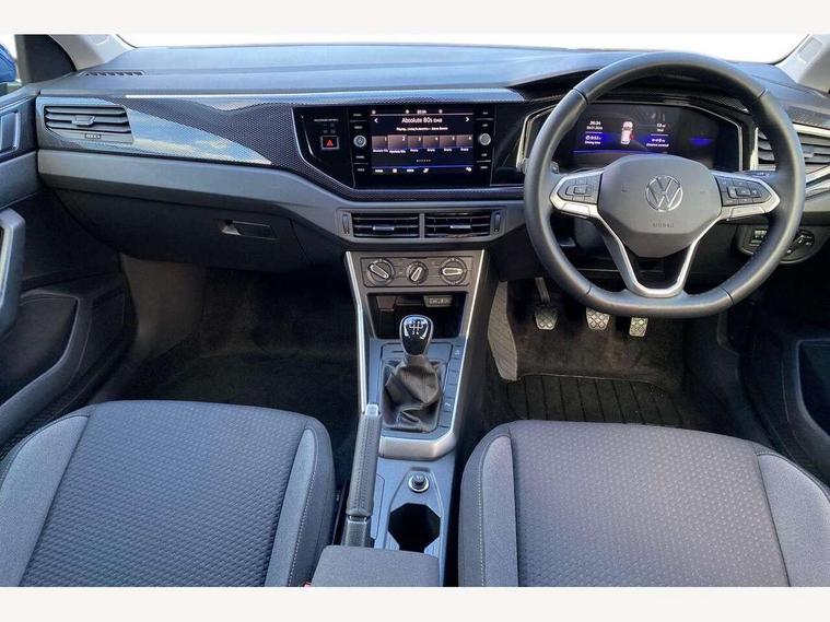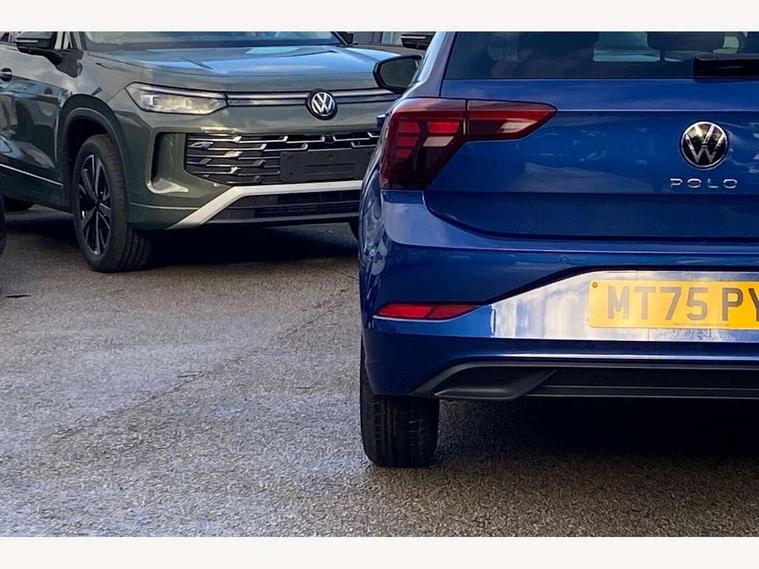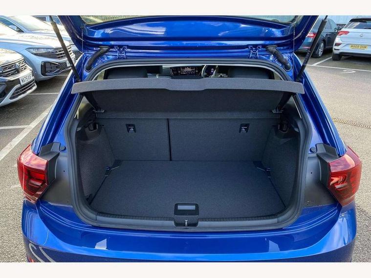 Adaptive cruise control without follow-to-stop and speed limiter, Advanced driver attention and drowsiness monitor, Bluetooth mobile phone interface, Dynamic road sign display, Emergency call service, Multifunction front facing camera for distance control, Power assisted speed sensitive steering, Preparation for navigation system with media and internet package, Preparation for We connect and We connect plus, Rear view camera, Speedo and rev counter, electronic odometer, trip, service interval display and exterior temperature gauge, Standard rear axle, Travel Assist - Lane keeping system and traffic jam assist, Travel assist including emergency assist, Trip computer, Warning signal and warning light for front and rear seatbelts not fastened, Washer fluid level indicator, Wireless app connect, Front wheel drive, Rear shock absorpion, Start-stop system with battery regeneration (recuperation - energy recovery during braking), DAB Digital radio, Diversity antenna for FM reception, Automatic dimming interior rear view mirror, Automatic headlight control with LED separate daytime running lights with coming/leaving home function, Body colour bumpers with chrome inserts, Body colour door handles, Body colour door mirrors, Electric front windows, Engine badge deletion, Headlight range adjustment, Heat insulating and laminated safety glass windshield, LED Headlights, LED rear combination lamps, Power folding adjustable/heated exterior mirrors and front passenger exterior mirror lowering function, Rain sensor, Rear electric windows, Rear fog light, Rear side wing doors, Rear tinted glass from B-pillar backwards approx 65% tinted, Rear windscreen washer and wiper with interval delay, Third brake light, 12V power socket in centre console, 2 front and 2 rear reading lights with switch off delay and dimmer, 2 USB-C ports in the front, 2 USB-C charging sockets on the center console in the rear, 3 rear head restraints, 60/40 split folding rear seat and rear seat bench not split, Ceramique roof lining, Chrome plated radiator grille inserts, air vent surrounds and light switch surrounds, Door and side trim panel, Driver and front passenger seat height adjustment, Driver/passenger sunvisors with illuminated vanity mirrors, Front centre armrest, Front seat backrest storage pockets, Front standard seats, Handbrake lever handle in leather, Hartley/Thomas cloth upholstery, Headliner in recycled material, Isofix child seat preparation easy-fit (for two outer rear seats, and front passenger seat) compatible with I-size, Leather trimmed gear knob, Luggage compartment cover, Luggage compartment lighting, Removable luggage compartment floor, Single front passenger seat, Standard climatic zones, Standard pedal cluster, Three spoke leather wrapped multifunction steering wheel, Light and vision pack - Polo, 3 point height adj front seatbelts + pretensioners, 3 point seat belt for centre rear seat, 3 point seatbelts, outer rear with ECE lable, ABS, Driver and front passenger airbag with front passenger airbag deactivation, Drivers and front passengers safety optimised head restraints, ESC (Electronic stability control) + EDL (Electronic Differntial lock) and ASR (Traction control), Extended and predictive pedestrian/ cyclist protection, Front assist with autonomous emergency braking (for Adaptive Cruise Control ACC up to 130 mph), Front curtain and side airbags with center airbag, Front disc brakes, Hill hold control, Manual child lock in rear doors, Rear drum brakes, Single tone horn, Tyre pressure loss indicator, Alarm with interior protection, Anti-theft alarm system with interior monitoring, backup horn, and towing protection, Anti-theft wheel bolts, Electronic engine immobiliser, Lava stone black gloss/matt decorative inserts in dash and front door panels, 16" Torsby alloy wheels, Low rolling resistance tyres,