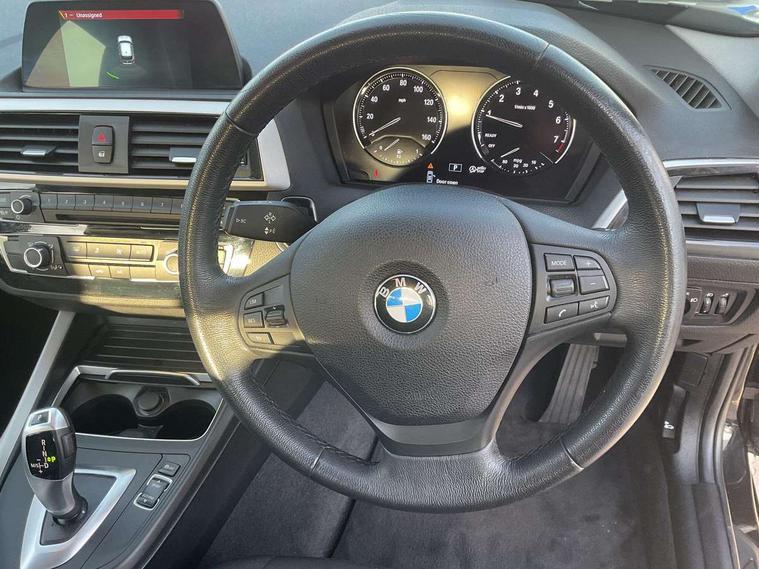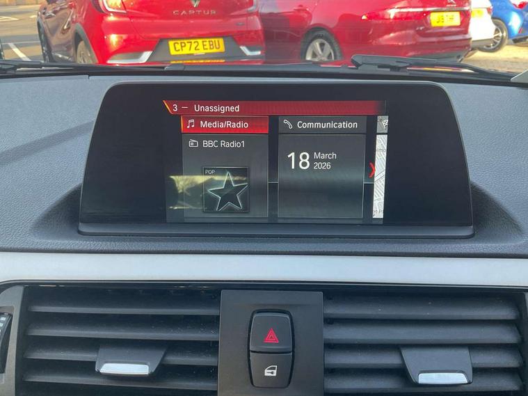 Automatic start/stop system, BMW Online services, BMW remote services, BMW Teleservices, Brake force display, Brake pad wear indicator in front and rear, Check Control warning system for monitoring of lights and door/luggage compartment open warning, Eco pro mode, Instrument cluster with speedometer with miles per hour read out, tachometer and fuel gauge, Lights on warning by audio warning signal when ignition is switched off, Oil temperature display via on board computer in instrument cluster, On board computer - average speed+fuel consumption, service interval, clock/date, odometer/trip meter, outside temperature display and ice warning, On board diagnostics, Optimum shift indicator, Personal Profile, Real time traffic information, Servotronic PAS, Automatic transmission, Battery age recognition function, Drive Performance Control, BMW professional radio with CD player, DAB Digital radio, Body colour door handles, Body colour front and rear bumpers, Body colour mirror caps, Body colour roof mouldings, Chrome exhaust tailpipe in single, round (Exhaust tailpipe, stainless steel - single, round), Chrome kidney grille with black vertical slats, Clear lenses direction indicator lights, Daytime driving lights, Direction indicator side lights in exterior mirrors, Dynamic brake lights, Electrically adjustable heated door mirrors and washer jets, Follow me home headlights, Front and rear bumper system with replaceable deformation elements, Front and rear electric windows with open and close fingertip control, anti trap facility and comfort closing, Green tinted heat protection glazing, Headlight beam throw control, Heated windscreen washer jets, High level third brake light, Lightweight engineering, Nearside reverse light in rear light cluster, Offside rear fog lights, Rain sensor including auto headlights activation, Rear window aerial, Rear window wiper, Shark fin antenna, Visible VIN plate, Welcome lighting, 12V power socket in centre console, 12V power socket in passenger footwell, 60/40 split folding rear seat, Anthracite Velour floor mats, Black door sill finishers with BMW designation, Conditioned based service, Four grab handles integrated in roof lining, Front and rear side armrest integrated into door trim, Front folding sliding armrest with storage compartment, Front head restraints, Front storage compartment in centre console and in door trim, Front/rear courtesy lights with soft on/off dimming, Glove box handle with chrome surround, Glovebox, Interior light in front centre interior mirrors and rear centre auto interior light activation when door is opened when ignition switched off, Isofix child seat for two outer rear seats, Leather gear knob and handbrake grip, Luggage compartment access via BMW roundel, Manually adjustable steering column, Multi-function controls for steering wheel, Rear folding head restraints, Two cupholders with sliding cover and inlay mat, Two sills lashing eyes in the luggage compartment, 3 point seatbelts on all seats, front pyrotechnic belt tensioners, stopper and belt force limiters, rear coded belt buckles, Active differential brake (ADB), electronic differential lock in DSC-OFF mode, Airbags - Front driver and passenger, front and rear head, front side, curtain head protection, Anti lock braking system (ABS) with brake assist, Automatic Stability Control (ASC), Battery safety cut-off, BMW emergency call, Brake drying, Brake energy regeneration, Braking readiness, Cornering brake control (CBC), Crash sensor activating central locking release, hazard warning lights, Driver and front passenger seat belt security check, DSC+, Dynamic brake control, Dynamic Traction Control - DTC, Front passenger manual airbag deactivation, Front ventilated brake disc, Hill start assist, Rear brake discs, Rear child proof door locks, Side impact protection, Twin horns, Tyre pressure monitoring system, Warning triangle and first aid kit, Automatic drive away locking facility, Central locking switch for all doors, fuel filler cap and luggage compartment, Locking wheel bolts, Remote central locking with two Integrate key, one button for opening and closing all lock, open and close window, button for open luggage compartment, Start/stop button with comfort go keyless engine start and auto start stop deactivation button, Thatcham Cat.1 alarm and immobiliser, Reduced rolling resistance tyres,