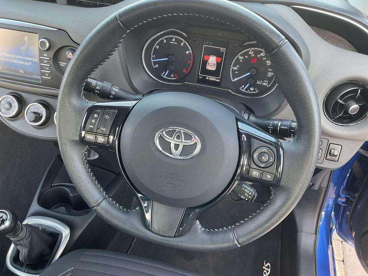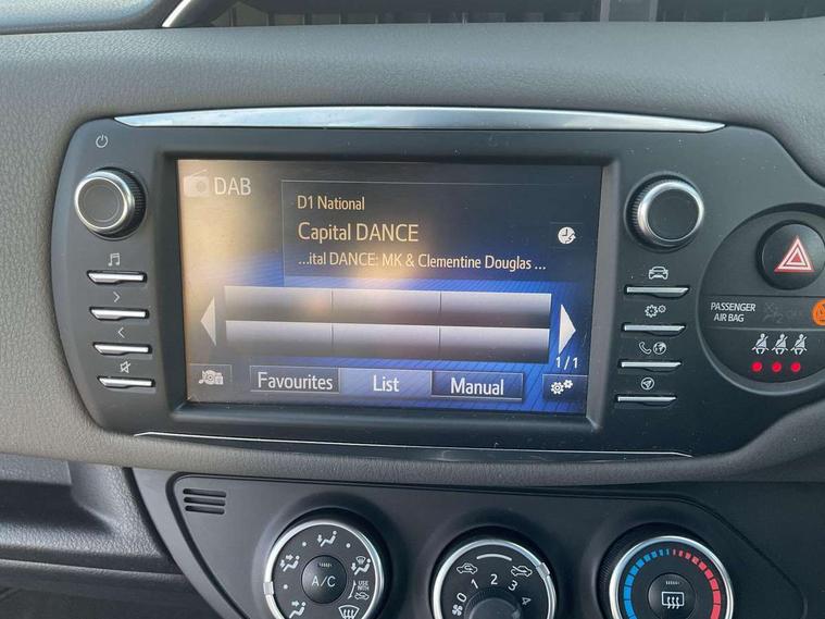 Bluetooth system, Cruise control, External temperature gauge, Fuel indicator with low level warning, Lane departure warning system, Lights on warning, Multi-information display, Power Steering, Rear parking sensor, Rear view camera, Road sign assist - RSA, TFT display screen, Touch 2 Go navigation system, Trip computer, 6 speakers, Auxiliary input socket, DAB Digital radio, Steering wheel mounted audio/telephone controls, Touch 2 touchscreen Radio with iPod connectivity, USB connection, 2 speed front wipers + intermittent wipe, Auto high beam, Auto up and down function on drivers window, Body colour bumpers, Body colour door handles, Body coloured door mirrors, Chrome fog light surround, Daytime running lights, Door mirror integrated indicators, Drivers window one touch up/down, Electric adjustable heated door mirrors, Electric front windows, Follow me home headlights, Front fog lights, Green tinted glass, Heated rear windscreen, Projector headlights, Rain sensitive windscreen wipers, Rear wiper, Turning signal integrated indicators in door mirrors, 3 spoke leather steering wheel, 60/40 split folding rear seat, Boot light, Cloth upholstery, Driver seat height adjust, Driver/passenger vanity mirrors with covers, Front cupholders x 2, Front map reading lights, Front seats with lumbar support, Glovebox, Height adjustable front head restraints, Height adjustable rear seat head restraints (x3), Isofix system on outer rear seats, Leather gear knob, Manual air conditioning, Rear cupholder, Removable rear parcel shelf, Sliding front seats, Tilt/telescopic steering column, 3 point seatbelts on all rear seats, ABS+EBD+Brake assist, Active headrests, Collision mitigation braking system, Curtain airbags, Driver and passenger airbags, Drivers knee airbag, Emergency brake light system (EBS), Front passenger airbag on/off switch, Front seatbelt reminder, Front side airbags, Height adjustable front seatbelts with pre-tensioners and load limiters, Hill start assist control (HAC), Passenger airbag deactivate switch, Rear child proof door locks, Rear seat belt reminder, Road sign information display, Seatbelt warning lamp and buzzer, Toyota safety sense including Road sign assist, Pre collision system, auto high beam and lane departure alert), Tyre pressure monitoring system, Vehicle stability control VSC + traction control, Engine immobiliser, Remote central locking, Instrument panel in grey, Space saver spare wheel,