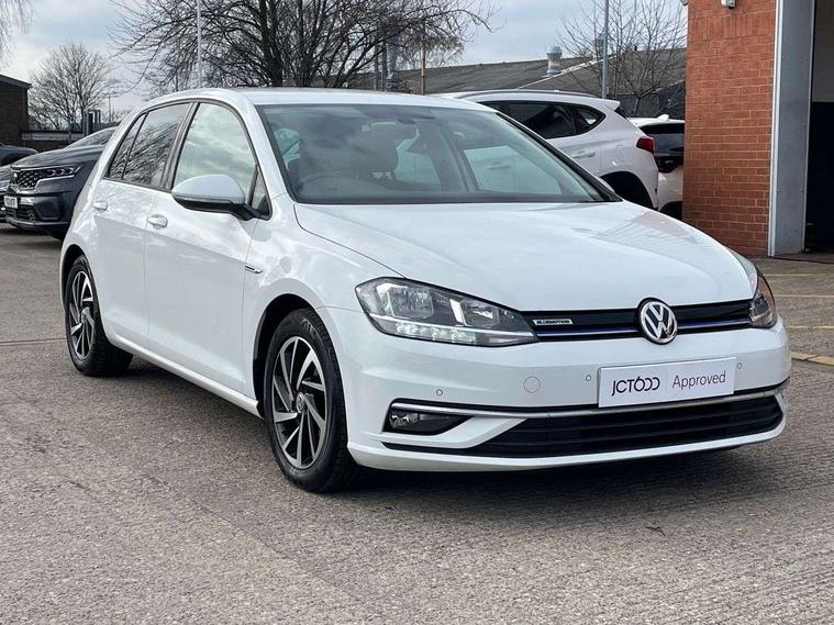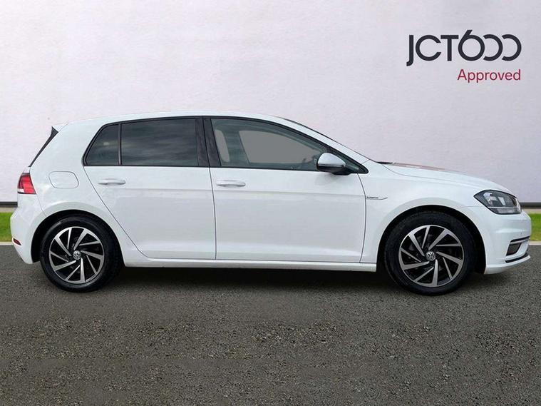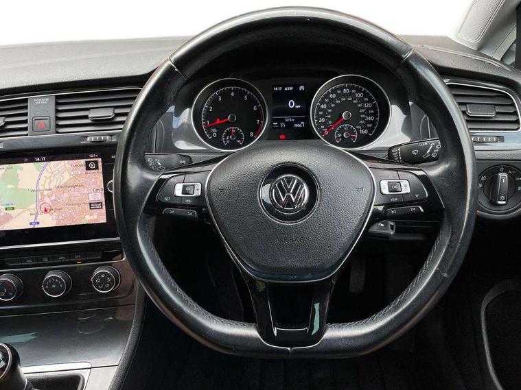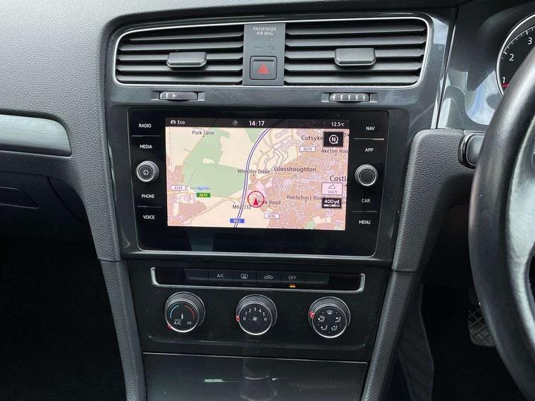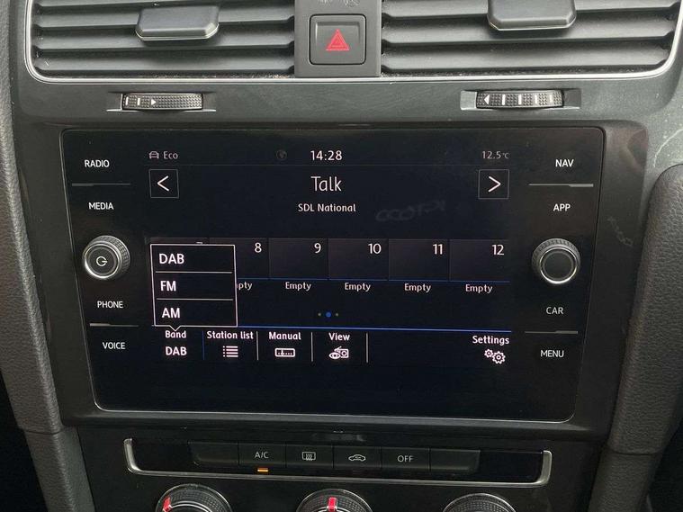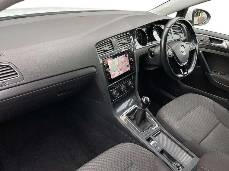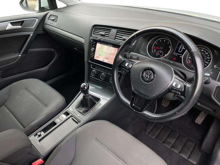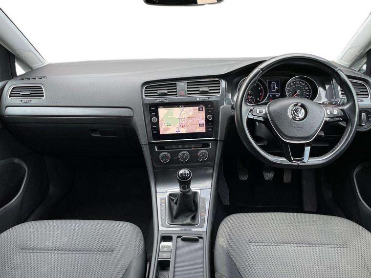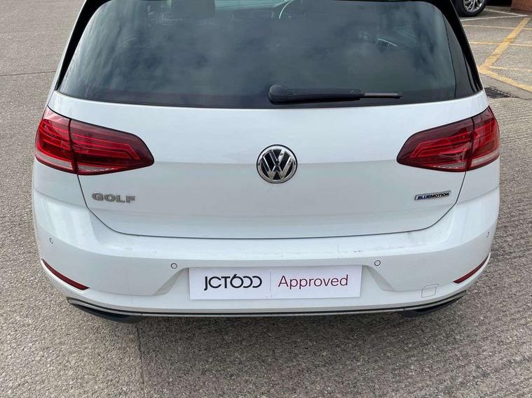 'Lights On' Reminder warning buzzer, ACC - Adaptive cruise control with front assist, forward collision warning, distance monitoring, city emergency brake and speed limiter, Bluetooth telephone and audio connection for compatible devices, Brake pad wear indicator warning light, Driver alert system, Driver profile selection, Driving Mode Selection with four preset modes - Eco, normal, sport or individual modes, Instrument cluster in white, Multifunction computer with visual gear change recommendation for fuel consumption, Power assisted speed sensitive electro-mechanical steering, Push tank flap, Speed limit display, Speedo, rev counter, electronic odometer, trip, service interval display, exterior temperature and fuel gauge, Stop/start system, Warning buzzer and light for front seatbelts unfastened, Battery regeneration during braking, XDS electronic differential lock, Composition media system, DAB Digital radio receiver, Driver Personalisation profile selection, MP3/WMA compatability, Multi device interface (MDI) with USB connection, Personalisation 1.1 profile for media, Premium USB cable in choice of either Apple or Android smartphone compatibility, SD card slot, SMS Functionality, USB and SD card connectivity, Black front air intake and radiator grille with chrome insert, Black rear diffuser, Body colour bumpers, Body colour door handles, Body colour door mirrors with integrated indicators, Dusk sensor + automatic driving lights, Electric front windows, Electric rear windows, Electrically adjustable and heated door mirrors, Fully galvanised body, Heated rear windscreen, Hidden exhaust pipe, High level 3rd brake light incorporating LED Technology, LED daytime running lights, LED front fog lights with static cornering light function, Rear fog lamp, Rear tinted glass 65% light absorbing from B pillar backwards, Rear window aerial, Rear window wash/wipe with intermittent wipe, Reflectors in all doors, Tailgate with integrated rear roof spoiler, Windscreen wipers/ intermittent wipe + 4 position delay, 12V socket in luggage compartment, 3 rear headrests, 4 load lashing points in luggage compartment, 60/40 split folding rear seat backrest, Auto fold down lever in rear seat backrest, Bag hook in luggage compartment x 2, Cooled glovebox, Cupholder cover, Dust/pollen filter, Front and rear reading lights incorporating LED technology, Front centre armrest with storage compartment and two rear air vents, Front seat back storage pockets, Grab handles front x 2, rear x 2 with integrated coat hooks, Height and reach adjustable steering wheel, Illuminated vanity mirrors, Instrument lighting white adjustable panel illumination, Interior light delay, Isofix preparation for 2 rear child seats, Load through provision with rear centre armrest and cupholders x2, Luggage compartment lighting, Overhead storage box, Passenger underseat drawer, Pearl grey headlining, Storage box in luggage compartment, Storage compartment in roof console with cover, Storage compartments in centre console, Storage compartments in front doors, Storage compartments in rear doors, Stowable luggage compartment cover, Sun visors, Variable boot floor, height adjustable and removable, Convenience Pack - Golf, Light and Sight pack - Golf, Mirror pack - Golf, 3 rear three point seatbelts, Airbags - Driver's and front passenger's, curtain airbag, Driver's knee, front side impact and passenger's airbag deactivation switch, Anti-lock Braking System (ABS) with Hydraulic Brake Assist (HBA), Automatic post collision braking system, Child locks on rear doors, Driver/Passenger optimised head restraints, Electronic parking brake with auto hold, Electronic stability control (ESC) including Electronic differential lock (EDL) and ASR (Traction control) with deactivation via infotainment system, Front ventilated disc brakes and rear disc brakes, Pre crash preventive occupant protection, Three point height adjustable front seatbelts with tensioners, Tyre pressure loss indicator, Alarm with interior protection and deactivation via infotainment system, Electronic engine immobiliser, Remote central locking with 2 remote folding keys, Brushed dark silver decorative inserts in dash and door panels, Chrome plated air vent surround, Chrome plated electric mirror adjustment light switch surround, Polar night black centre console, Steel space saver spare wheel,