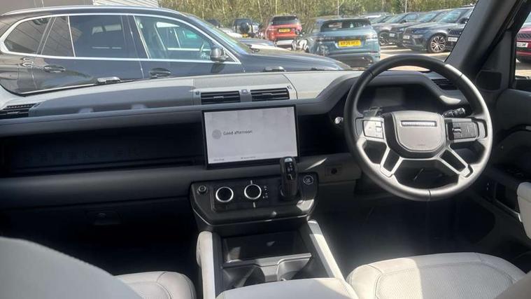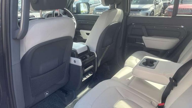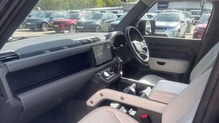 1 x USB-C (power only) & 1 x USB-C (power & data) in Row 1, 2 x USB-C in Row 2, 11.4" touchscreen, 2 x USB-C in Row 3, 360 degree parking aid, 3D Surround Camera with 360 View, 180 Rear View, Front Traffic Detection, Forward Vehicle Guidance, Tow Hitch Assist and clear sight Ground View, Adaptive cruise control, Android Auto, Apple CarPlay, Blind spot assist, Bluetooth system, Brake pad wear indicator, Clear exit monitor, Connected navigation pro, Driver condition monitor, Electric power assisted steering (EPAS), Interactive driver display, Lane keep assist, Push button start, Rear collision monitor, Rear traffic monitor, Traffic sign recognition with adaptive speed limiter, Trip computer, Wireless device charging, 8 speed automatic transmission, All wheel drive system, Twin speed transfer box, DAB Radio (Digital Audio Broadcasting), Meridian 700w surround sound audio system with 15 speakers, Pivi pro connected, Automatic headlight levelling, Automatic headlights, Black exposed rear recovery eyes, Body coloured bonnet, Centre high mounted stop light, Electric heated/power fold door mirrors with approach lights and auto dimming driver side, Electric windows with one touch open/close and anti-trap, Follow me home lighting, Front fog lights, Heated rear window with timer, Heated windscreen, Illuminated metal treadplates with brand name script, LED tail lights, Matrix LED headlights with signature DRL, Privacy glass, Puddle lights, Rain sensing windscreen wipers, Rear fog lights, Rear side wing doors, Rear wiper, Side hinged tailgate, Sliding panoramic roof, Standard tail door, Trailer stability assist, X-Dynamic badge, 12V power socket in loadspace, 2 seat bench in 3rd row, 3 seat bench in 2nd row, Alpine lights, Configurable cabin lighting, Durable rubber cabin flooring, Durable rubber loadspace flooring, Electric reach + rake adjustable steering column, Electrically adjustable steering column, Extended leather upgrade, Footwell lights, Front head restraints, Front passenger isofix child seat attachment, Heated steering wheel, Loadspace cover, Loadspace Hook, Multifunction steering wheel, No flat load floor storage, Overhead stowage for sunglasses, Rear headrests, Rear ISOFIX, Rear reading lights, Single front passenger seat, Soft close tail door, Storage glovebox, Sunvisors with illuminated vanity mirrors, Twin front cupholders, Air suspension pack - Defender SE/HSE/X-Dynamic SE/X-Dynamic HSE, Non-smoker package, Online pack with data plan - Defender, 7 three point seatbelts, ABS, Brake hold function, Cornering brake control (CBC), Customer configurable autolock, Driver and passenger airbags, DSC - Dynamic Stability Control, EBD - Electronic brakeforce distribution, Electric parking brake (EPB), Emergency brake assist, Emergency braking, ESP + traction control, Front airbags with passenger seat occupant detector, HDC - Hill descent control, Hill launch assist, Low traction launch, Power operated child locks, Remote for (e-Call, Optimised assistance call, InControl app, Climate, beep and flash and door), RSC - Roll stability control, Seat belt reminder, TPMS (Tyre pressure monitoring system), Alarm, Immobiliser, Intrusion sensor, Keyless entry, Locking wheel nuts, Secure tracker pro,